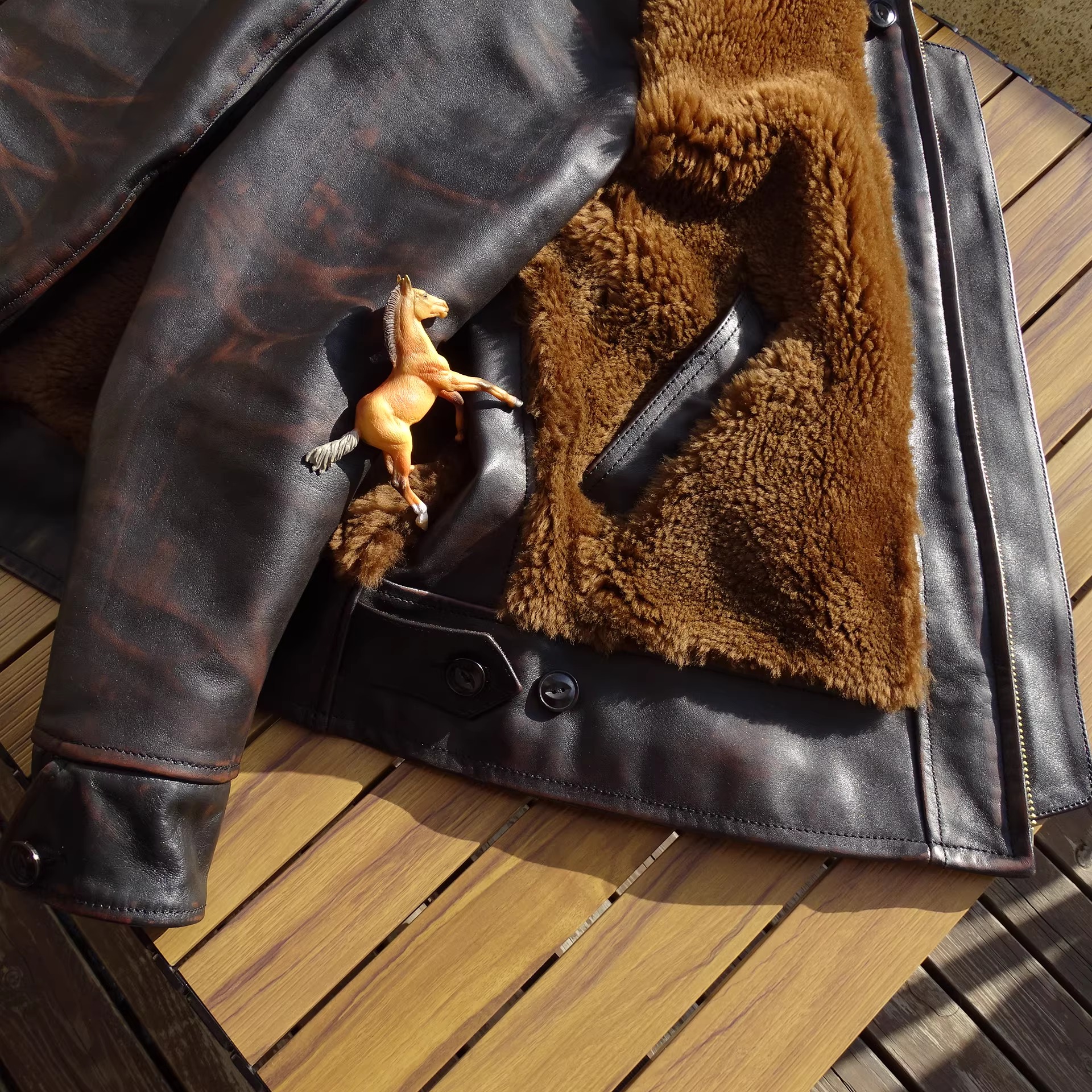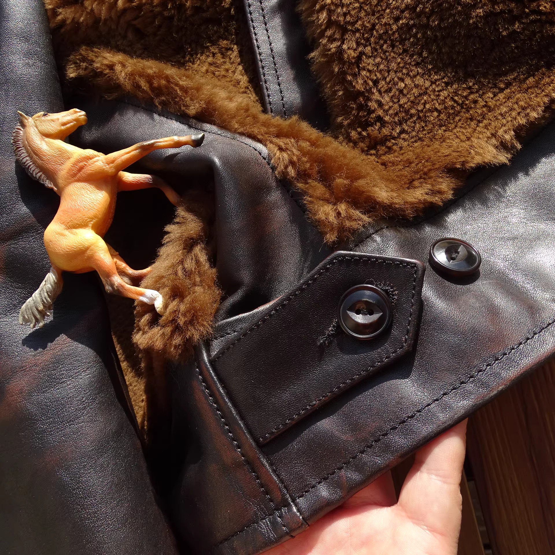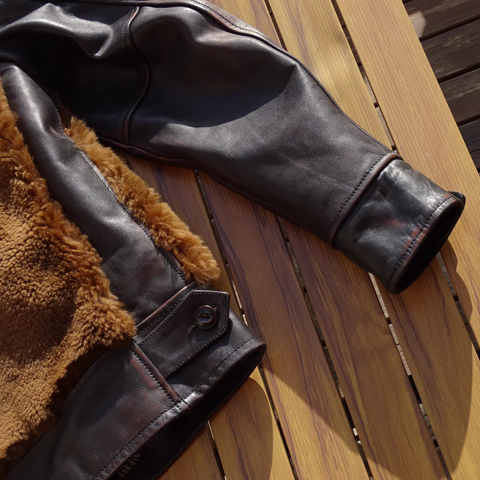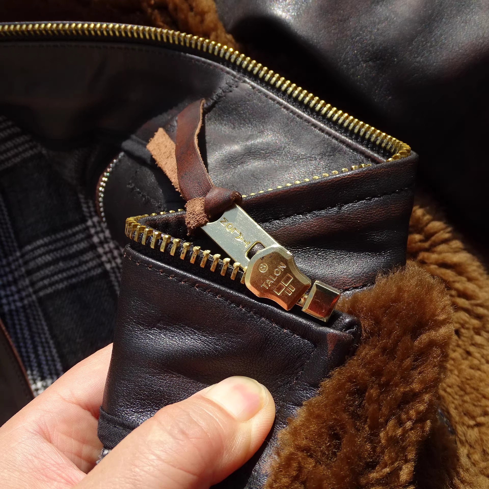 [써니레더] 램스킨 퍼 & 홀스하이드 그리즐리 자켓 - 테디 베어 브라운