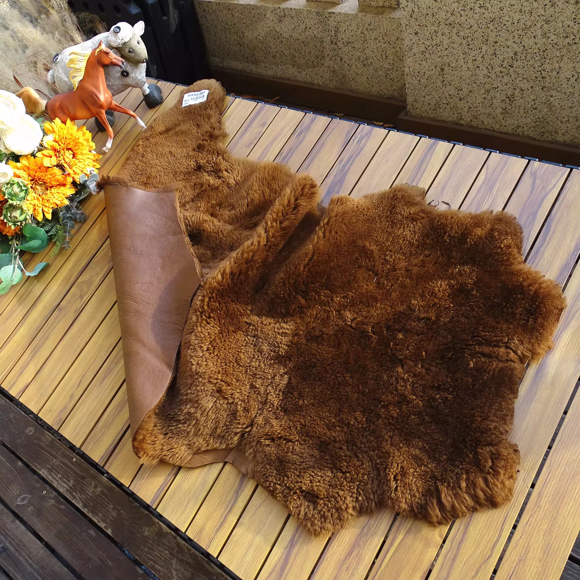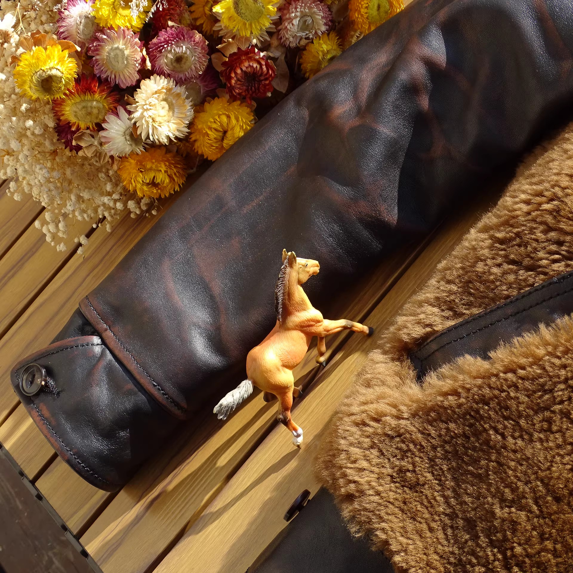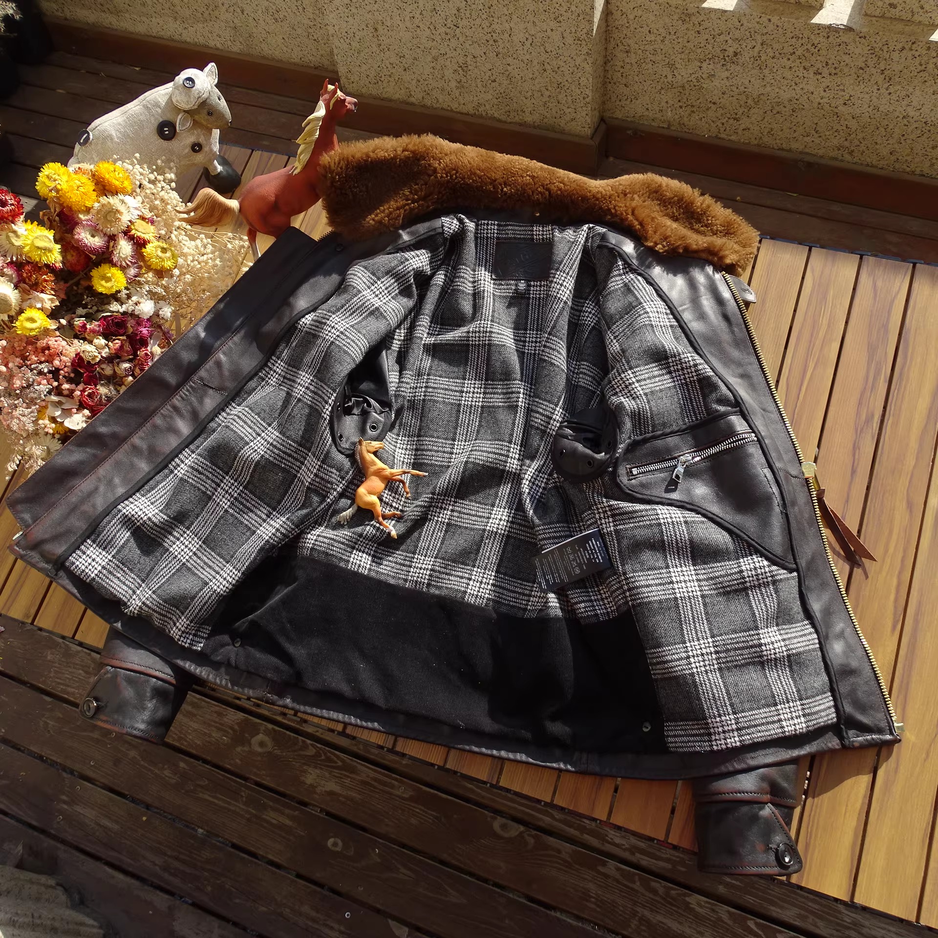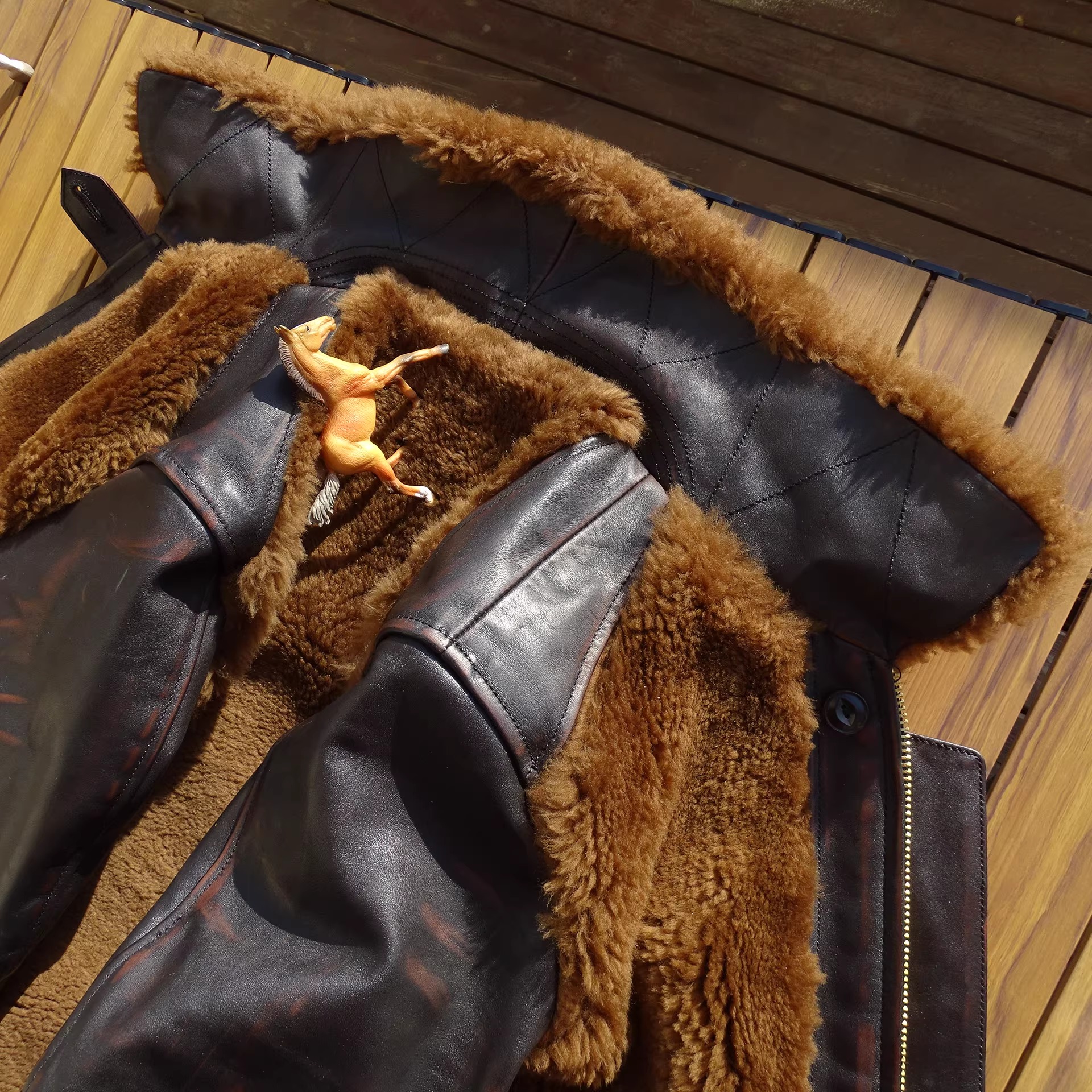 [써니레더] 램스킨 퍼 & 홀스하이드 그리즐리 자켓 - 테디 베어 브라운