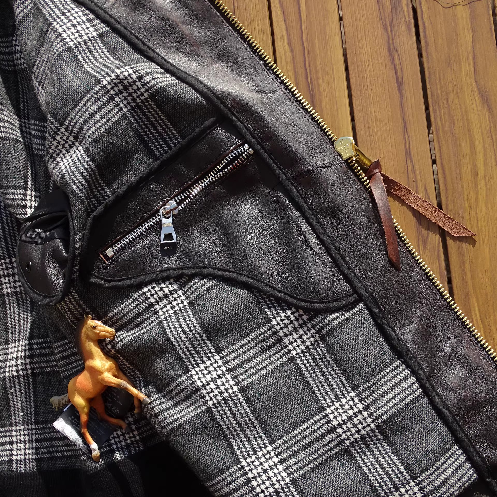 • 바디 퍼 + 소매 레더 콤비네이션 구조