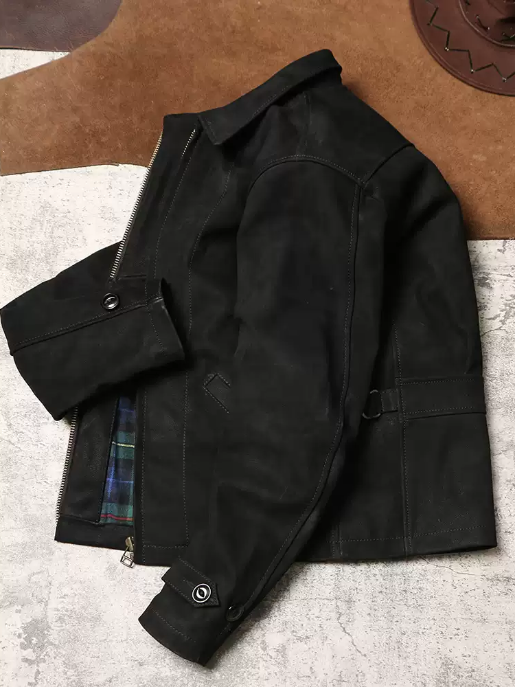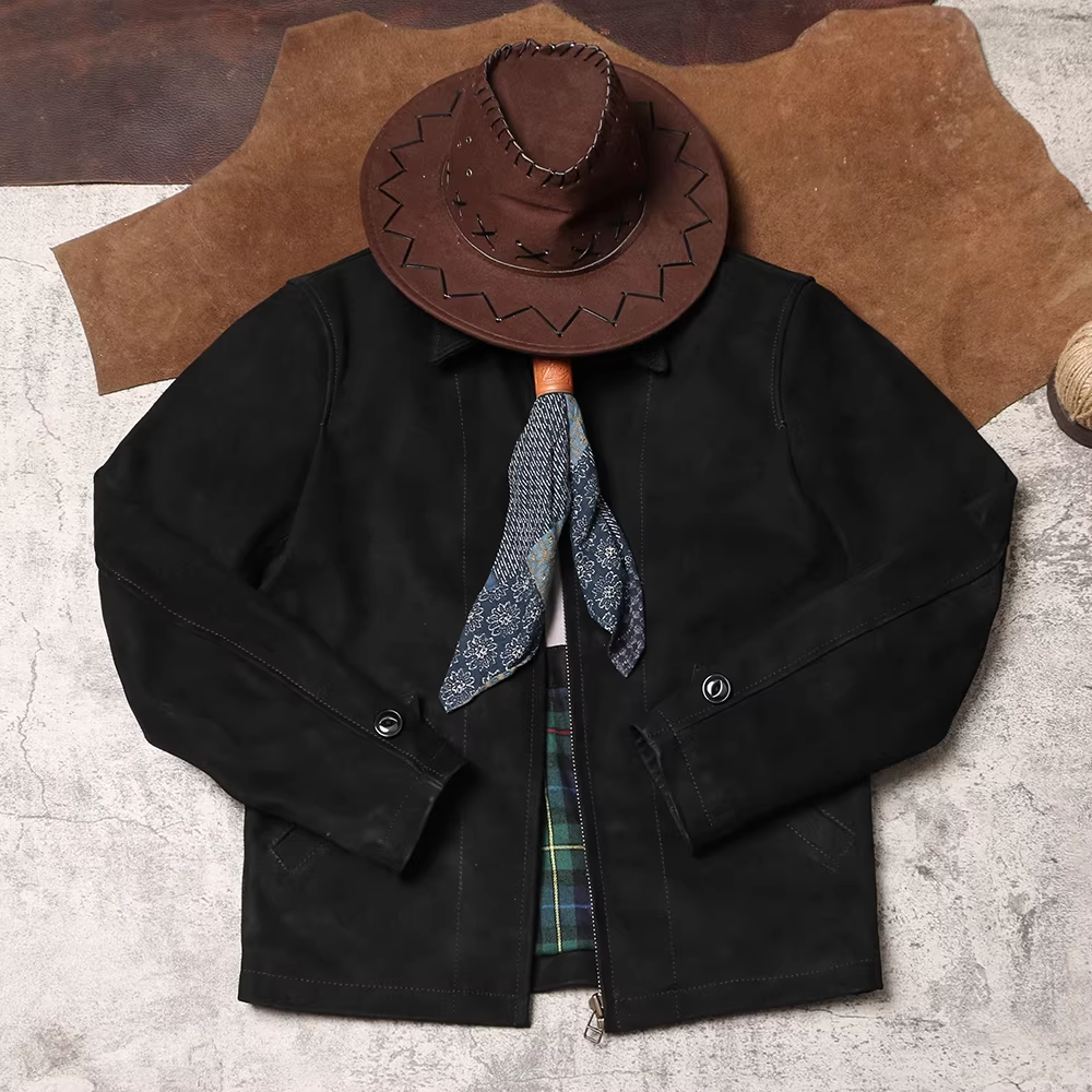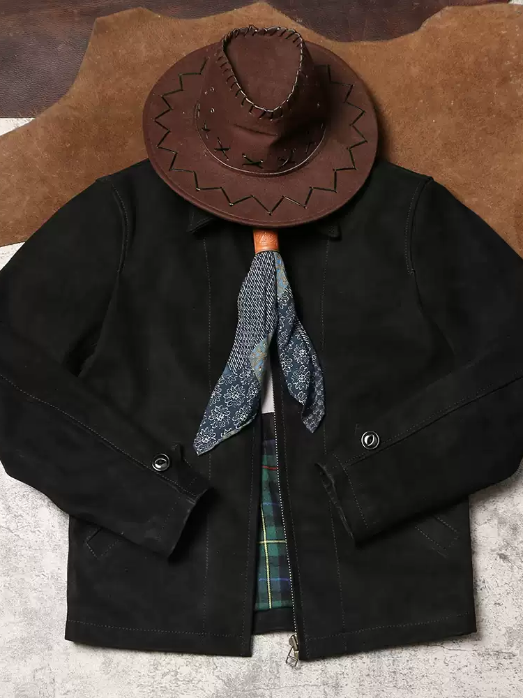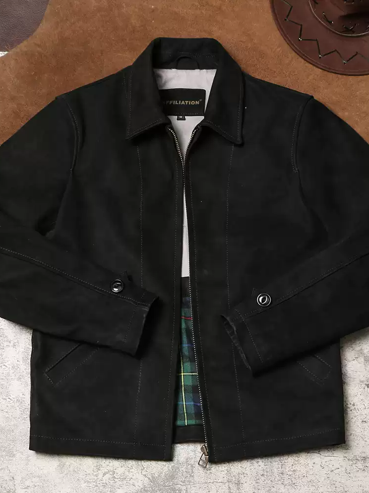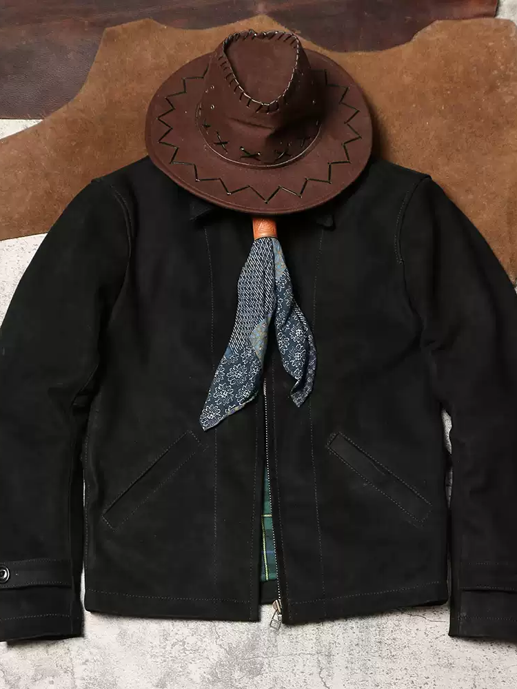 [완피] 카우하이드 블랙 스웨이드 레더 집업 자켓