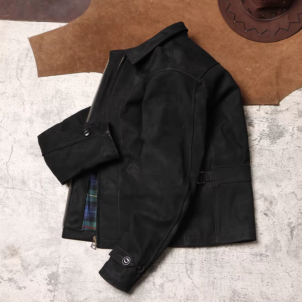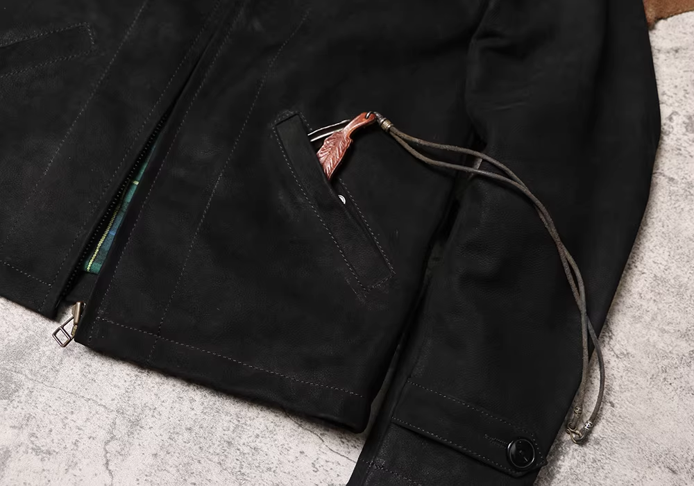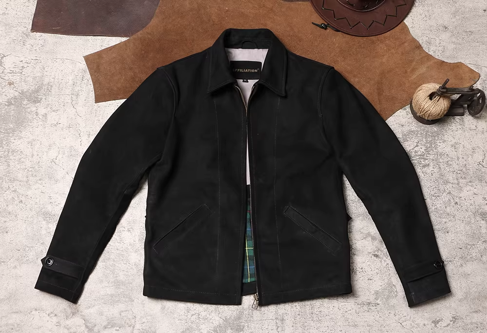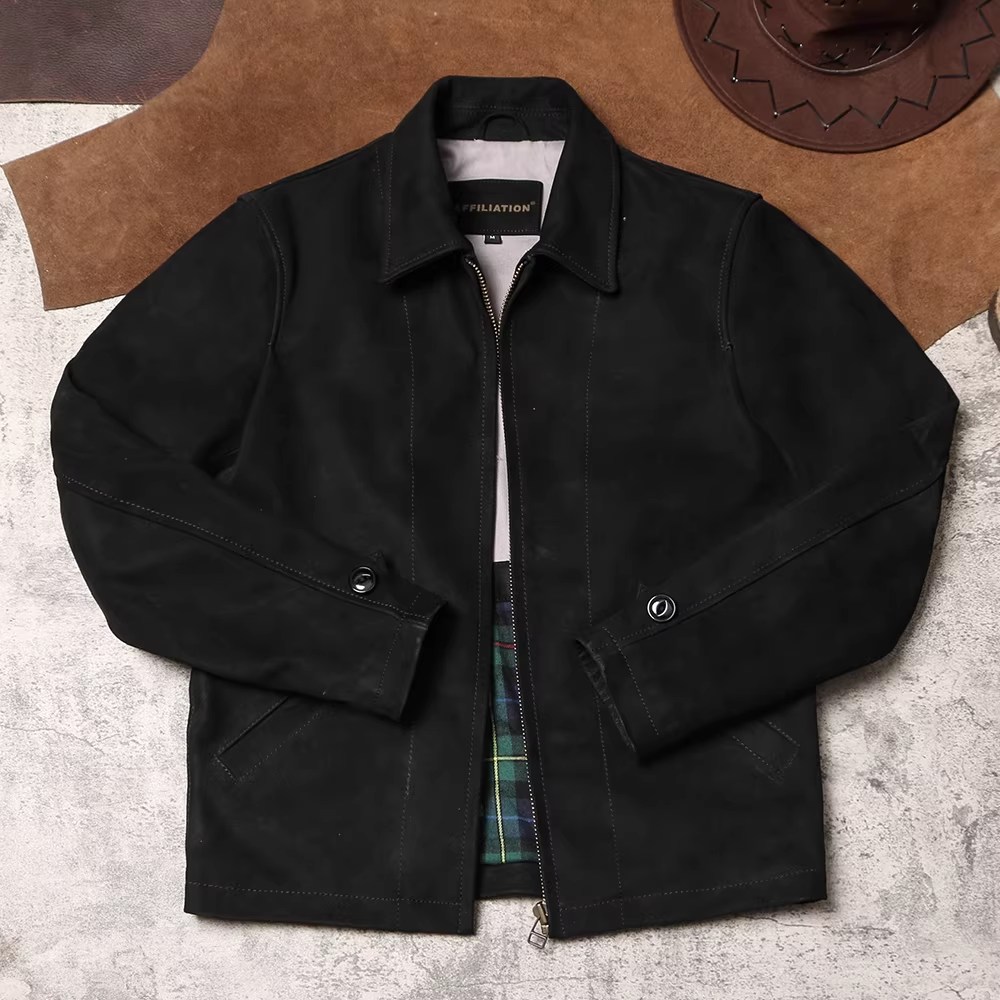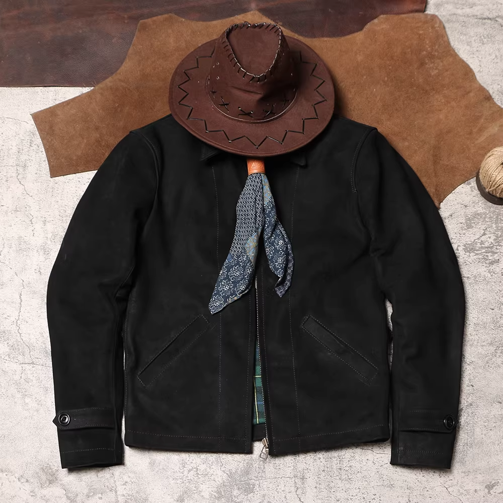 [완피] 카우하이드 블랙 스웨이드 레더 집업 자켓