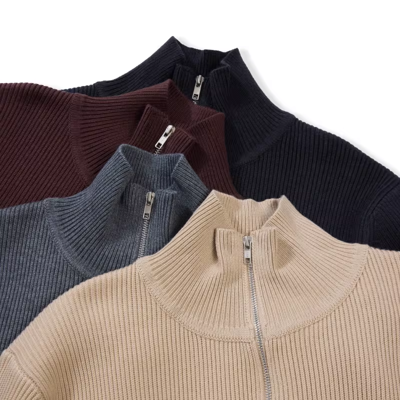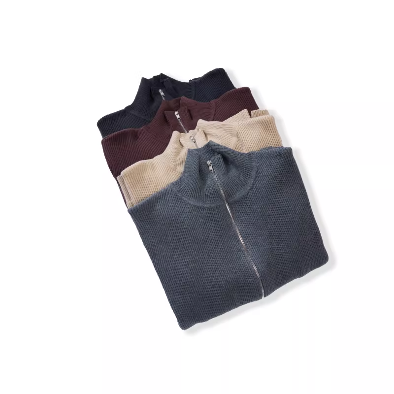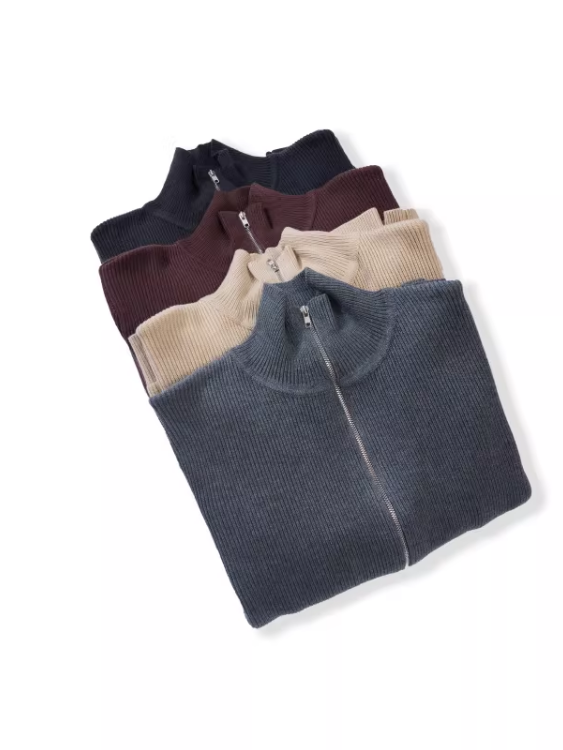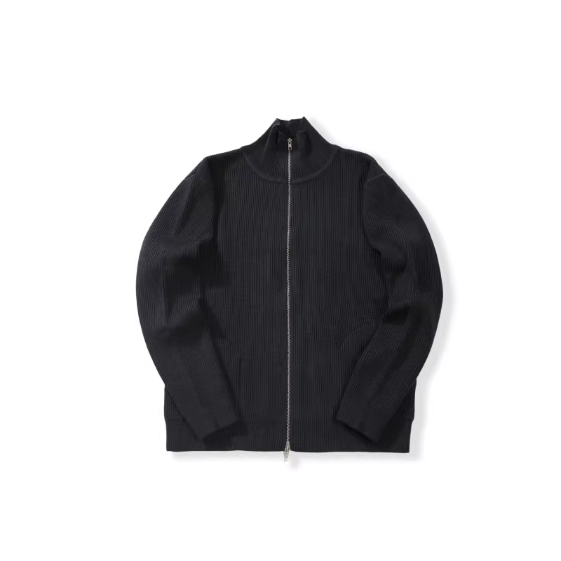 · 세로 리브 조직의 니트 집업 자켓