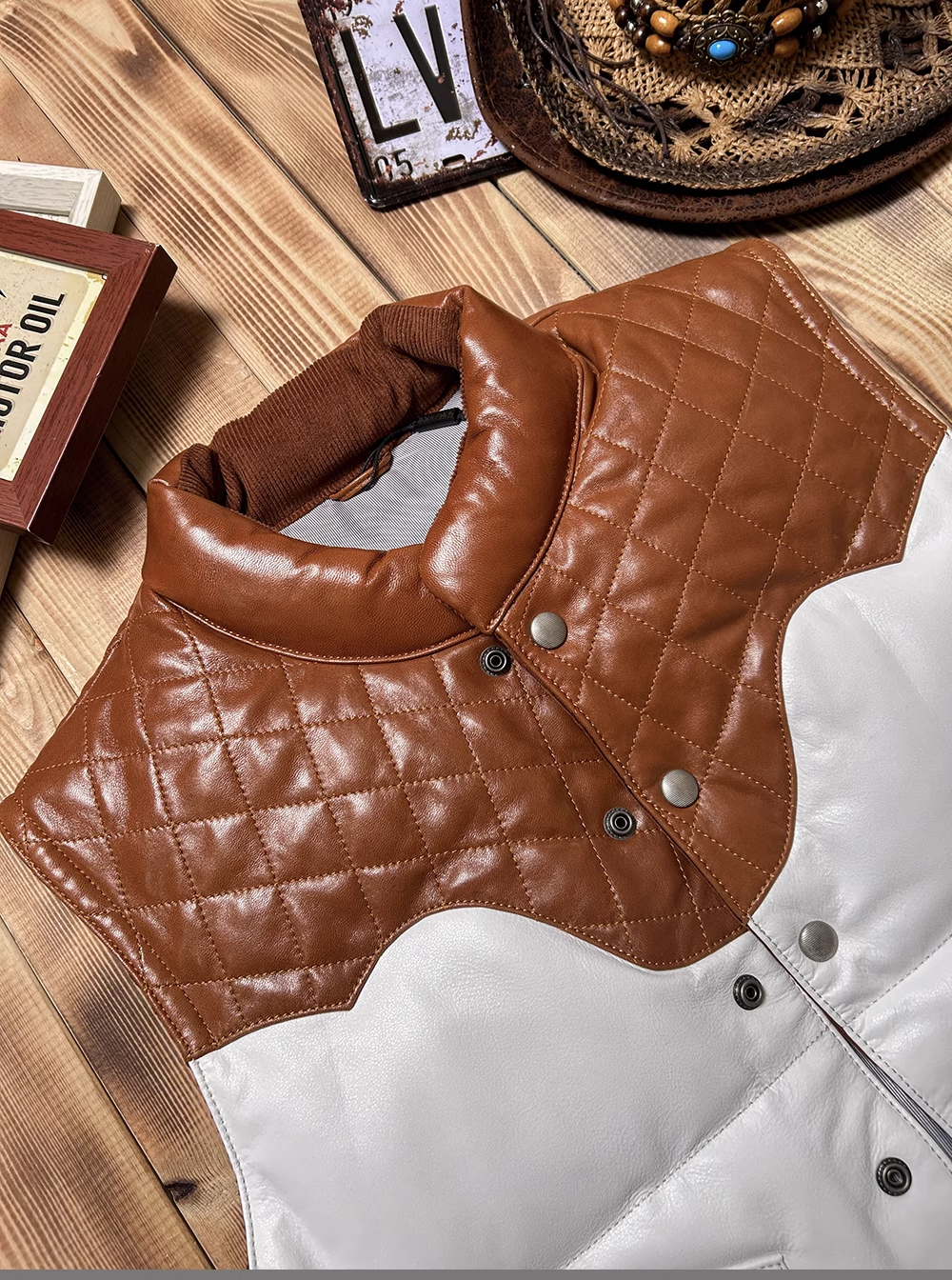 [GK] 퀼팅 덕다운 카우하이드 패딩 조끼