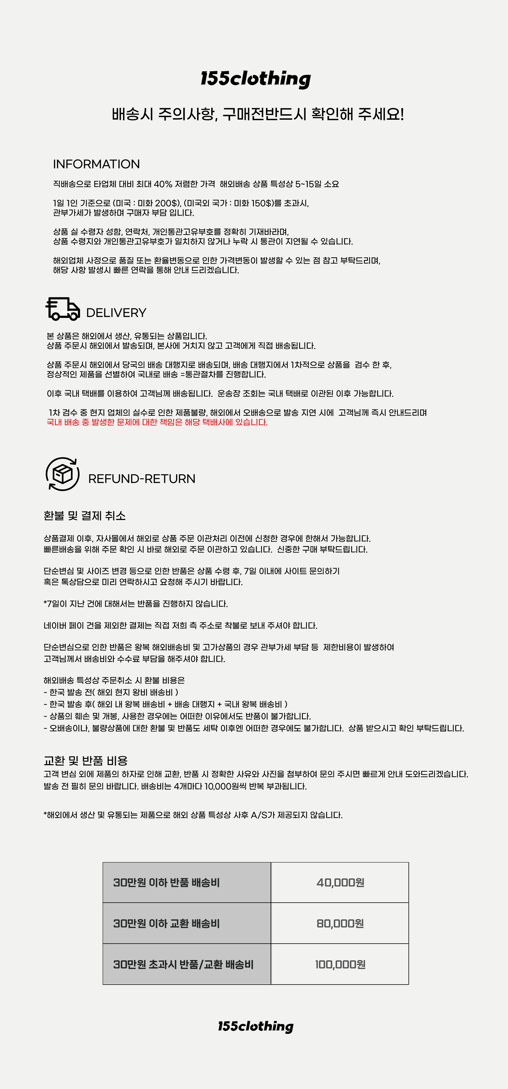 ※ 배송, 반품 및 교환 관련 자세한 내용은 하단 상세페이지 또는 공지사항 게시판을 참고해 주시기 바랍니다.