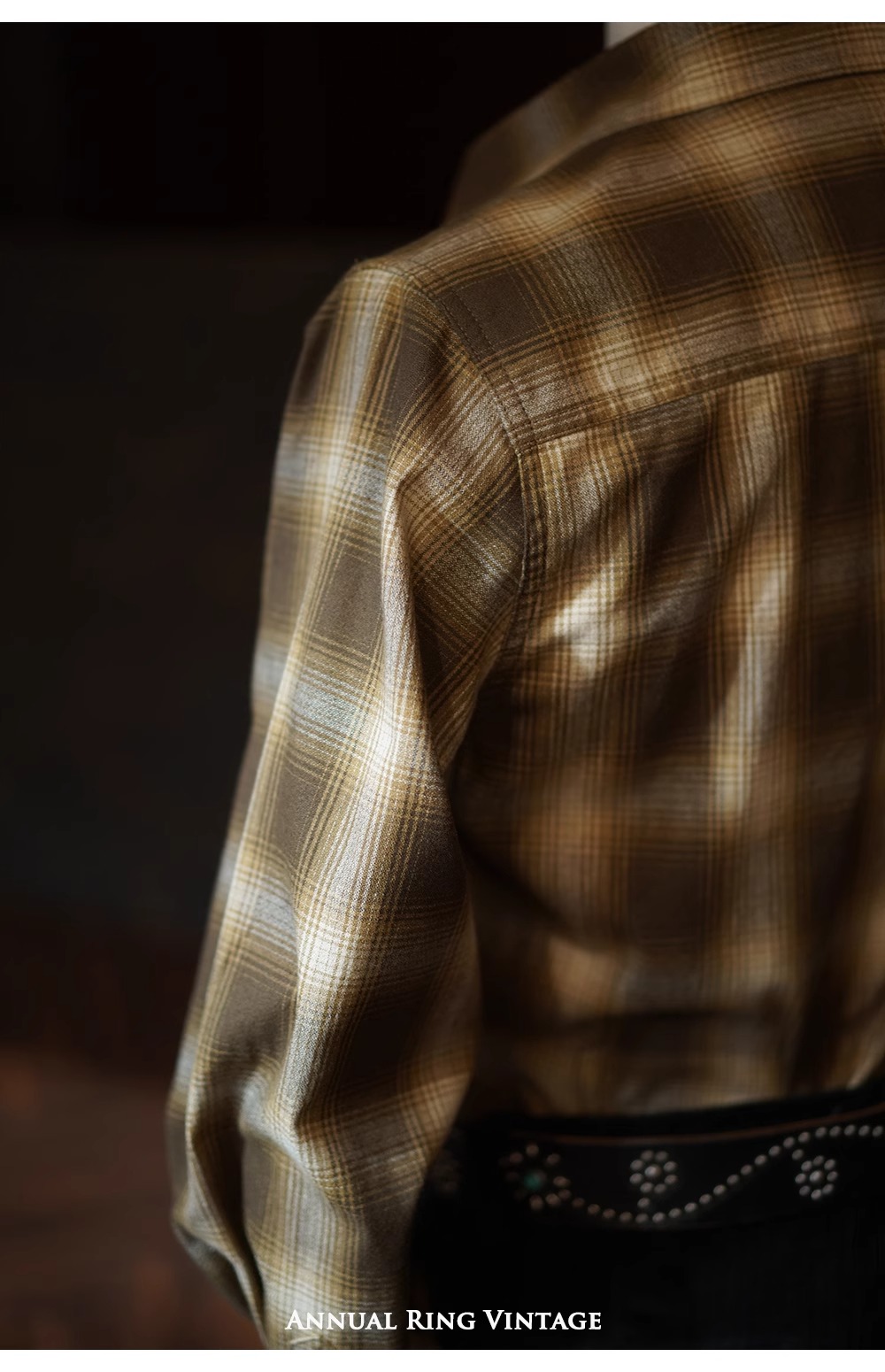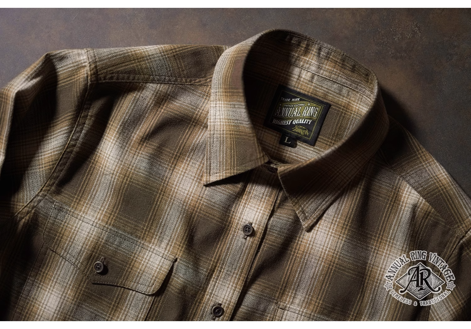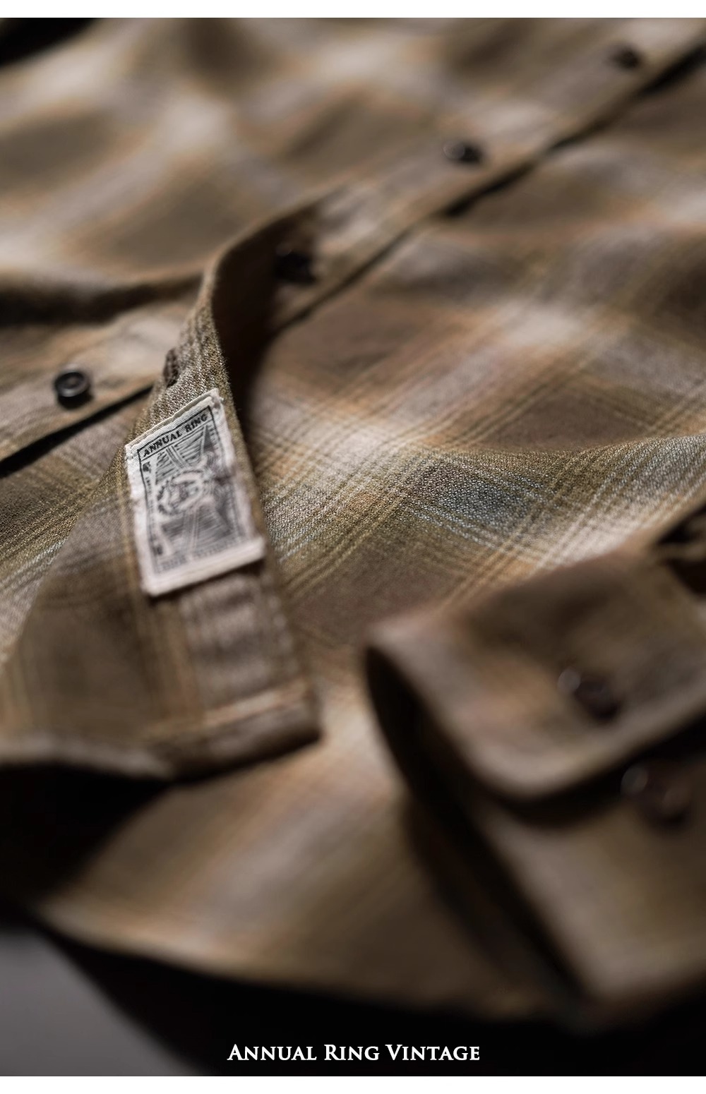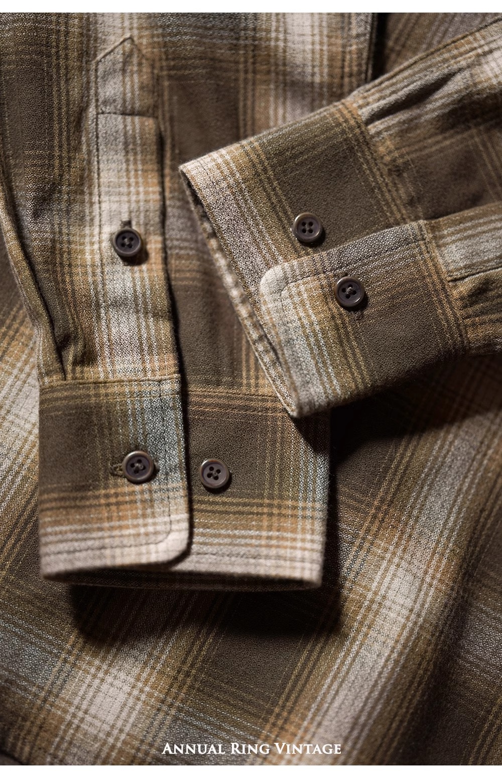 [애뉴얼링] 아메리칸 레트로 카키색 체크 무늬 셔츠