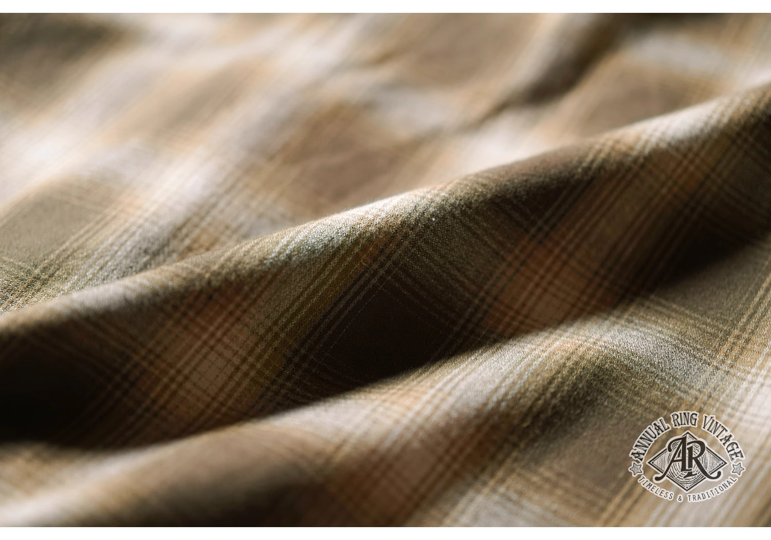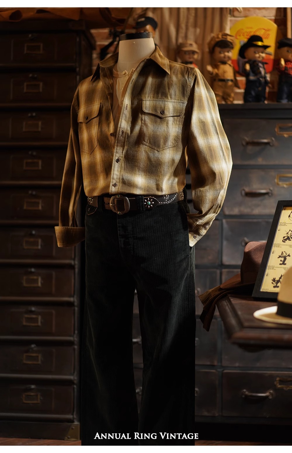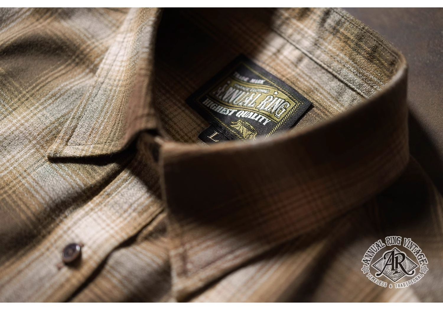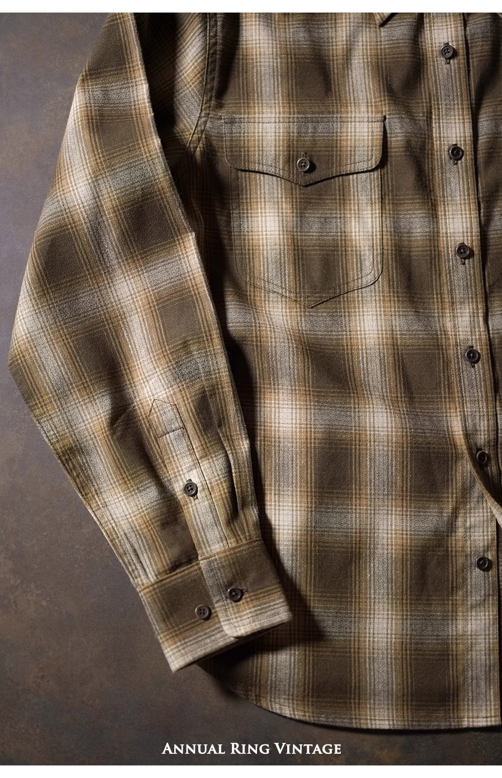 [애뉴얼링] 아메리칸 레트로 카키색 체크 무늬 셔츠