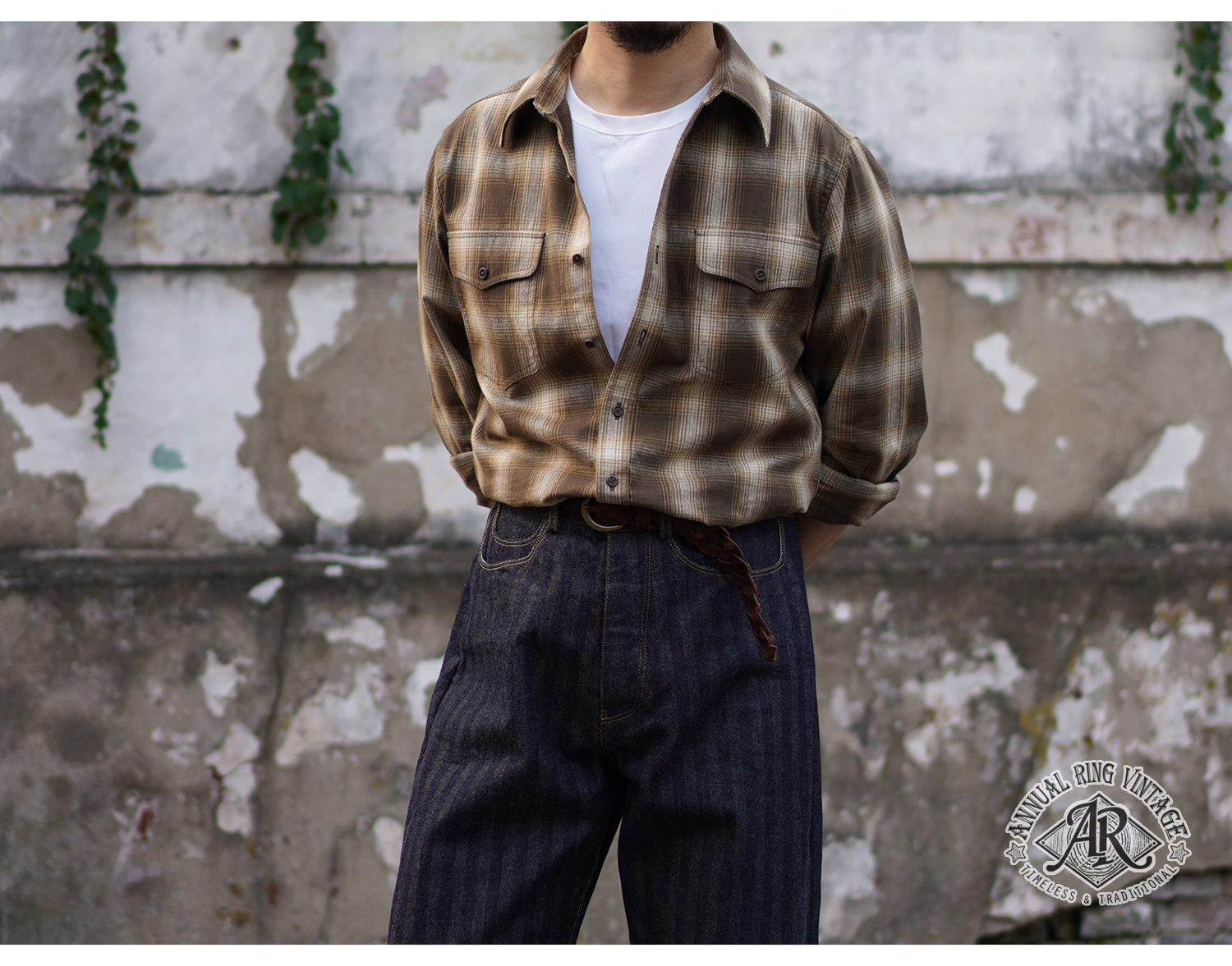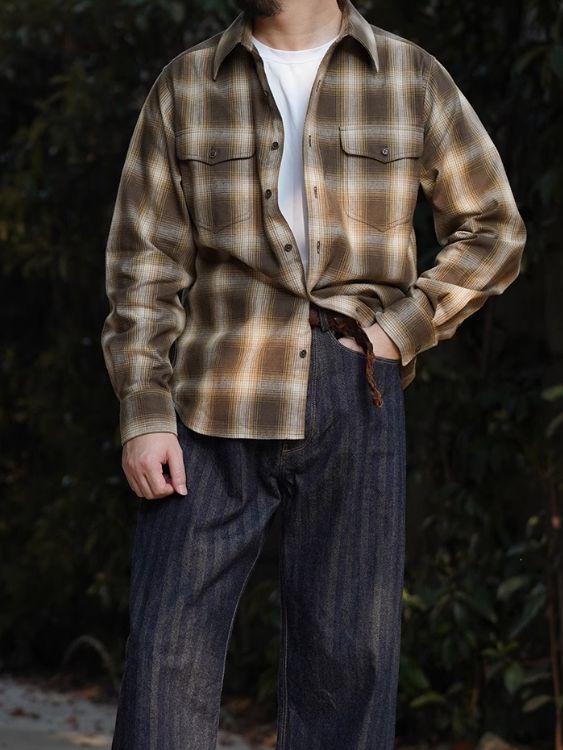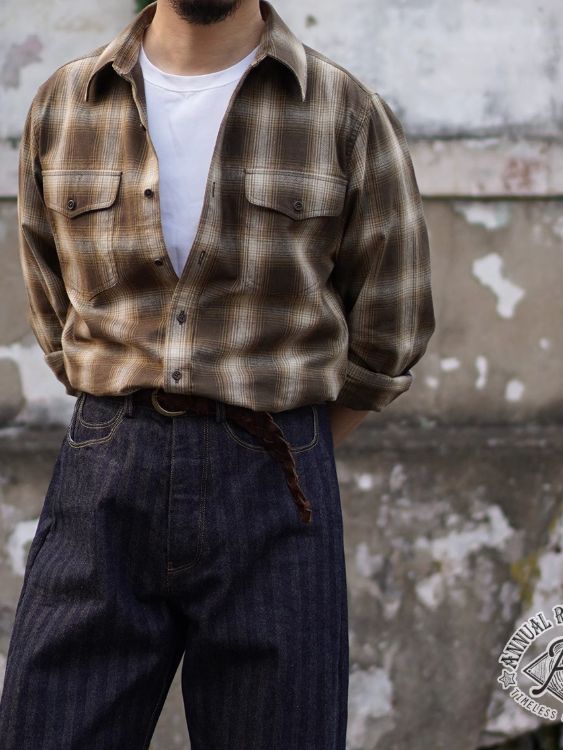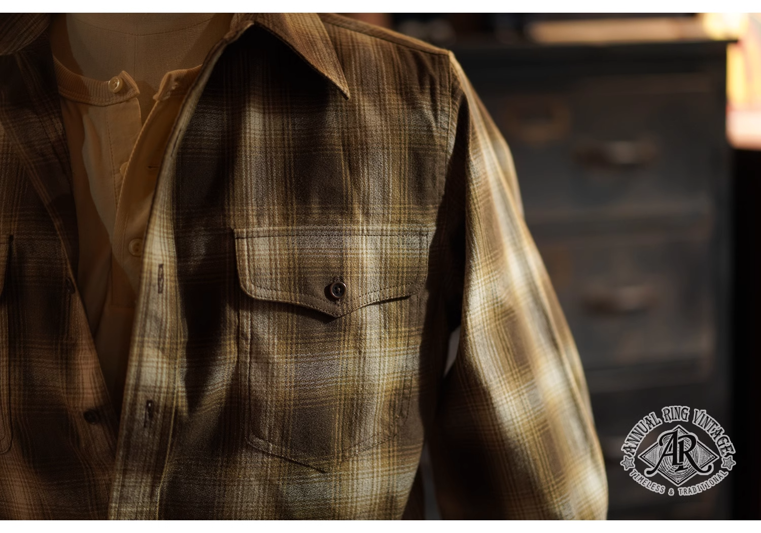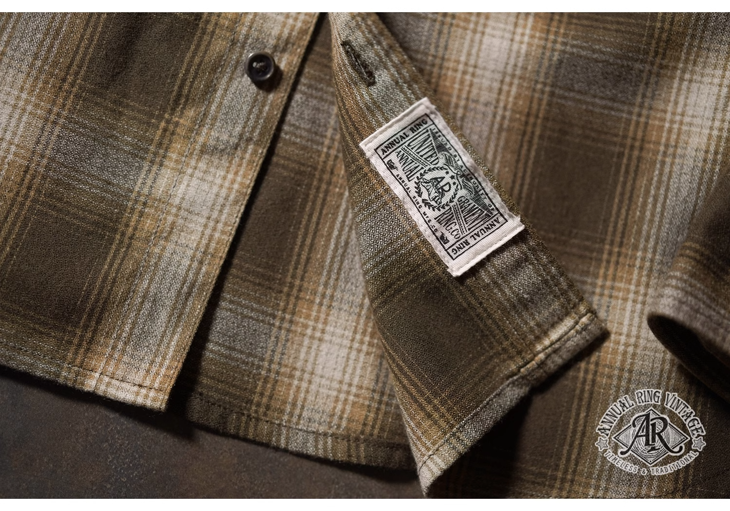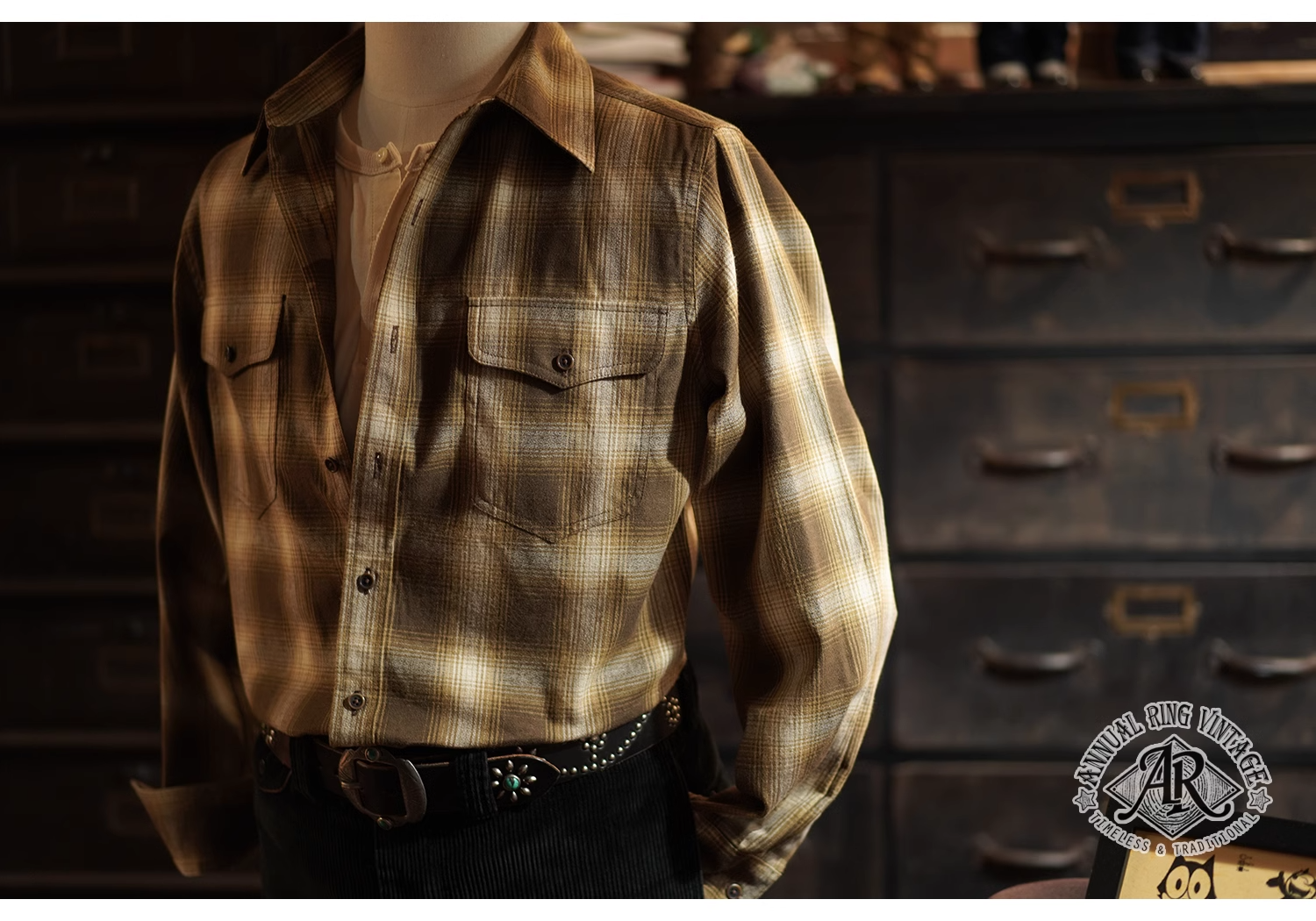 [애뉴얼링] 아메리칸 레트로 카키색 체크 무늬 셔츠
