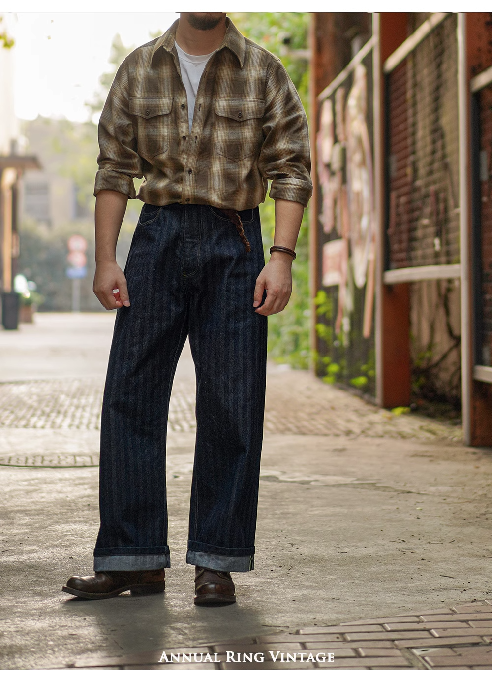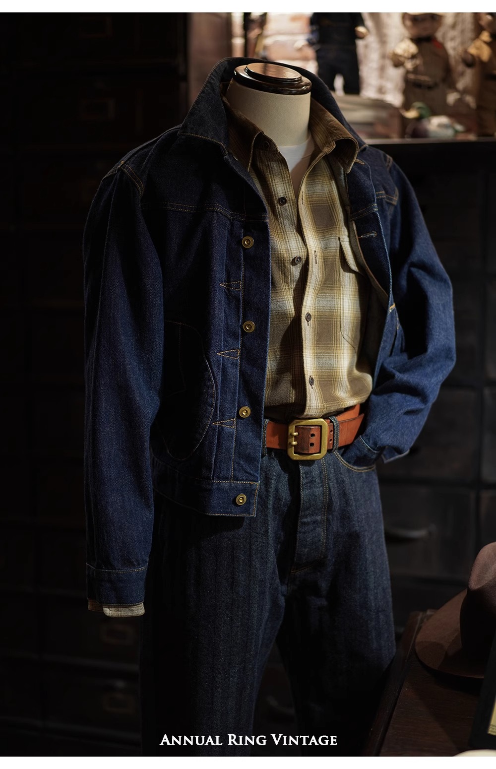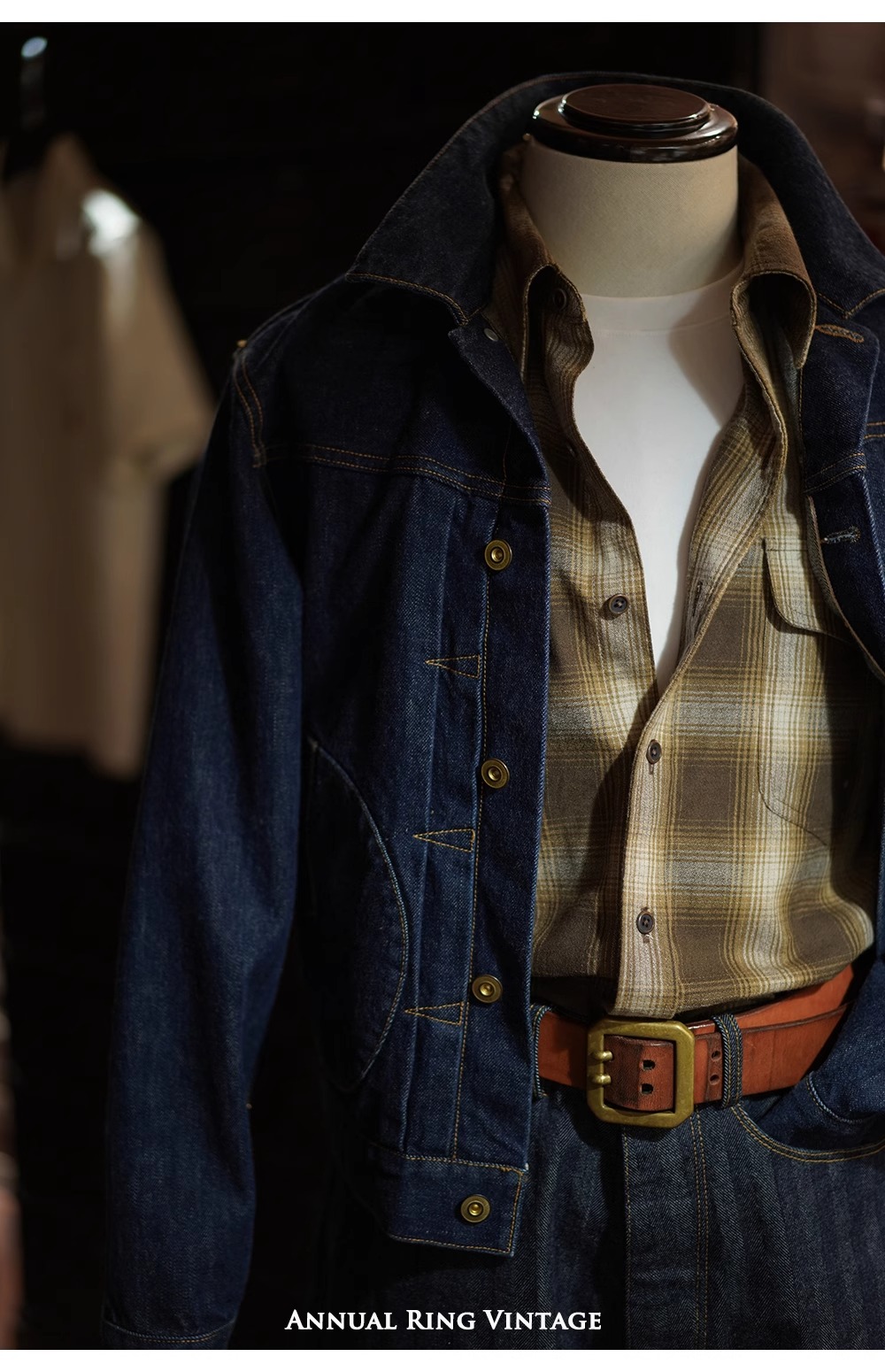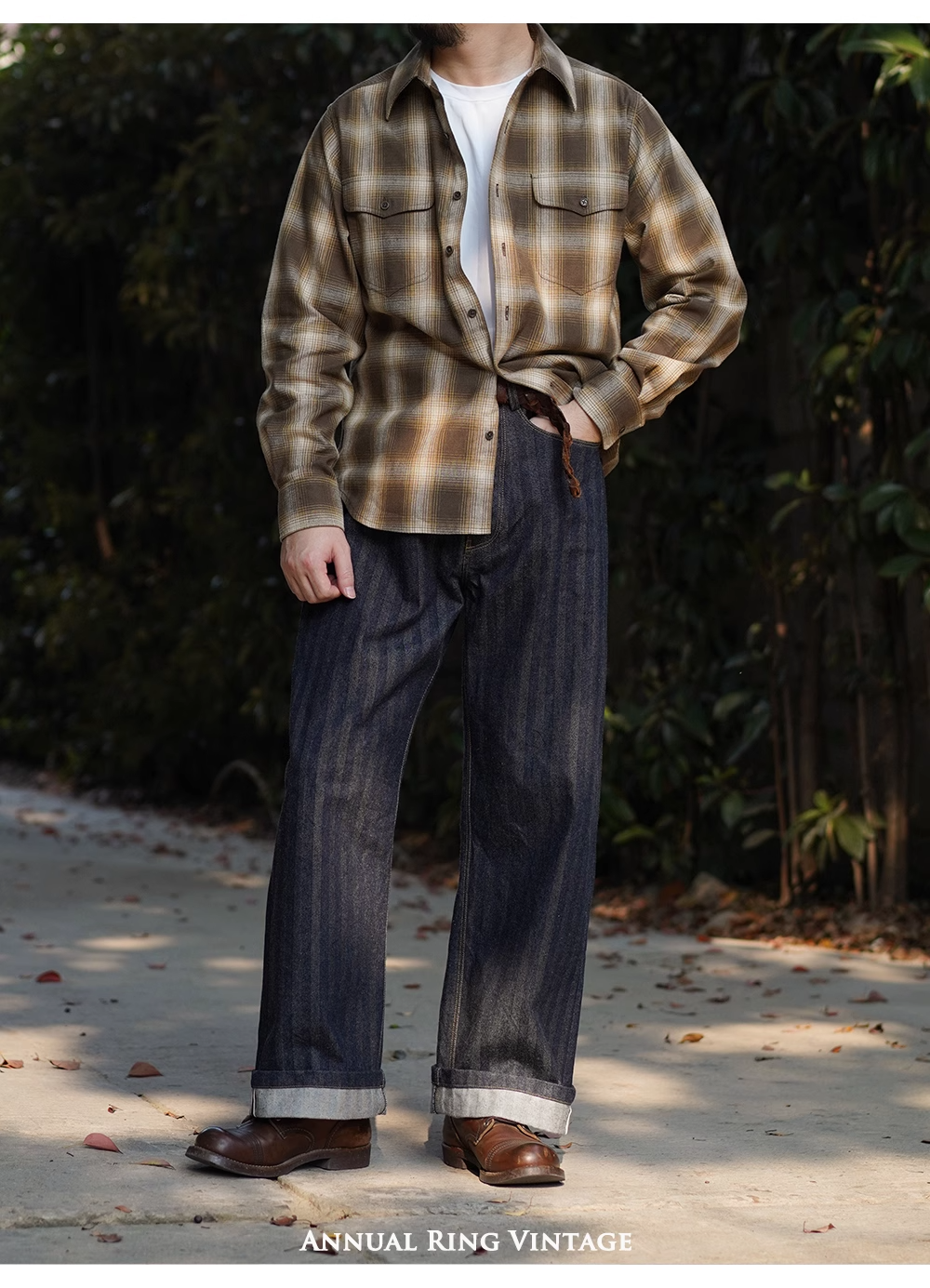 [애뉴얼링] 아메리칸 레트로 카키색 체크 무늬 셔츠