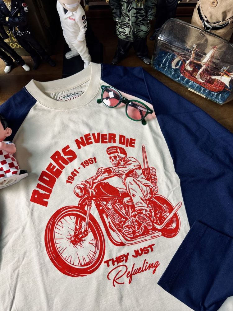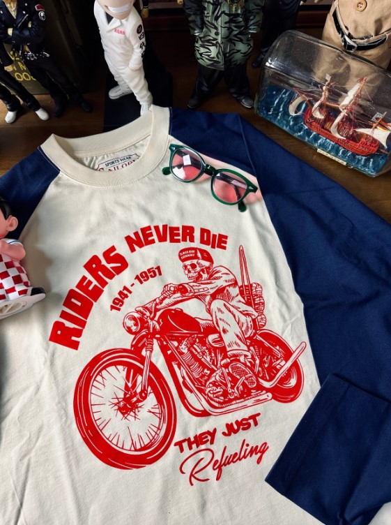 [세일러 조니] 스컬 라이더 그래픽 프린팅 래글런 롱 슬리브