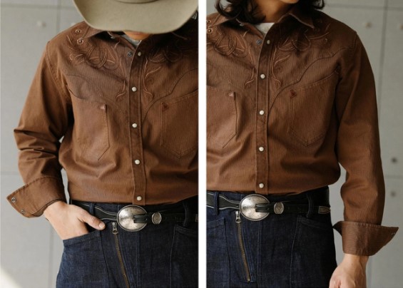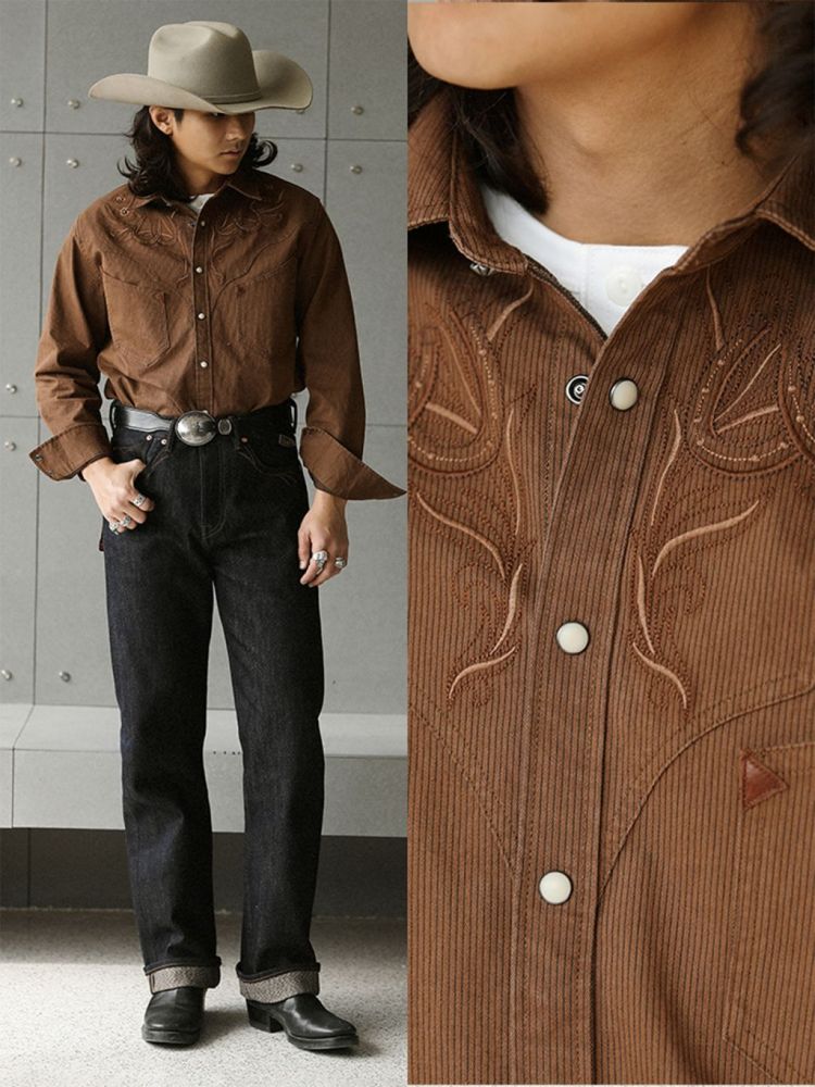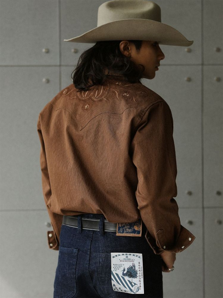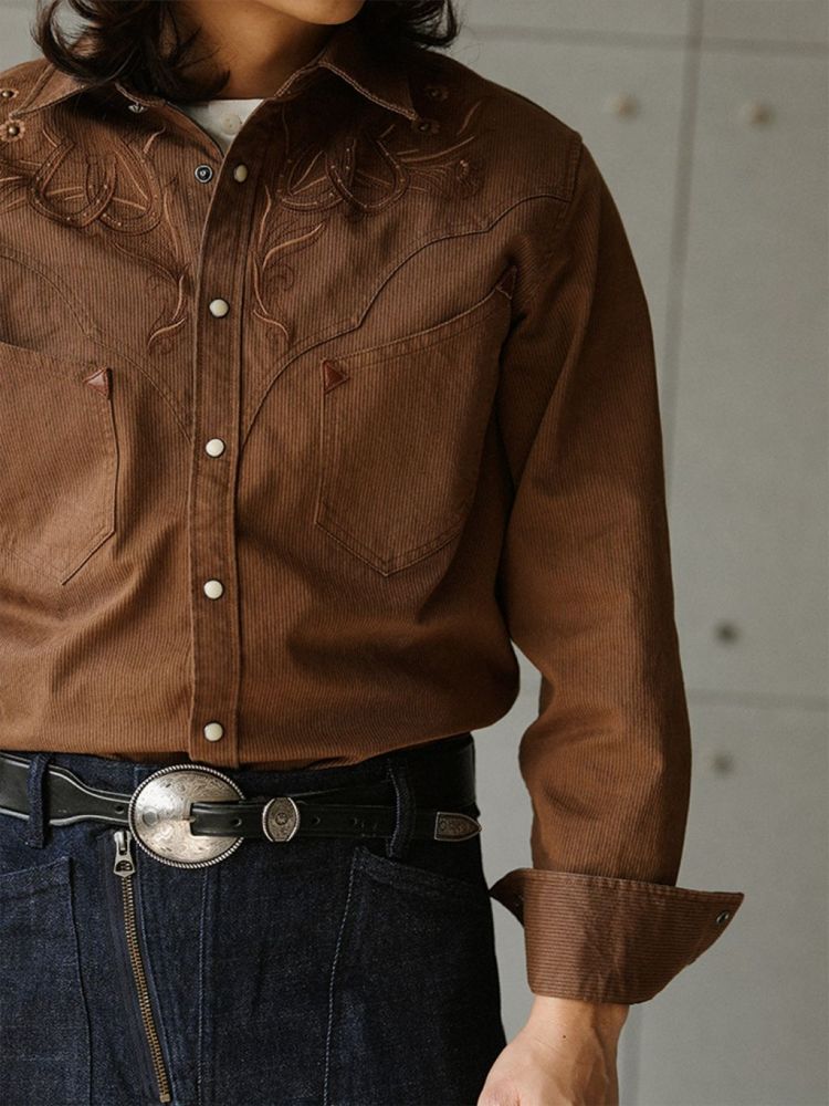 • 플라워 패턴과 디테일이 돋보이는 웨스턴 무드의 브라운 셔츠입니다.