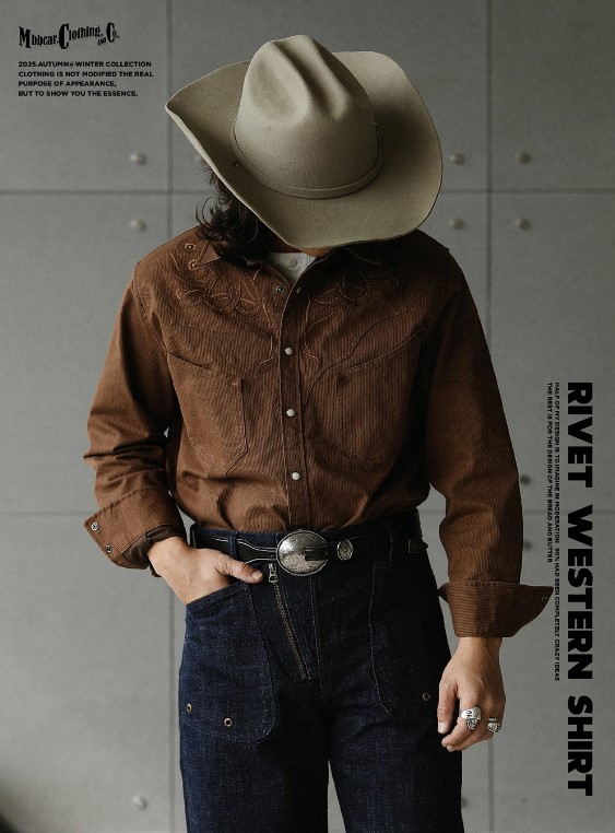 [엠비비카] 웨스턴 270g 플라워 디테일 브라운 셔츠