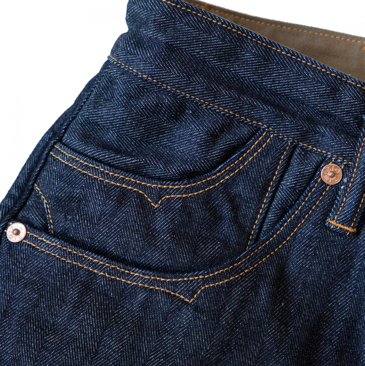 • 고급 셀비지 헤링본 데님 원단 사용