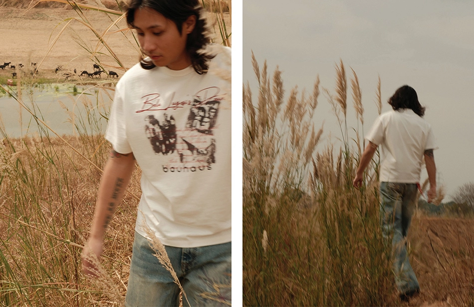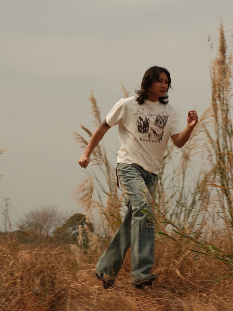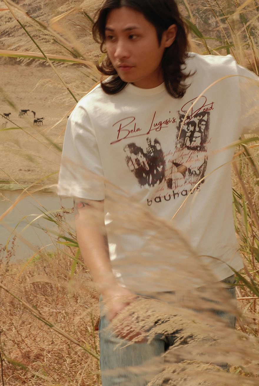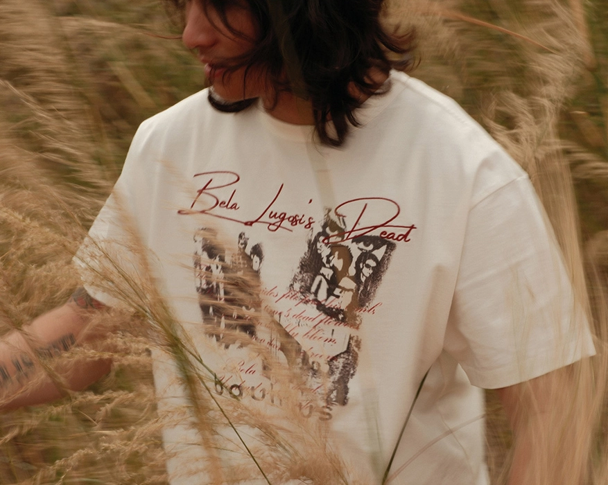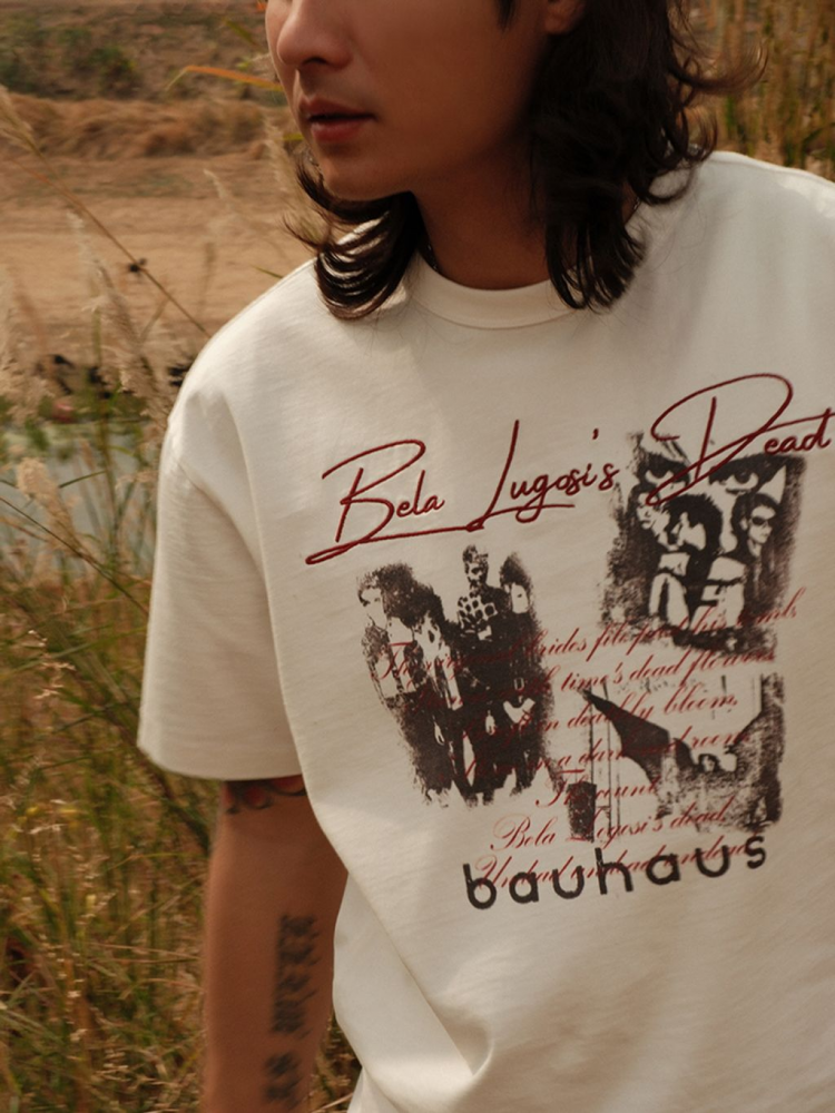 • 바우하우스 밴드 그래픽과 레터링이 돋보이는 반팔 티셔츠입니다.