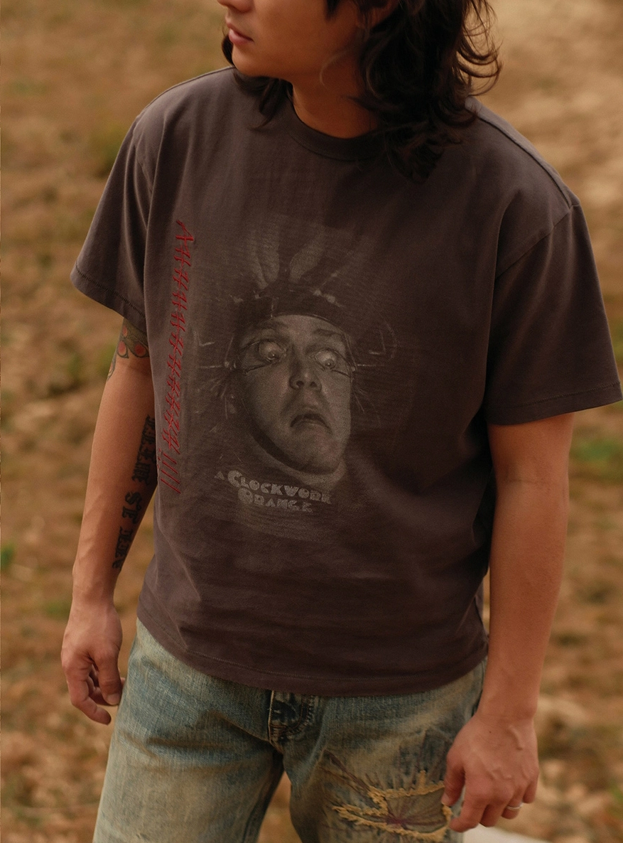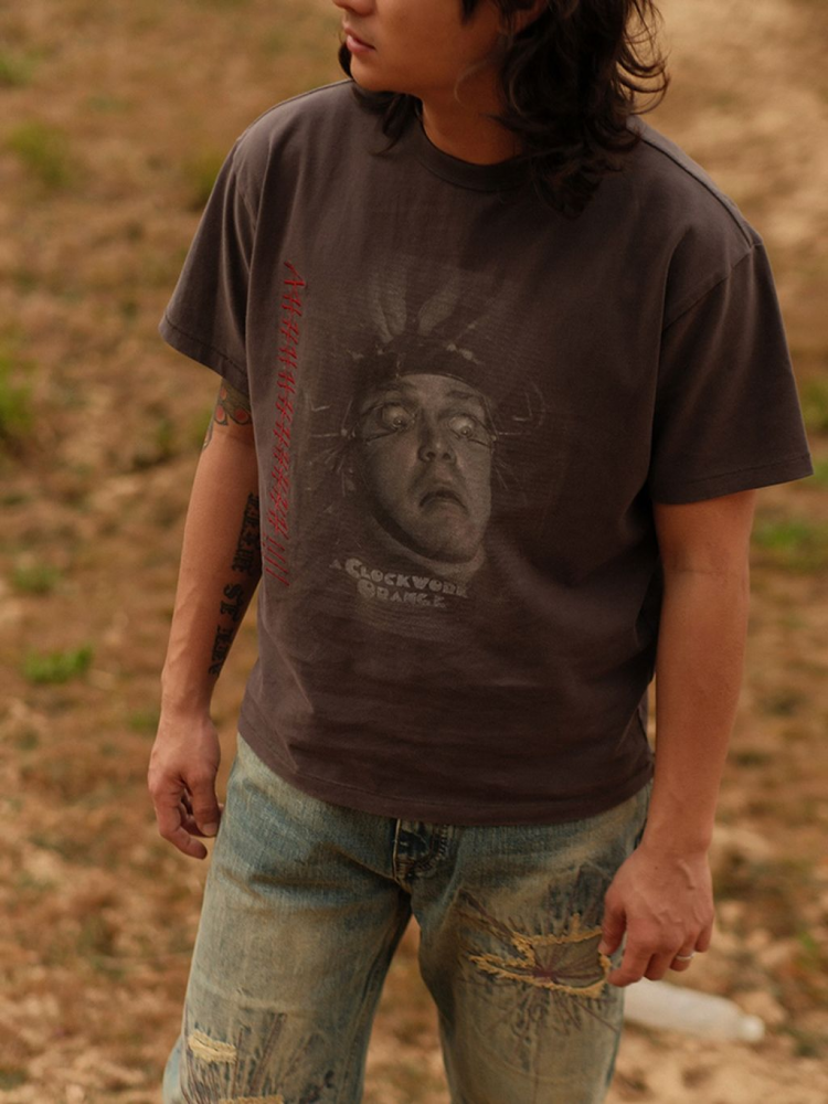 • 강렬한 프린팅과 레터링이 특징인 클락워크 오렌지 티셔츠입니다.