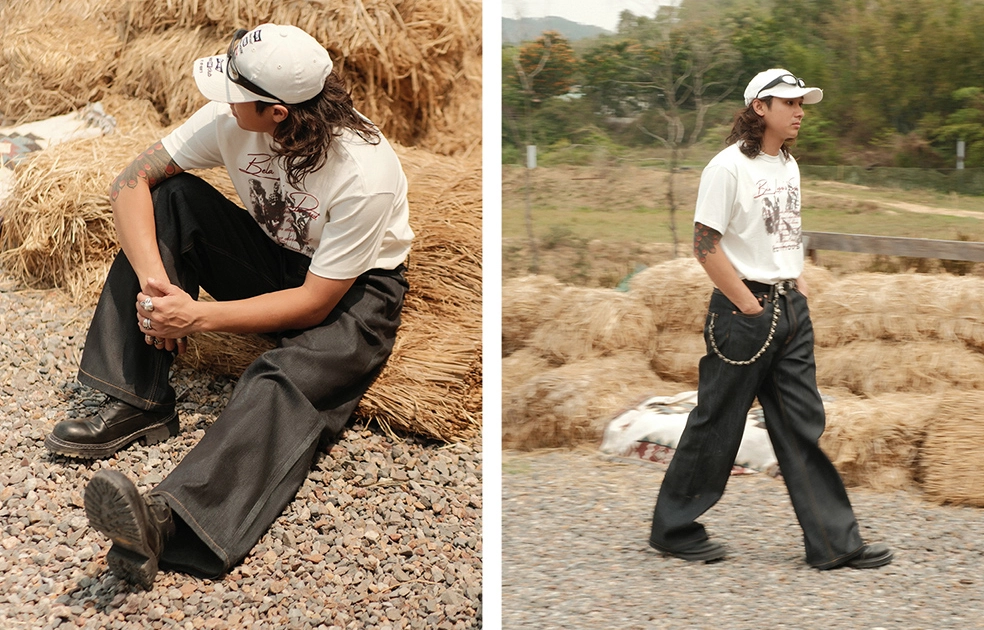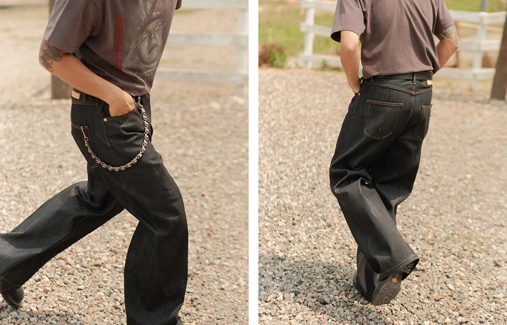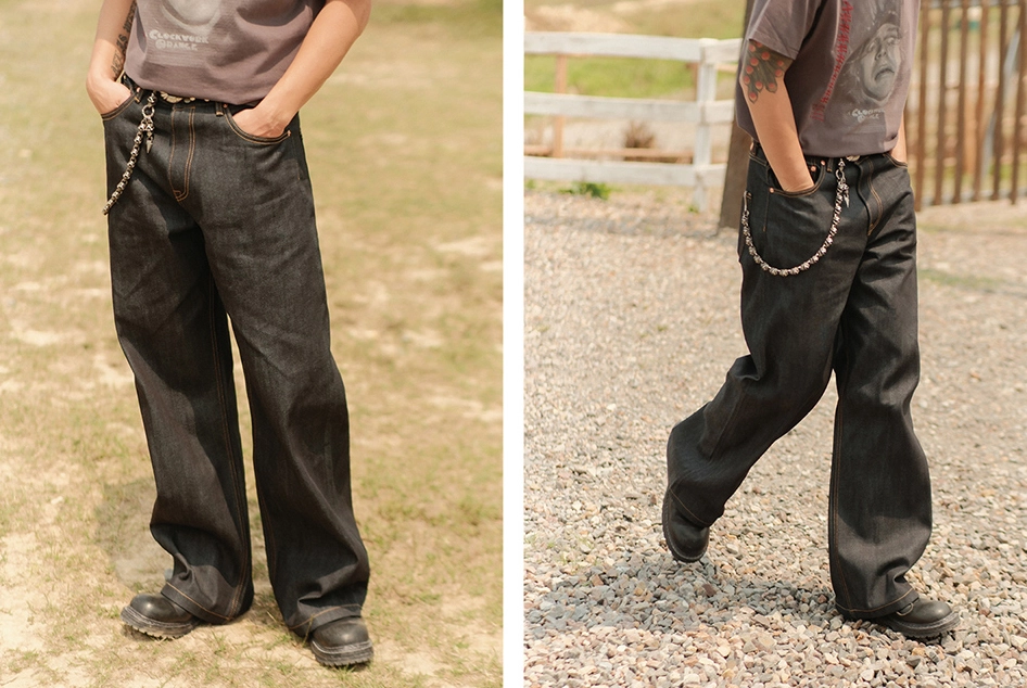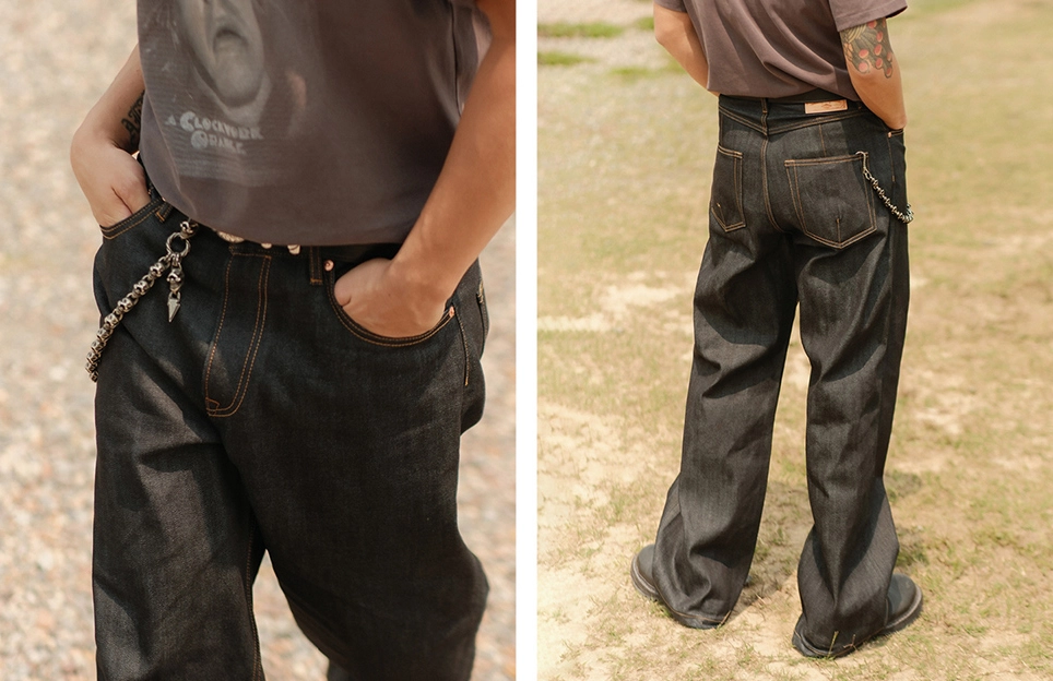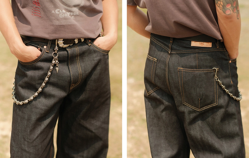• 12.8oz 데님 원단의 탄탄한 조직감으로 장시간 착용해도 흐트러짐 없이 각이 살아 있으며, 입을수록 자연스러운 에이징 효과