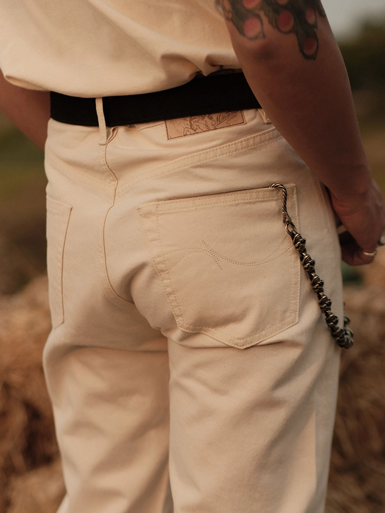 • 깔끔한 스타일과 고급스러운 느낌을 동시에 선사하는 11oz 701 화이트 데님 팬츠로, 자연스러운 화이트 톤이 봄과 여름 시즌에 특히 빛나는 아이템입니다.