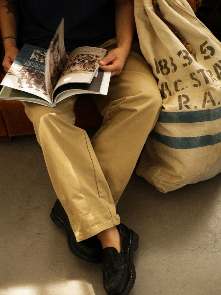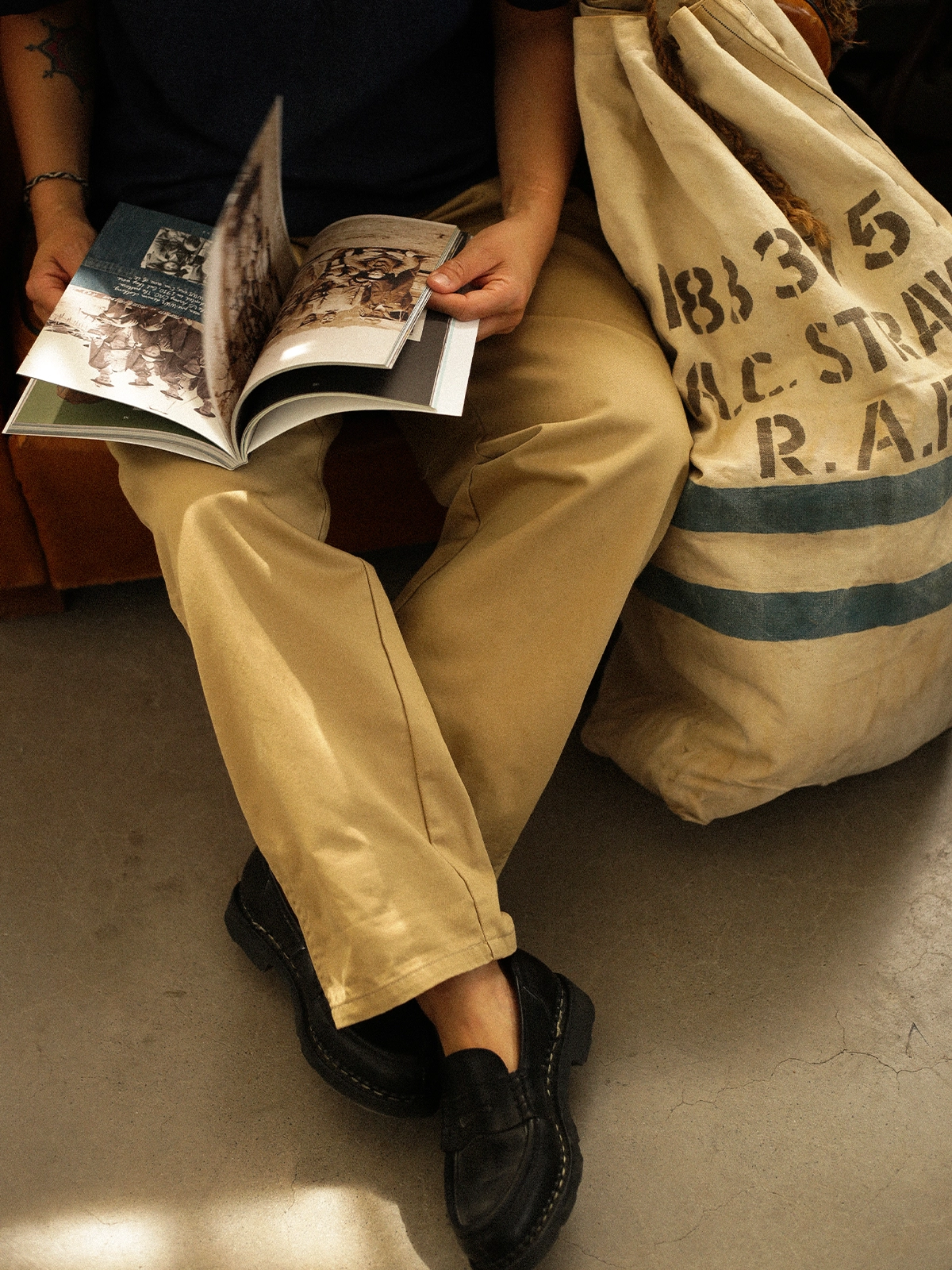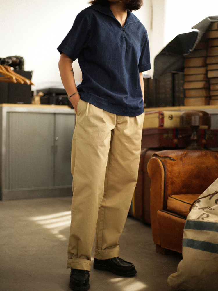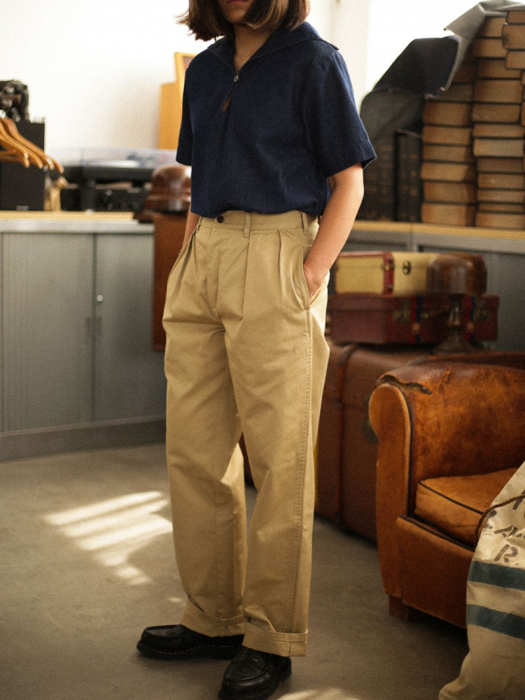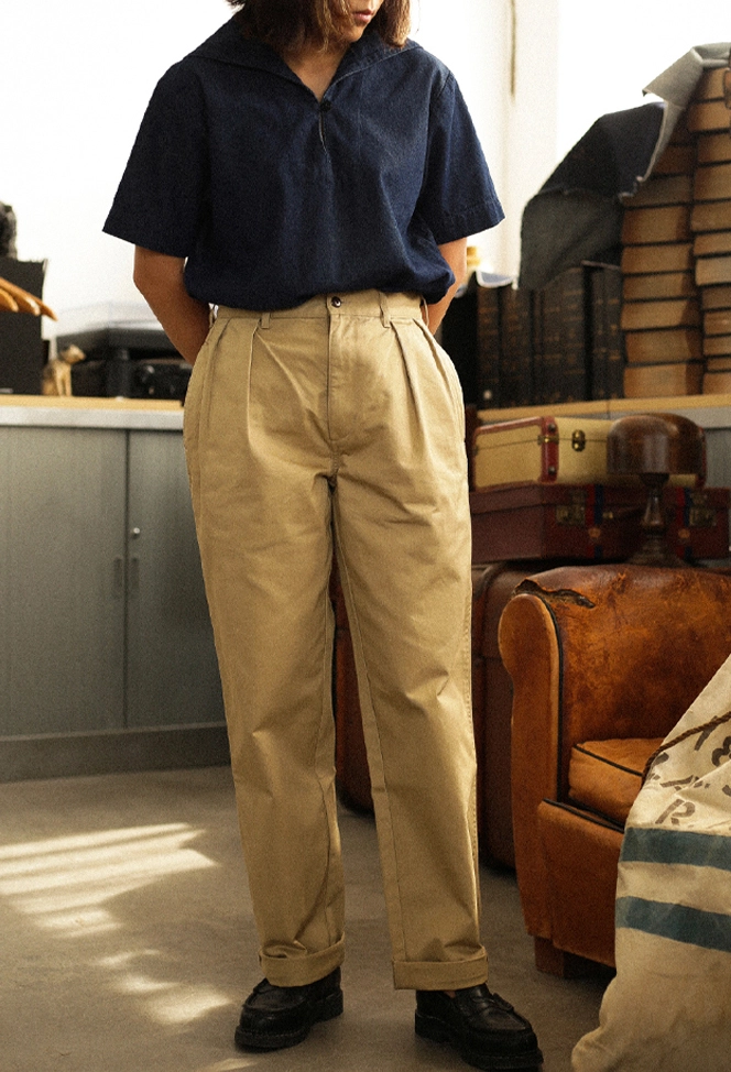 • 클래식 아이비리그 스타일에서 영감을 받은 스탠다드 치노 팬츠로, 여유 있는 실루엣과 프런트 턱 디테일이 특징입니다. 자연스럽게 떨어지는 스트레이트 핏으로 편안한 착용감을 선사하며, 데일리 팬츠로 손색없습니다.