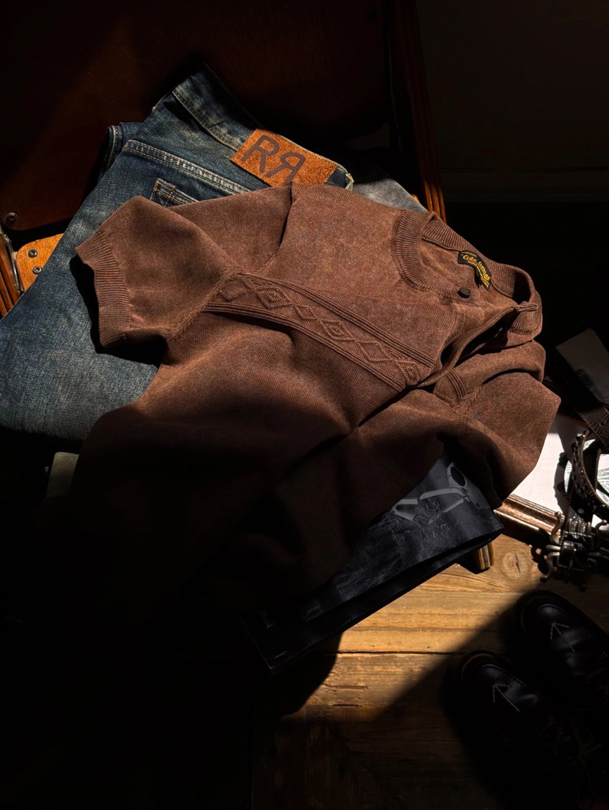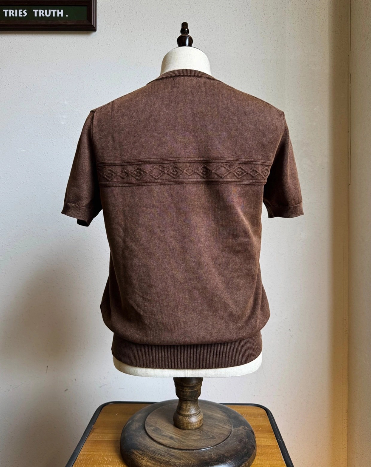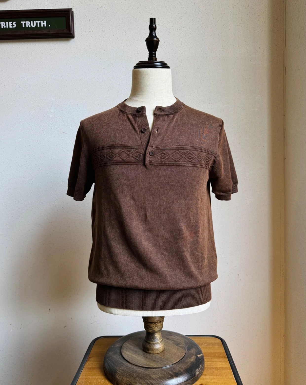 • 나바호 패턴과 스톤 워싱 텍스처가 조화를 이룬 빈티지 헨리넥 티셔츠입니다. 두 번의 염색과 세탁 과정을 거쳐 완성된 자연스러운 색감과 견고한 봉제 마감이 돋보이며, 단독 착용만으로도 스타일에 힘을 실어주는 아이템입니다.