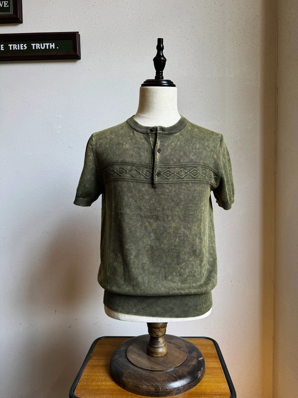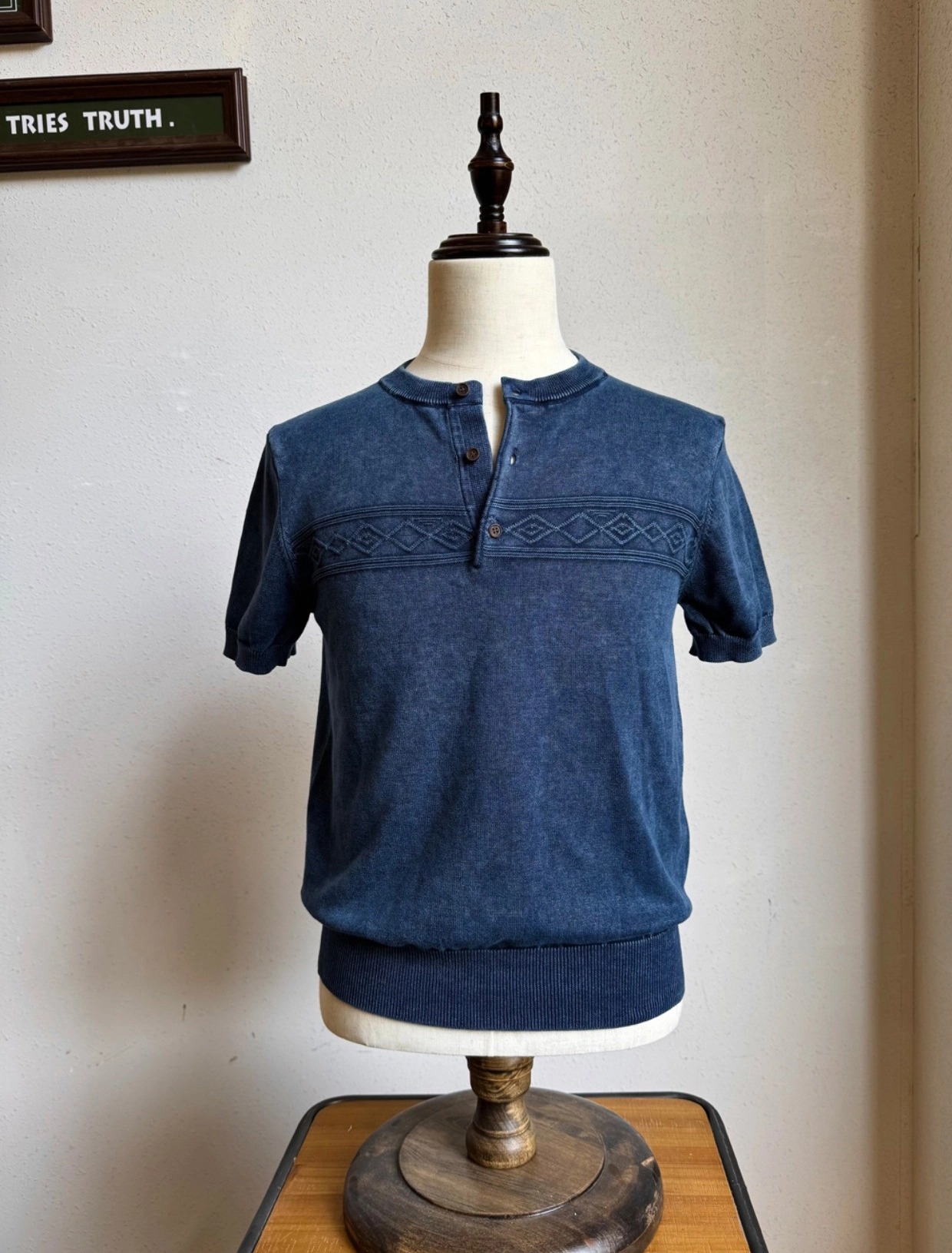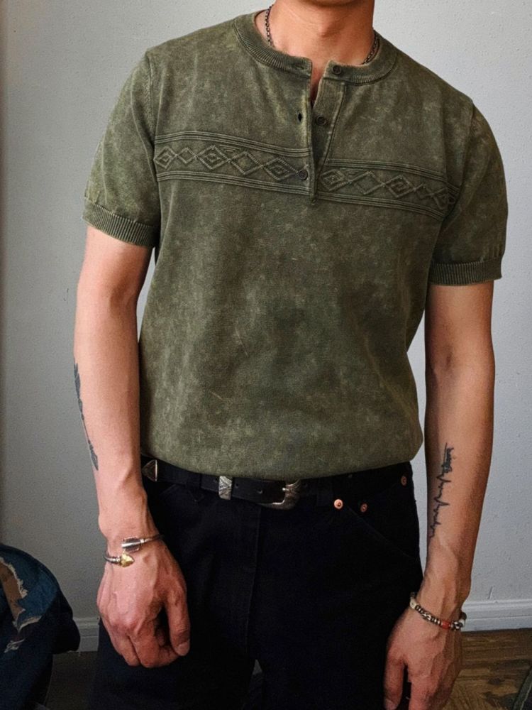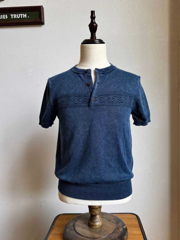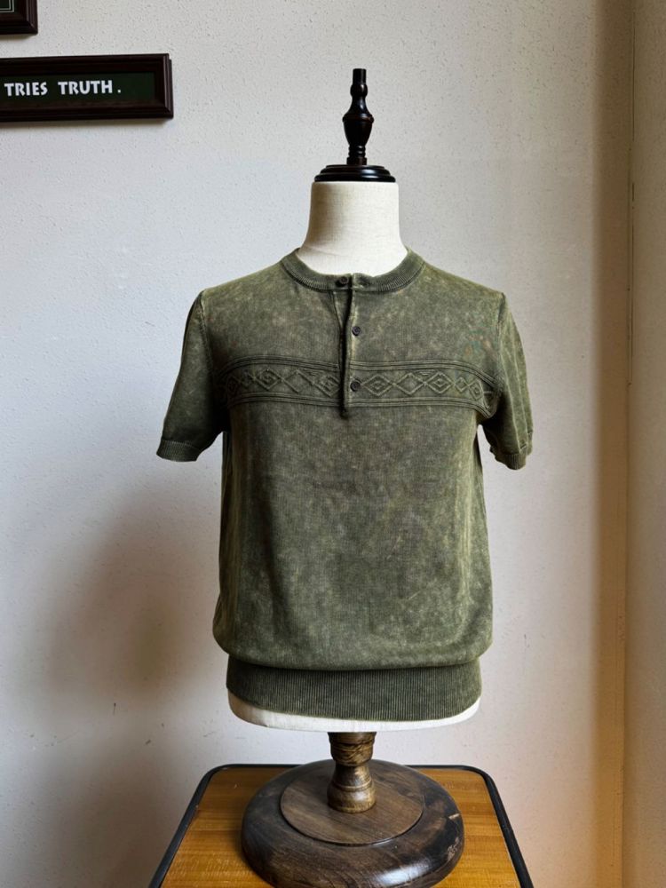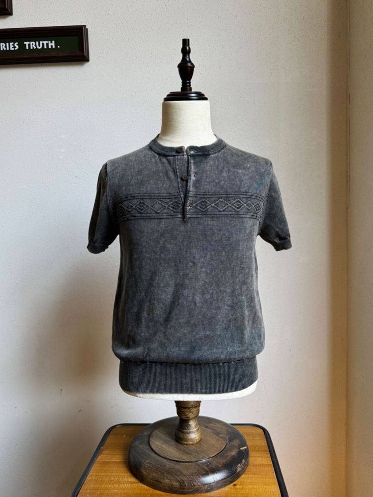 [제도] 스톤 워싱 나바호 패턴 헨리넥 반팔티