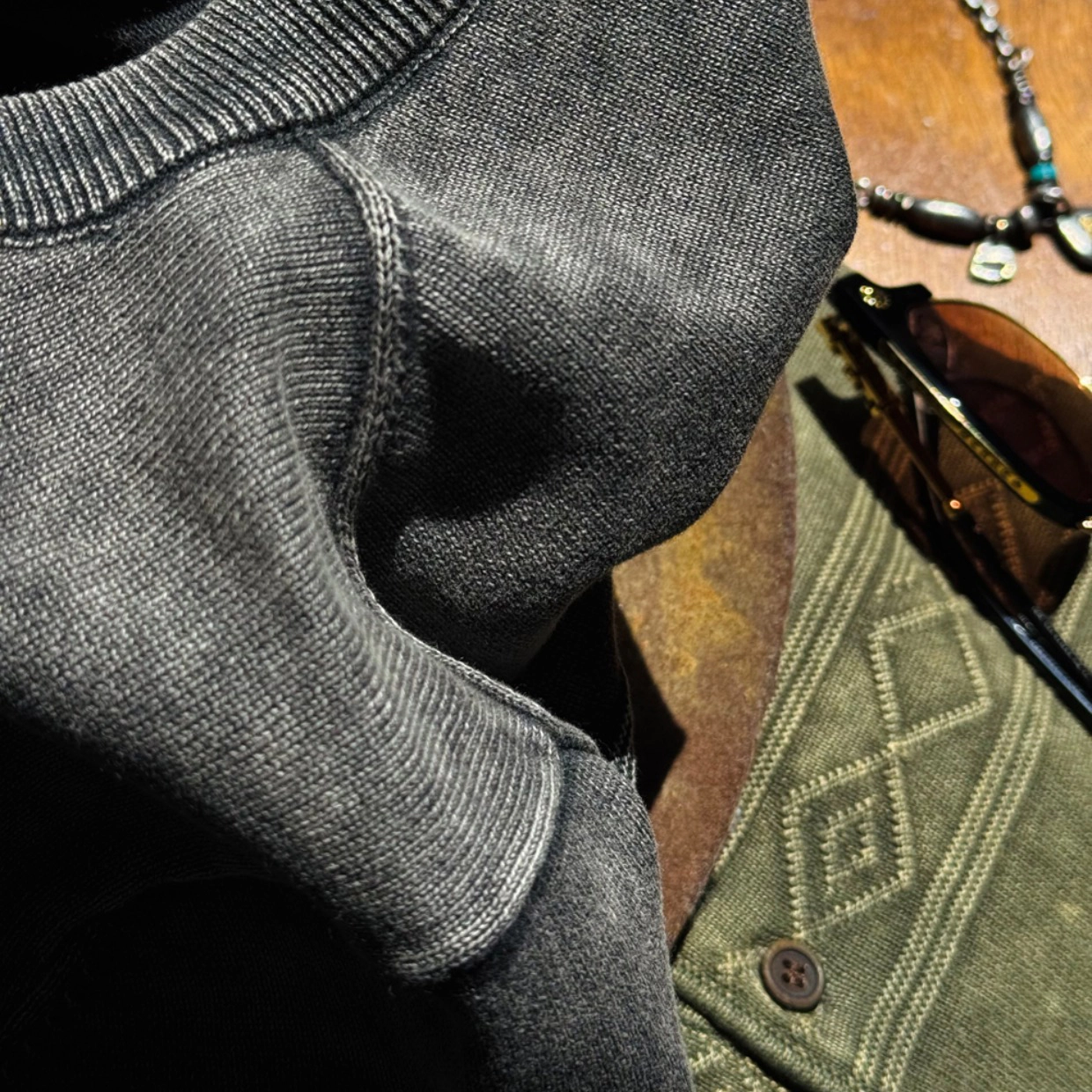 • 입체 짜임 디테일: 가슴 부분에 짜여진 나바호 문양으로 유니크한 포인트