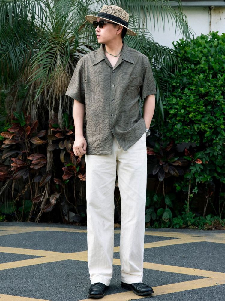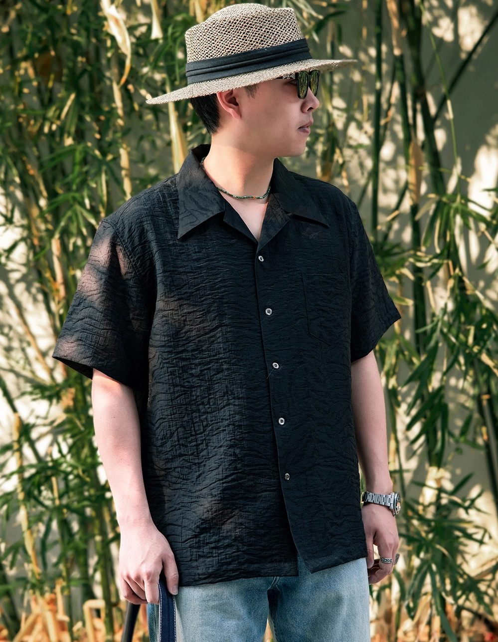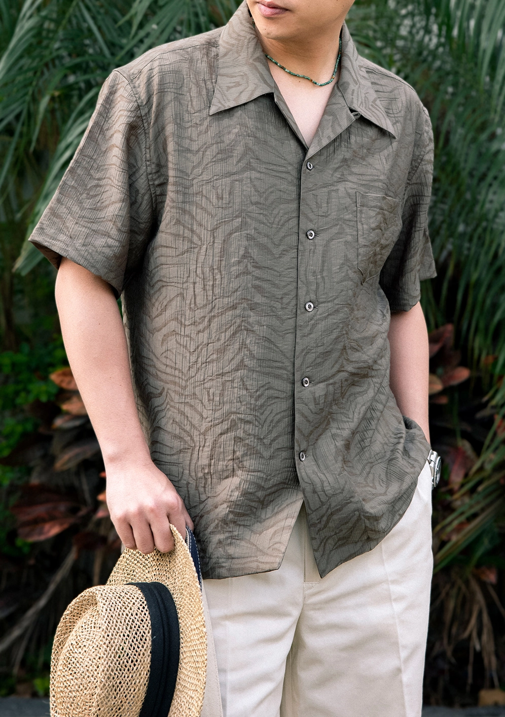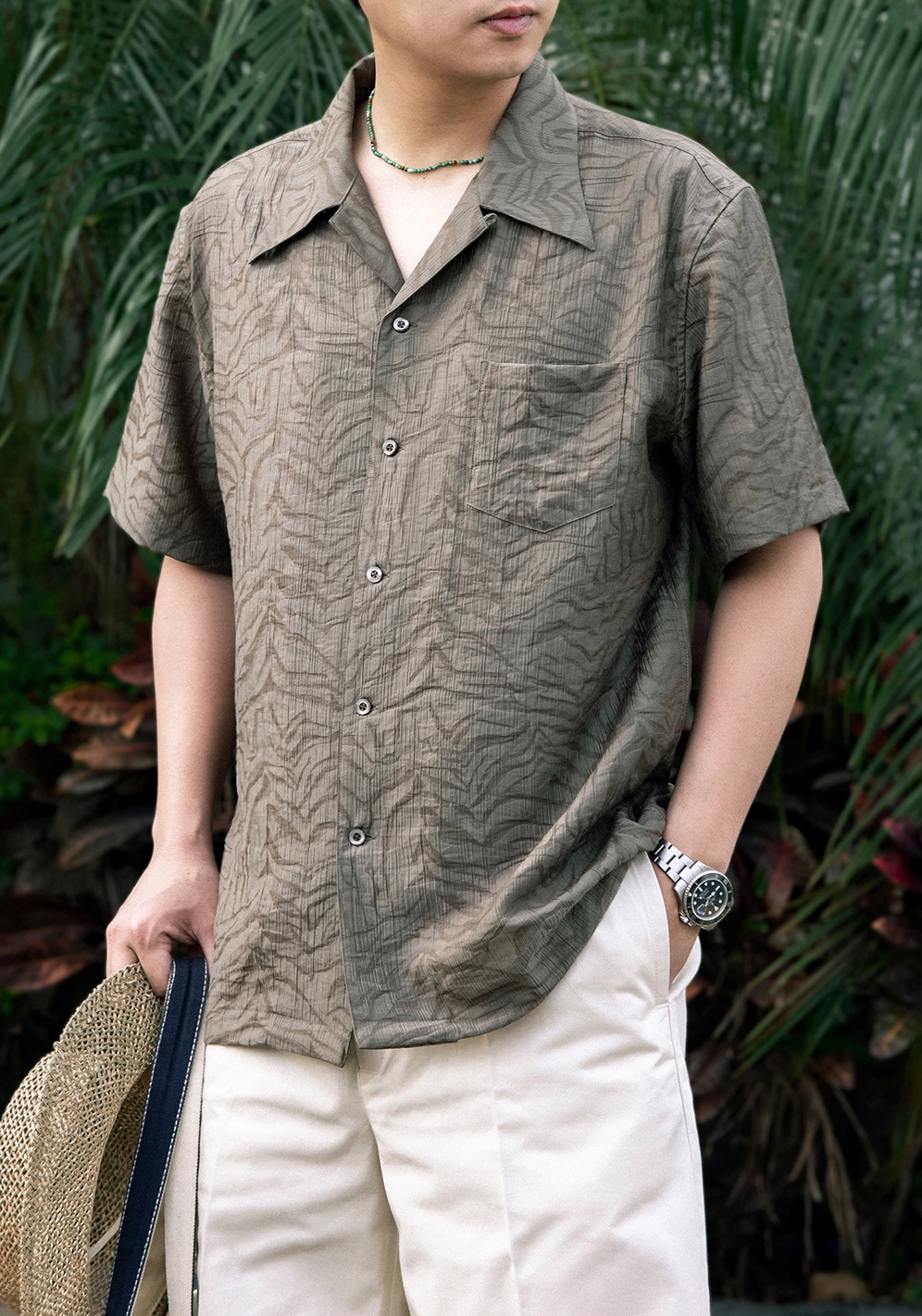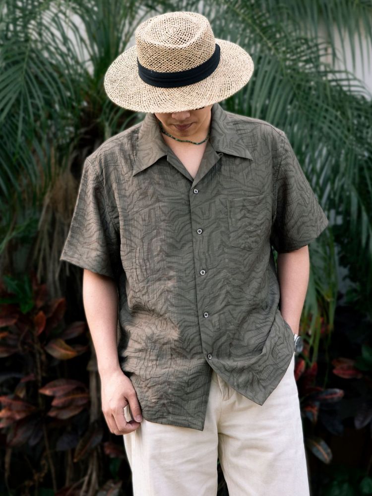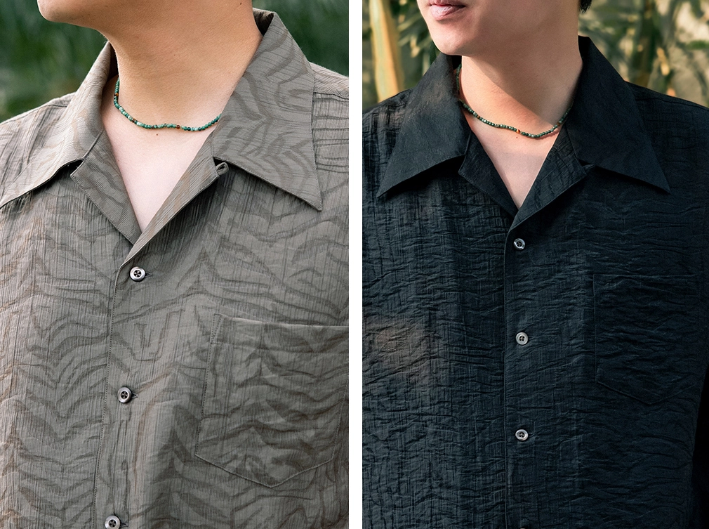 입체적인 플로럴 자카드 패턴과 여유로운 실루엣이 어우러진 하와이안 셔츠입니다. 식물성 섬유인 텐셀 혼방 원단을 사용해 바람처럼 부드럽고 쿨링한 착용감을 선사하며, 빛에 따라 은은하게 드러나는 패턴이 고급스러운 분위기를 연출합니다.
