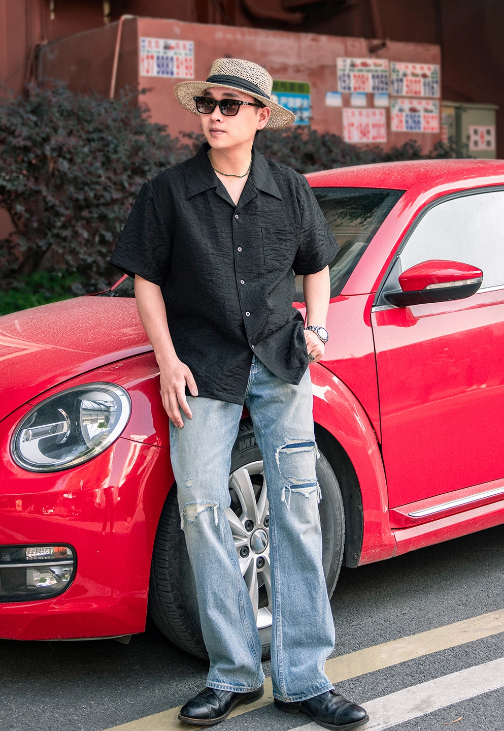• 루즈 핏: 여유로운 실루엣과 오픈 칼라 디자인으로 편안한 무드