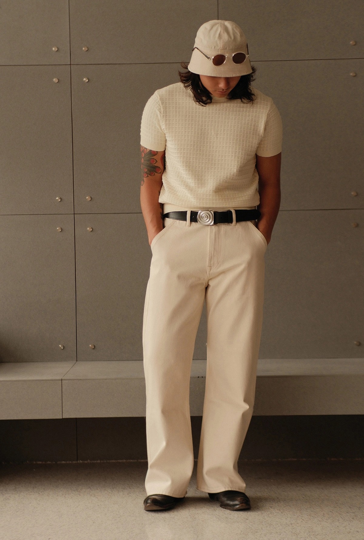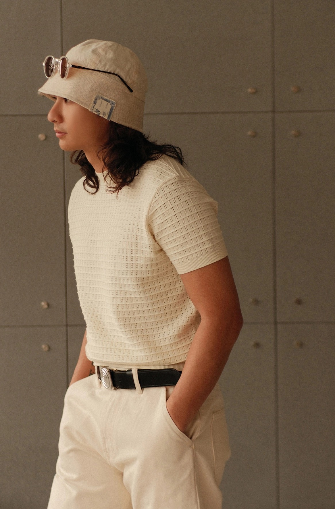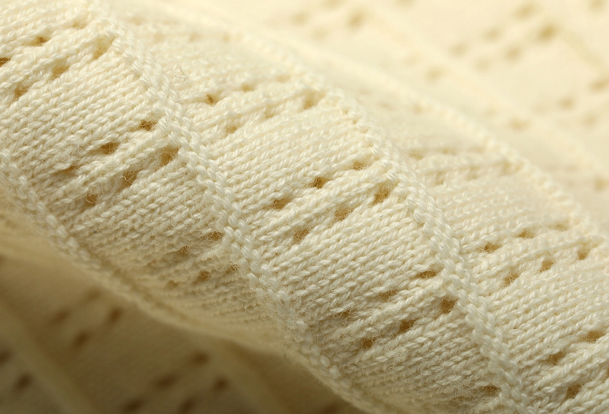 은은한 큐빅 디테일과 섬세한 펀칭 조직이 돋보이는 썸머 니트입니다.