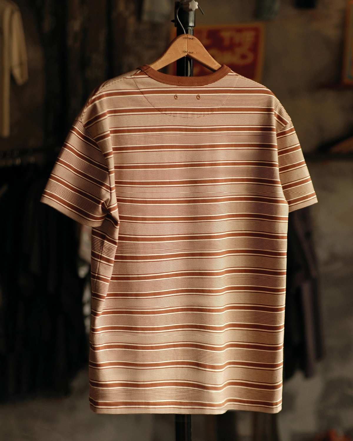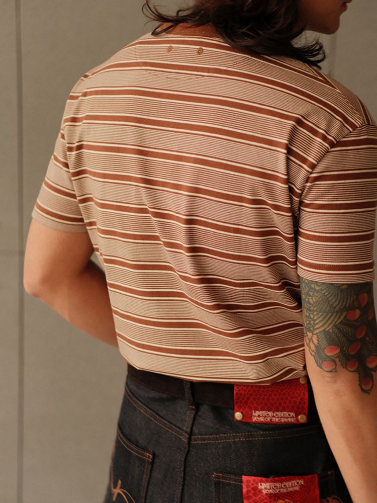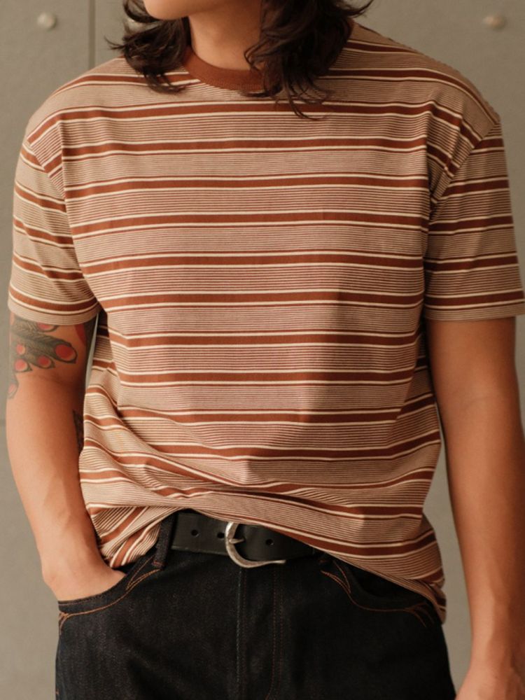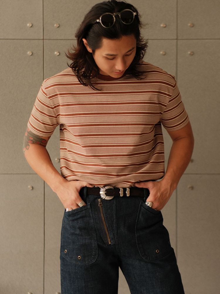 레드와 베이지 컬러의 조화로운 스트라이프 패턴은 클래식하면서도 레트로한 분위기를 자아내며, 다양한 스타일에 자연스럽게 어울리는 아이템입니다.