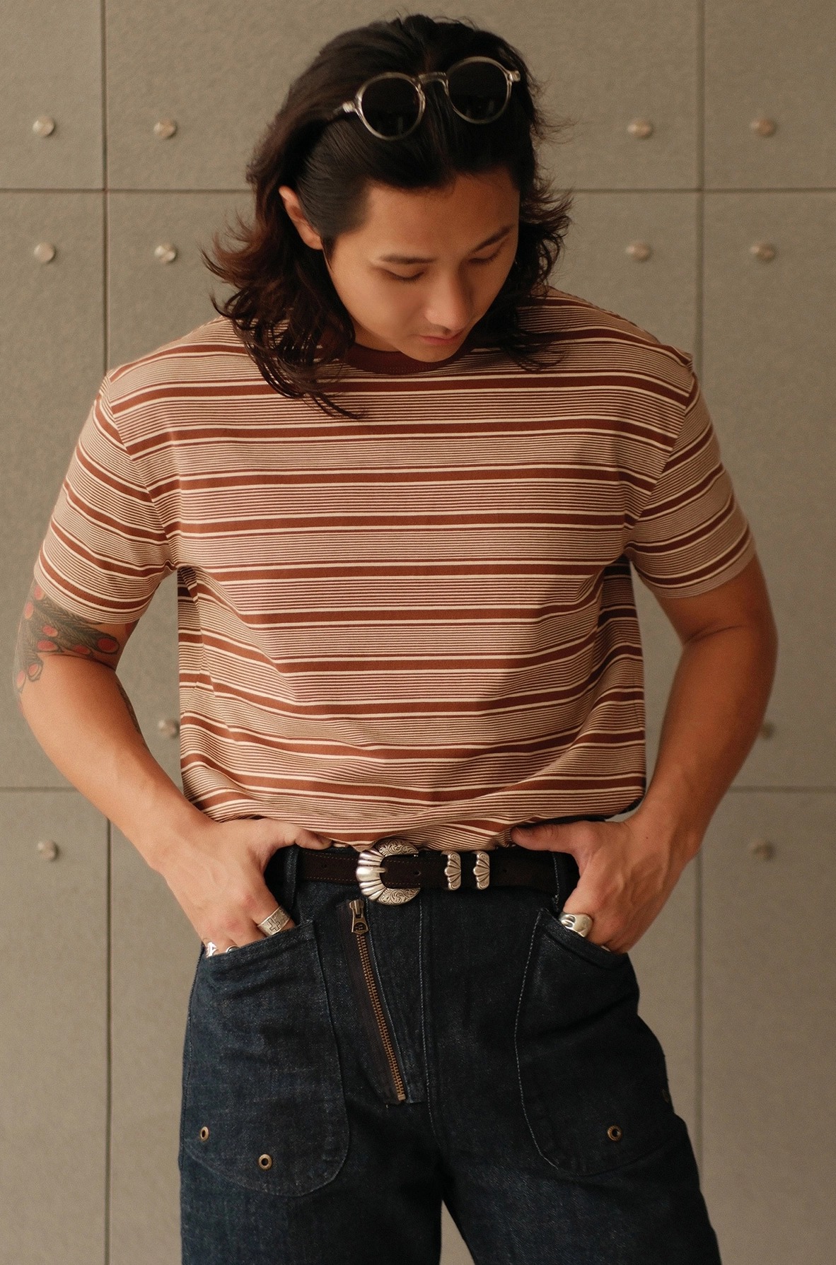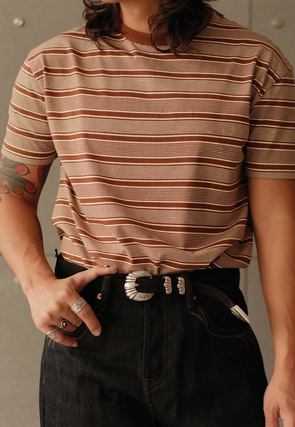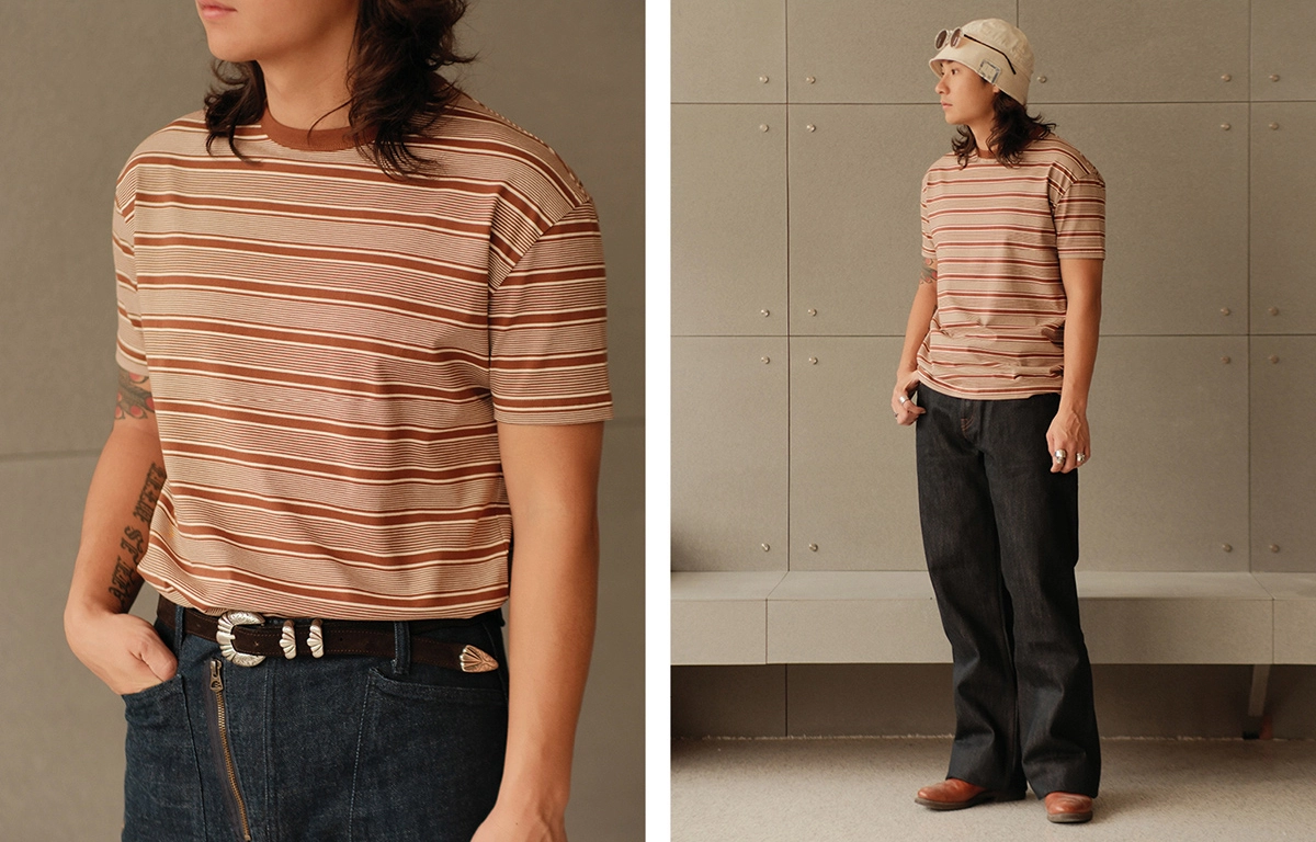 • 클래식한 레드 × 베이지 스트라이프 패턴