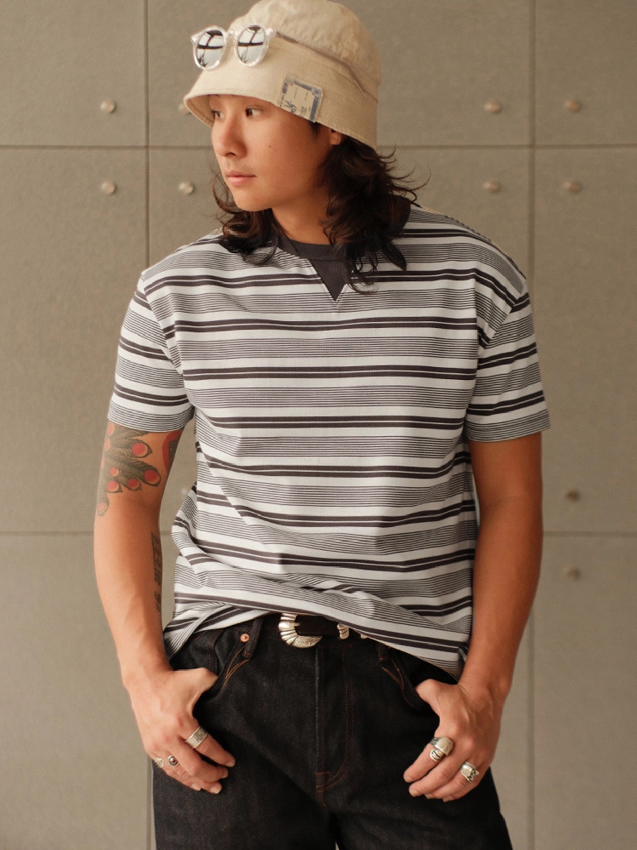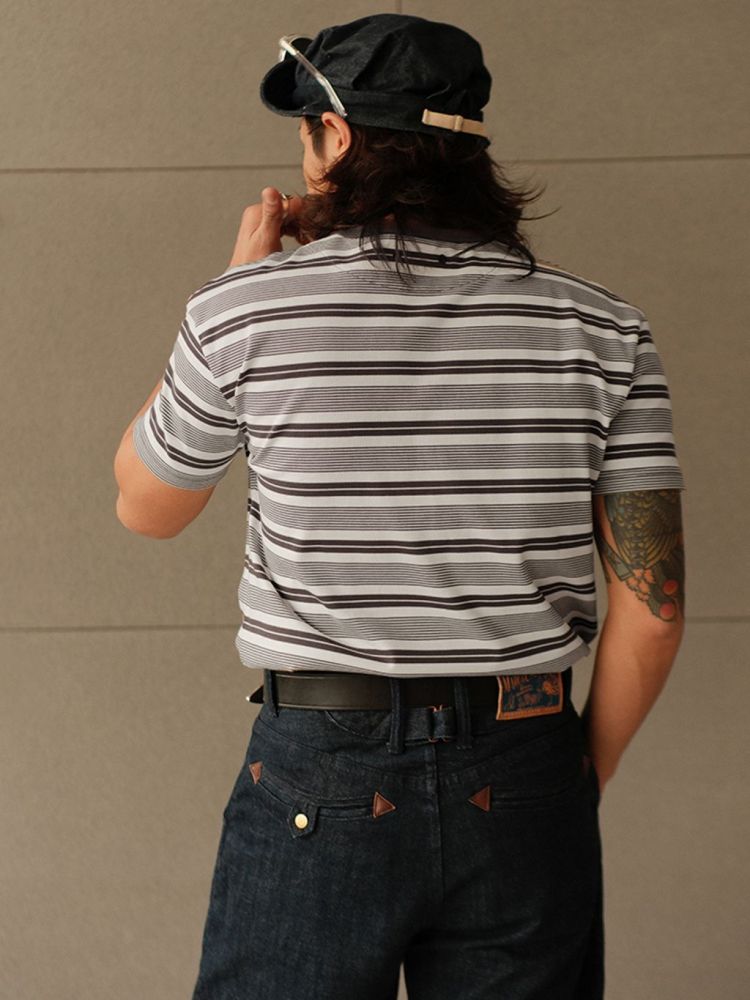 밀도 높은 310g 헤비웨이트 코튼 원단으로 제작된 스트라이프 티셔츠입니다.