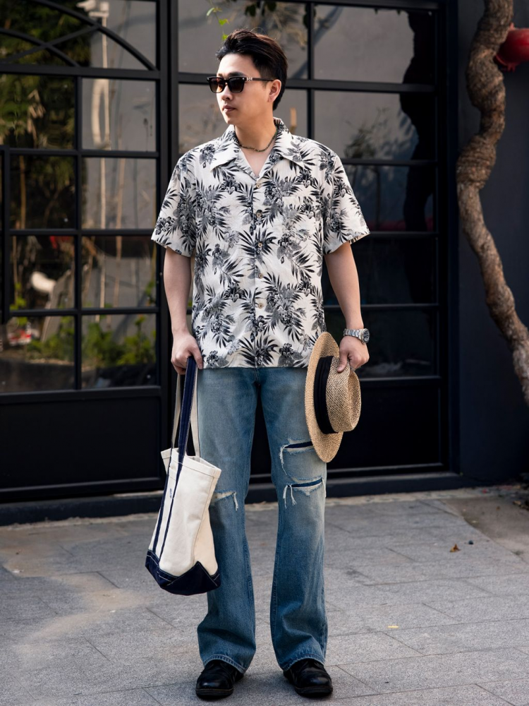 • 빈티지 하와이안 무드의 플라워와 야자 프린트가 시각적으로 풍성한 인상