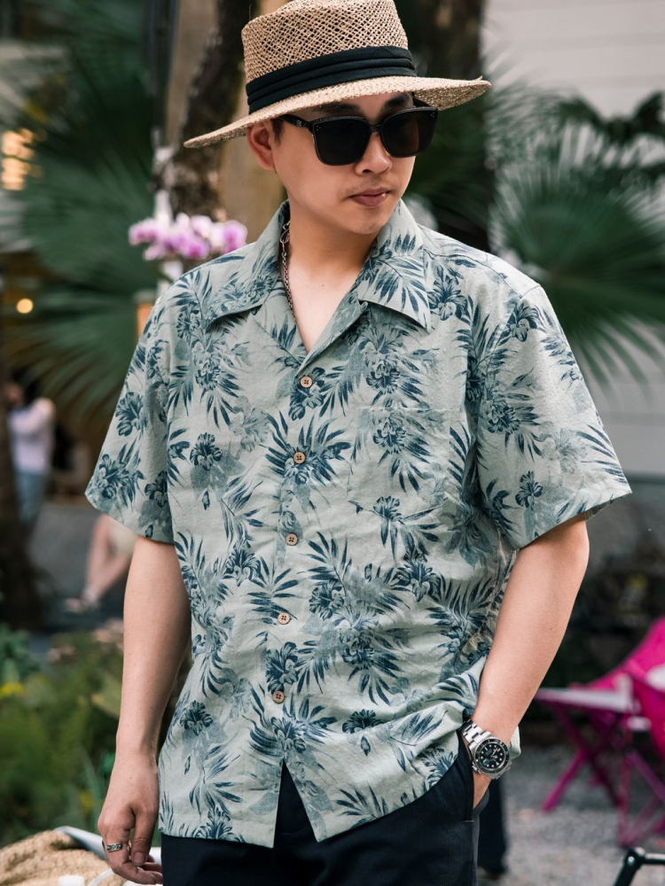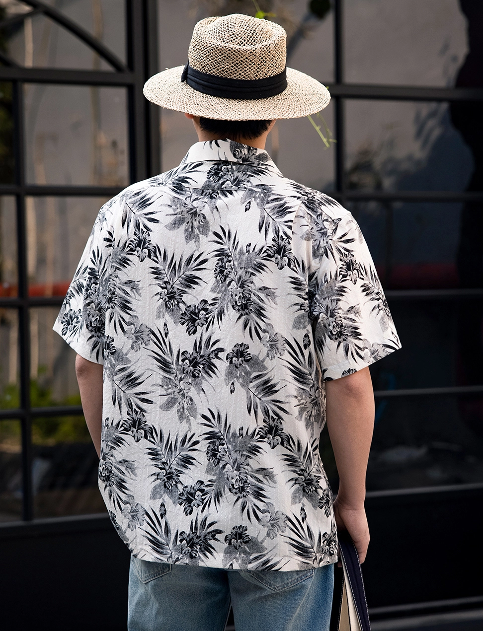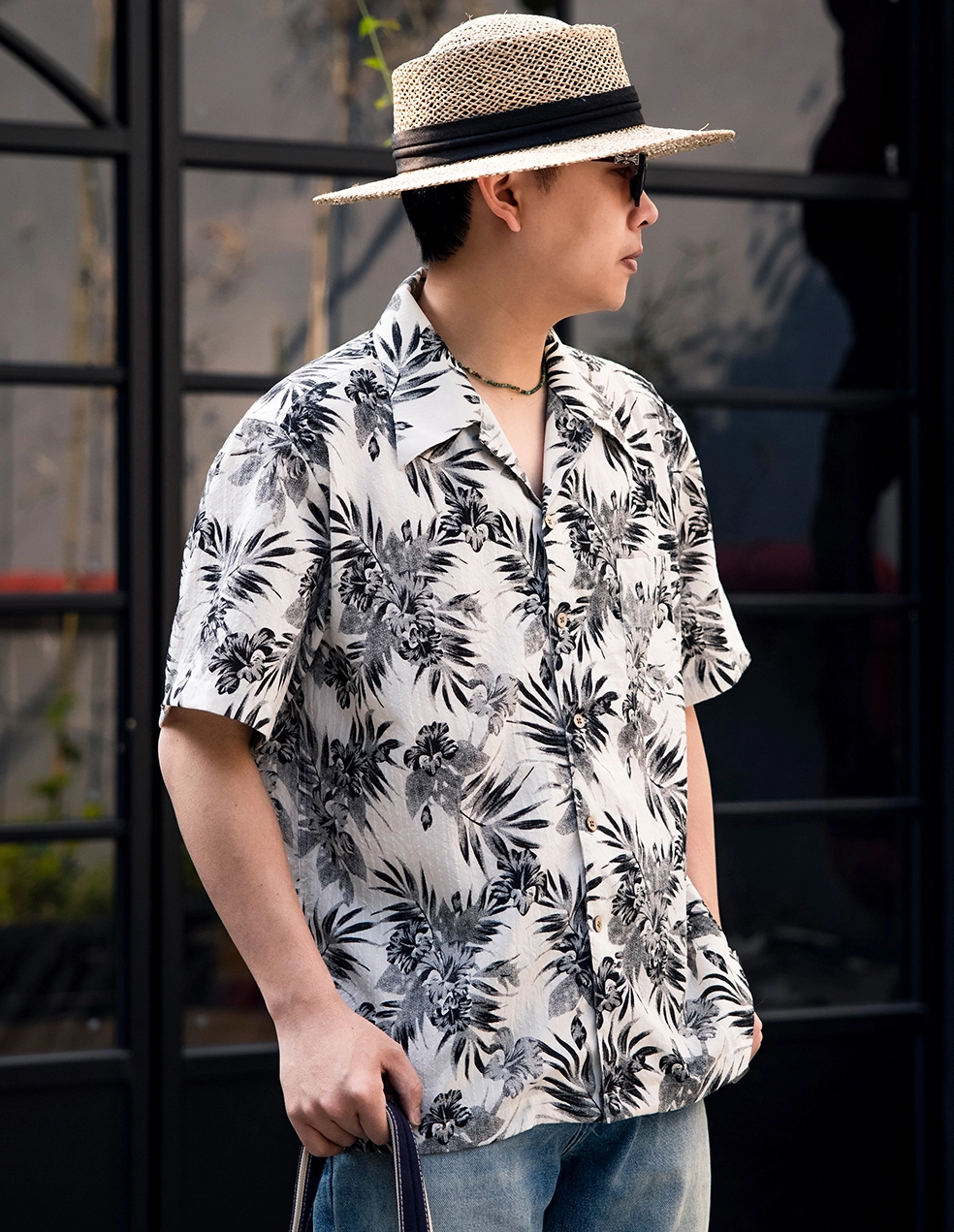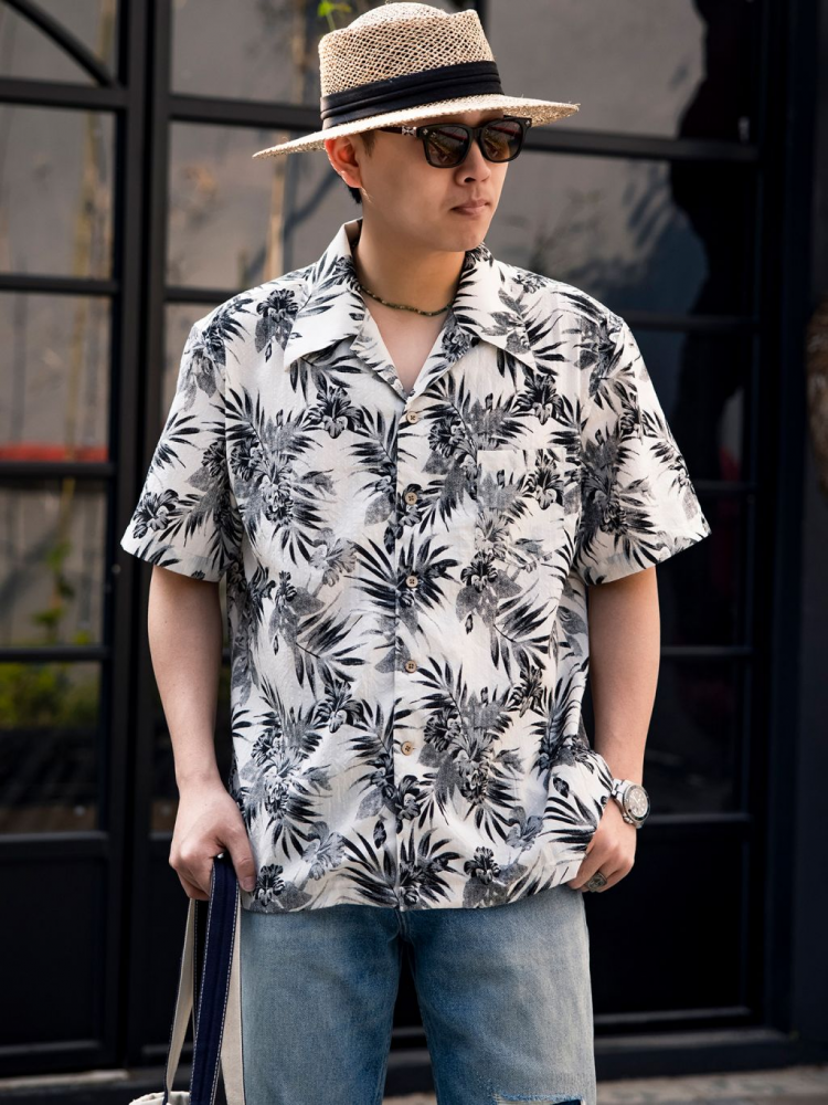 • 감각적인 플로럴 프린트와 시어서커 텍스처가 어우러져 여름 시즌에 최적화된 하와이안 셔츠입니다. 코튼 100% 원단을 사용해 통기성과 흡습성이 뛰어나 한여름에도 시원하고 쾌적한 착용감을 제공합니다.