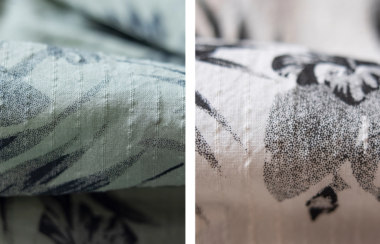 • 시어서커 특유의 입체감 있는 조직감으로 통기성이 우수하며 피부에 달라붙지 않아 쾌적함 유지