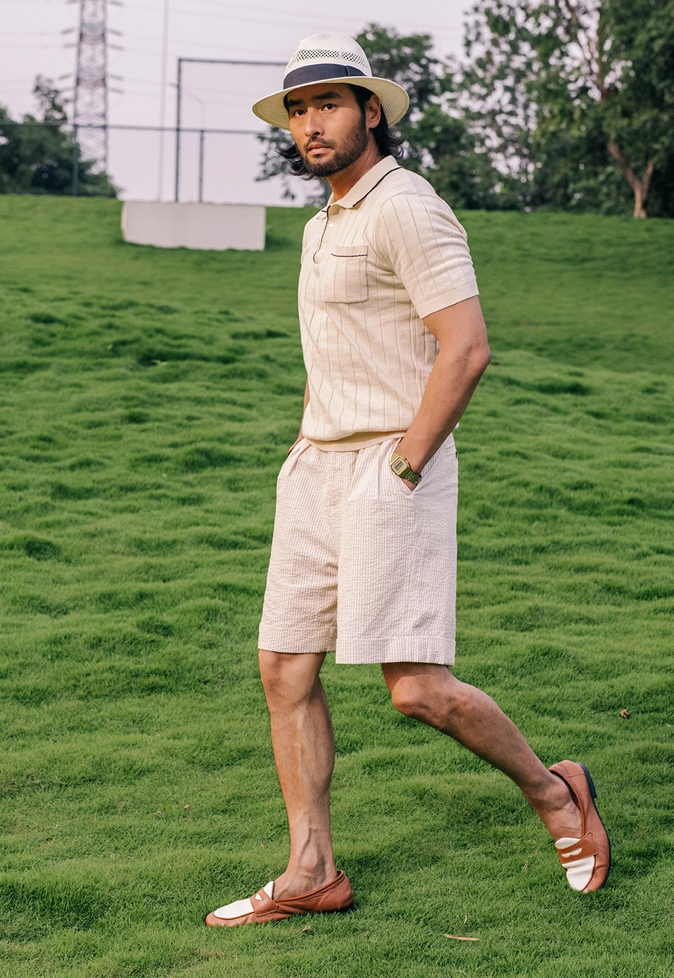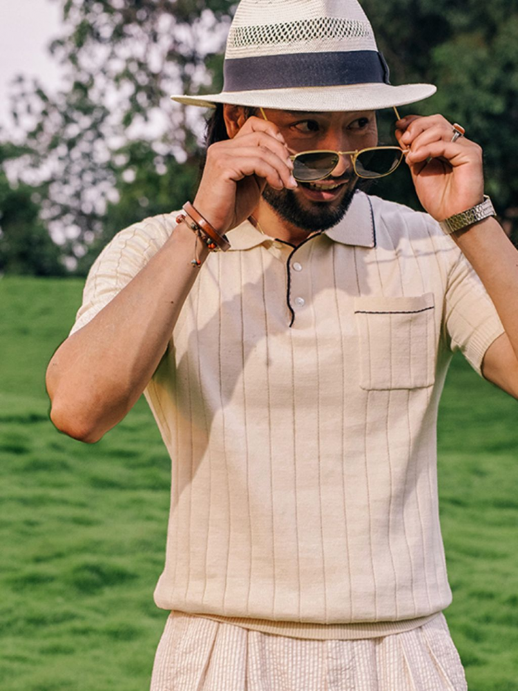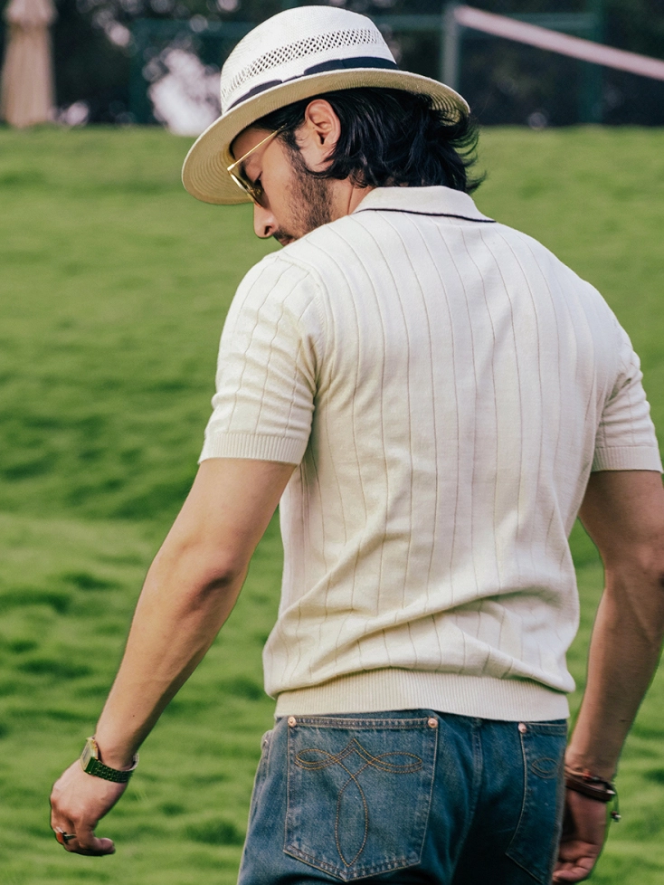 • 레트로 무드가 감도는 클래식 폴로 니트입니다. 은은한 스트라이프 조직과 배색 포인트가 세련된 멋을 더하며, 면 100% 소재로 통기성이 뛰어나고 피부에 부드럽게 닿아 한여름에도 쾌적하게 착용할 수 있습니다.