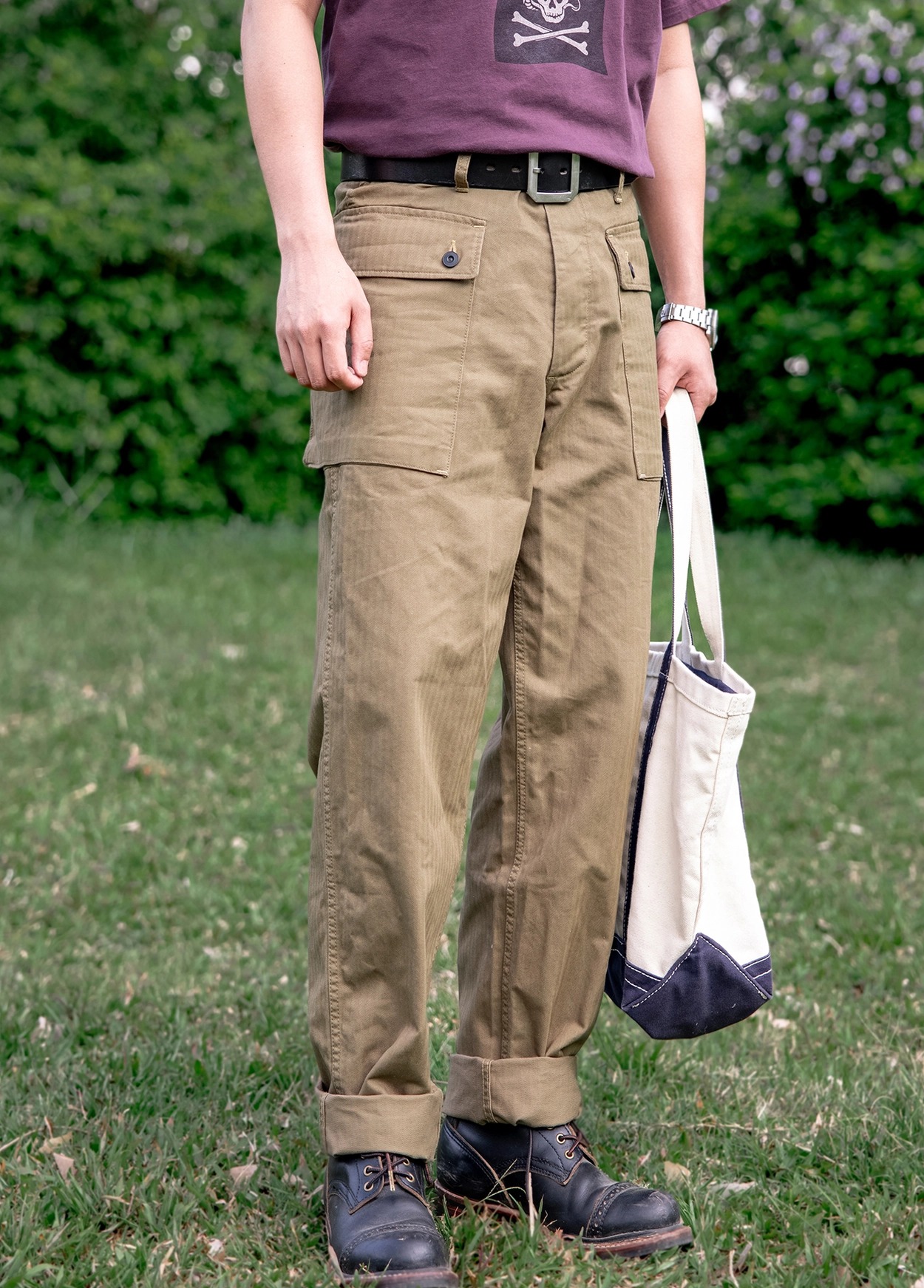 • 넉넉한 힙과 허벅지, 살짝 좁아지는 밑단의 전형적인 미군 P-44 테이퍼드 핏