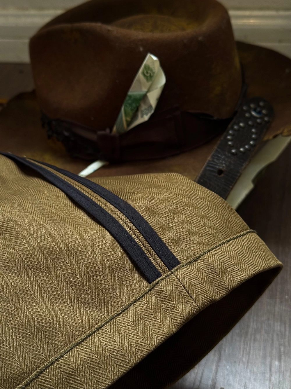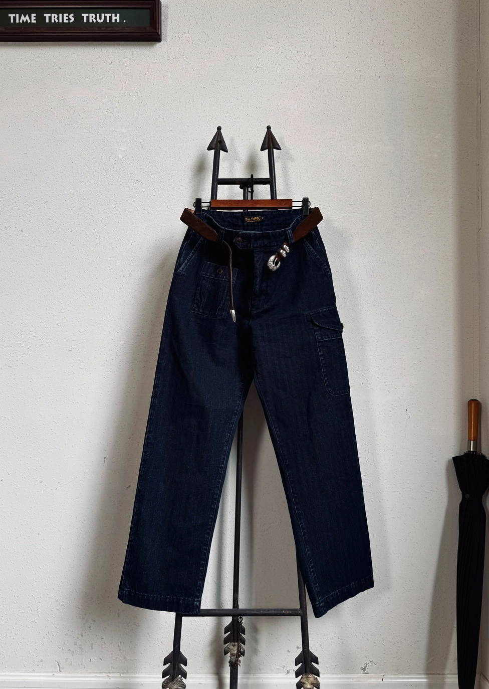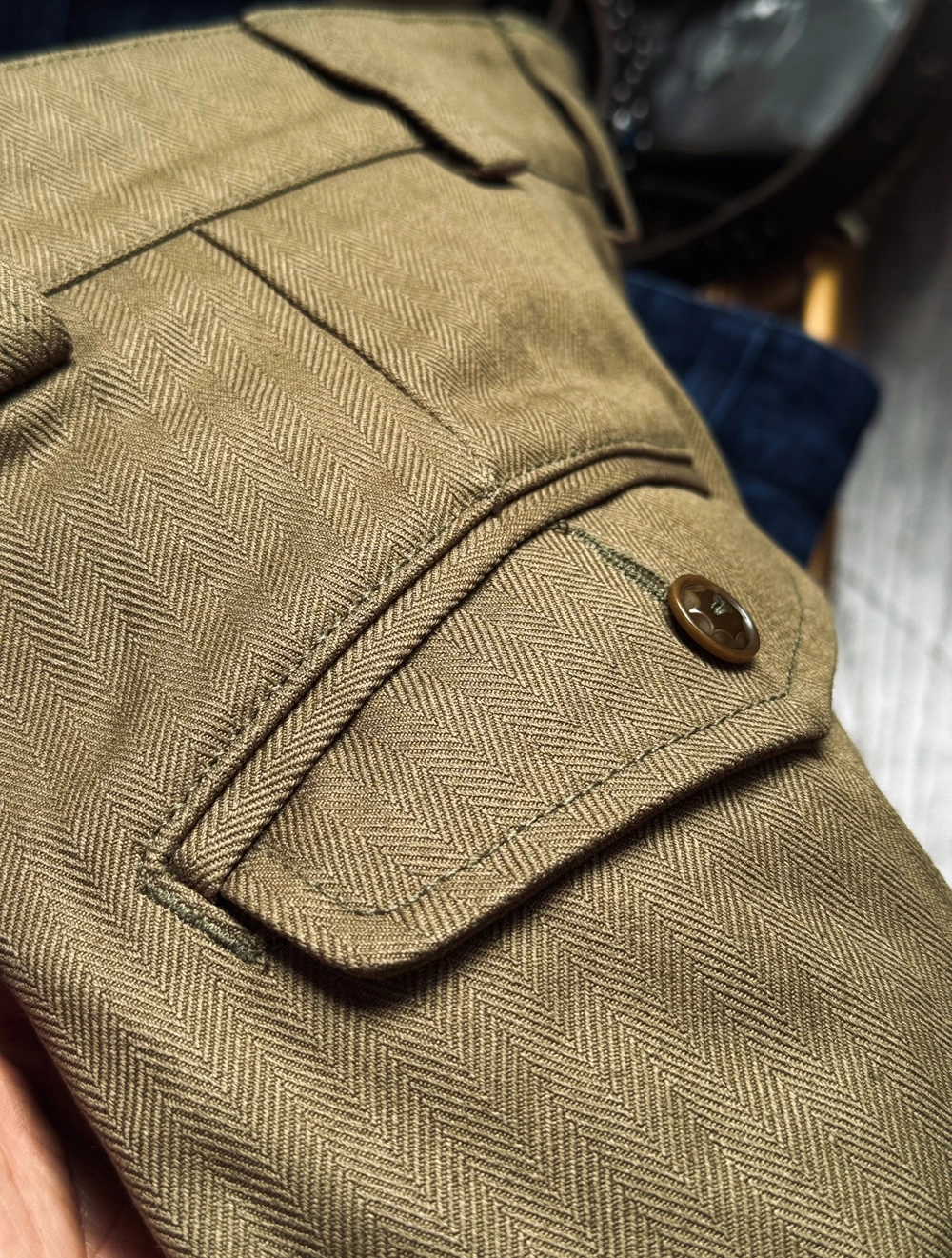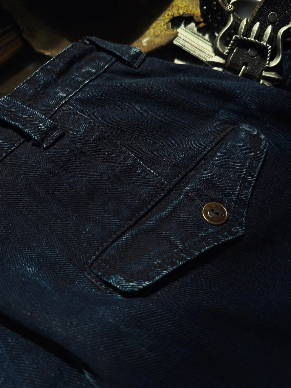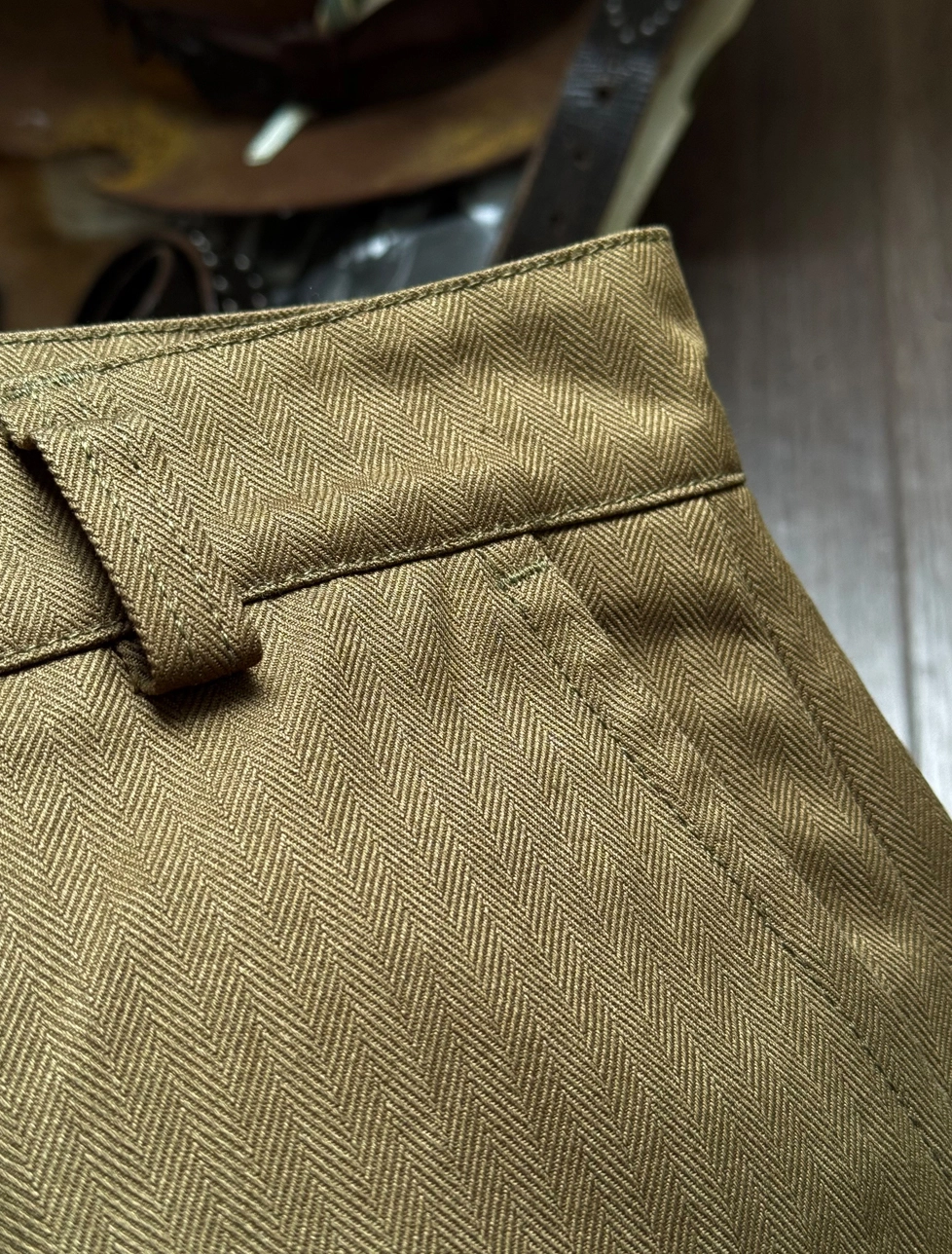 • 내구성이 뛰어난 헤링본 트윌 소재로 밀도 높은 조직감과 묵직한 워크웨어 무드 표현