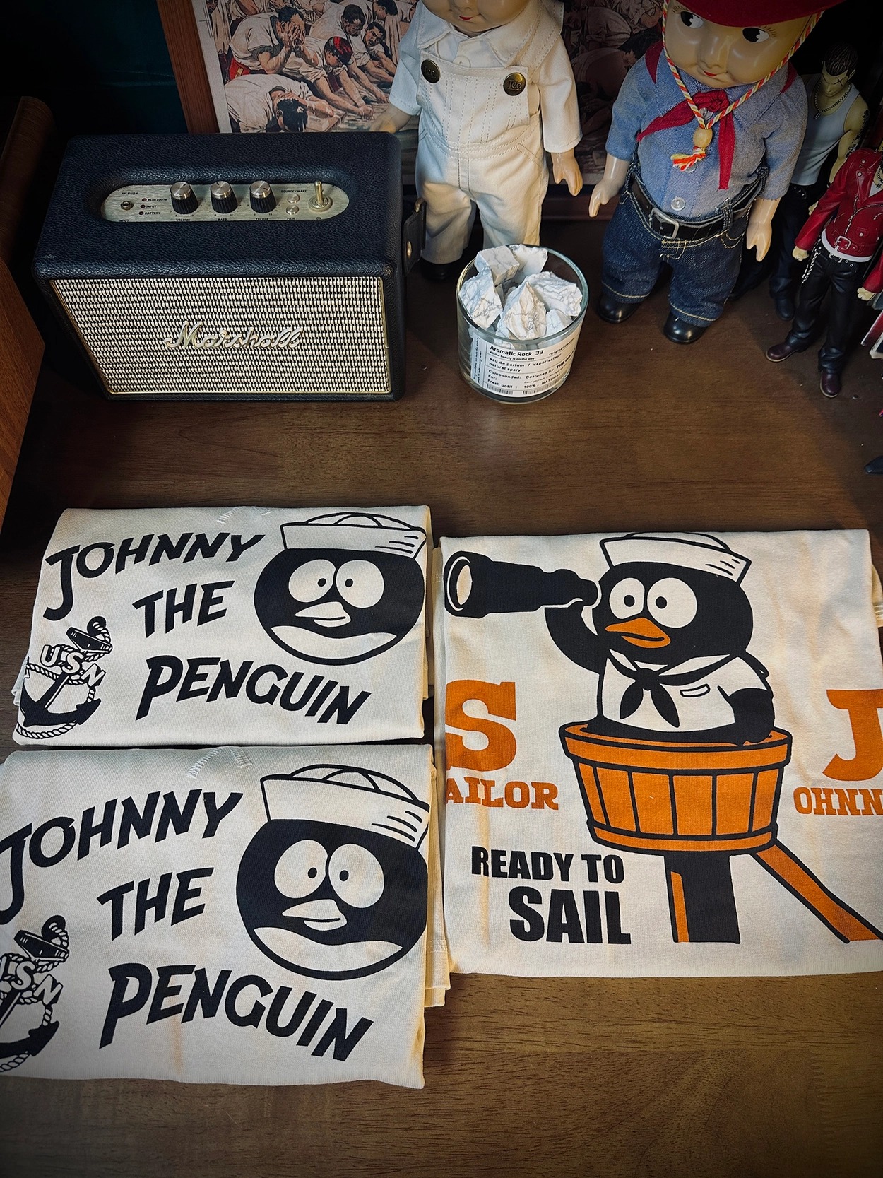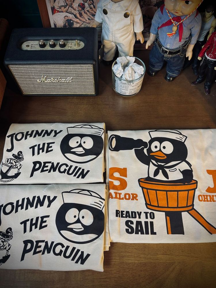 • 전면 프린트: "JOHNNY THE PENGUIN" 해군 스타일 그래픽