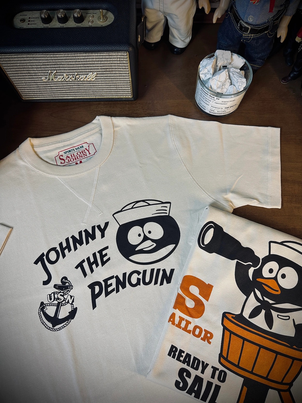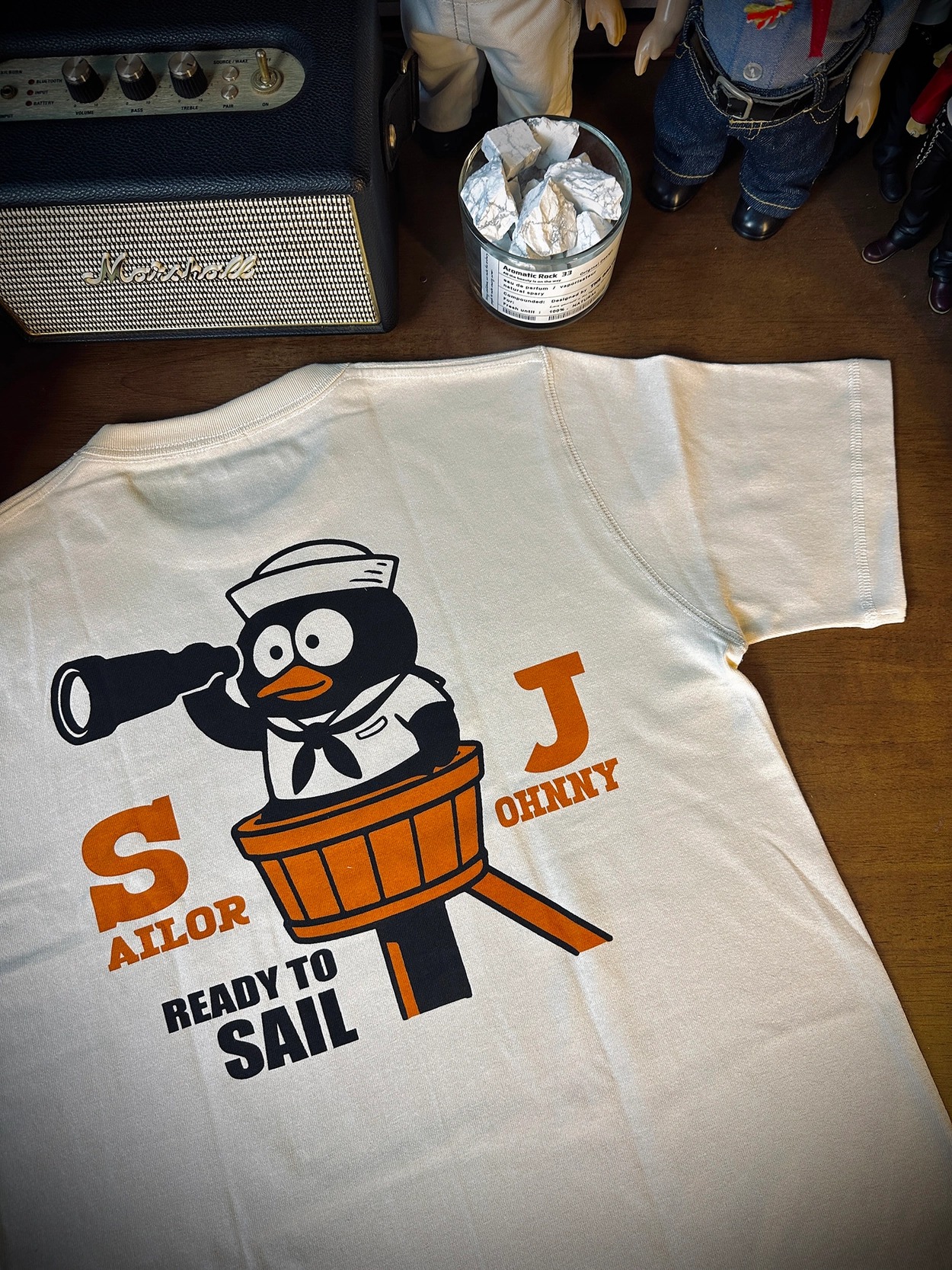 • 후면 프린트: 망원경을 든 조니 펭귄 캐릭터와 "READY TO SAIL" 문구