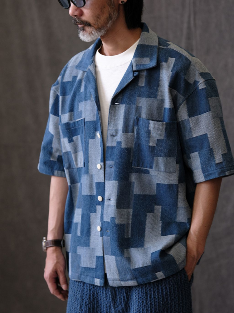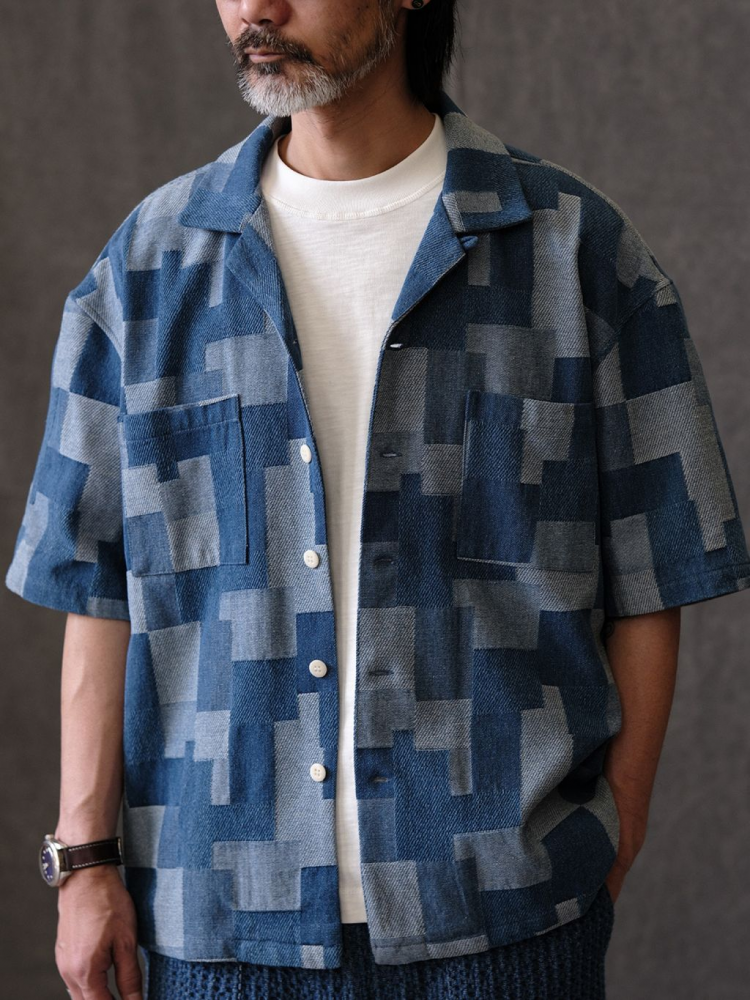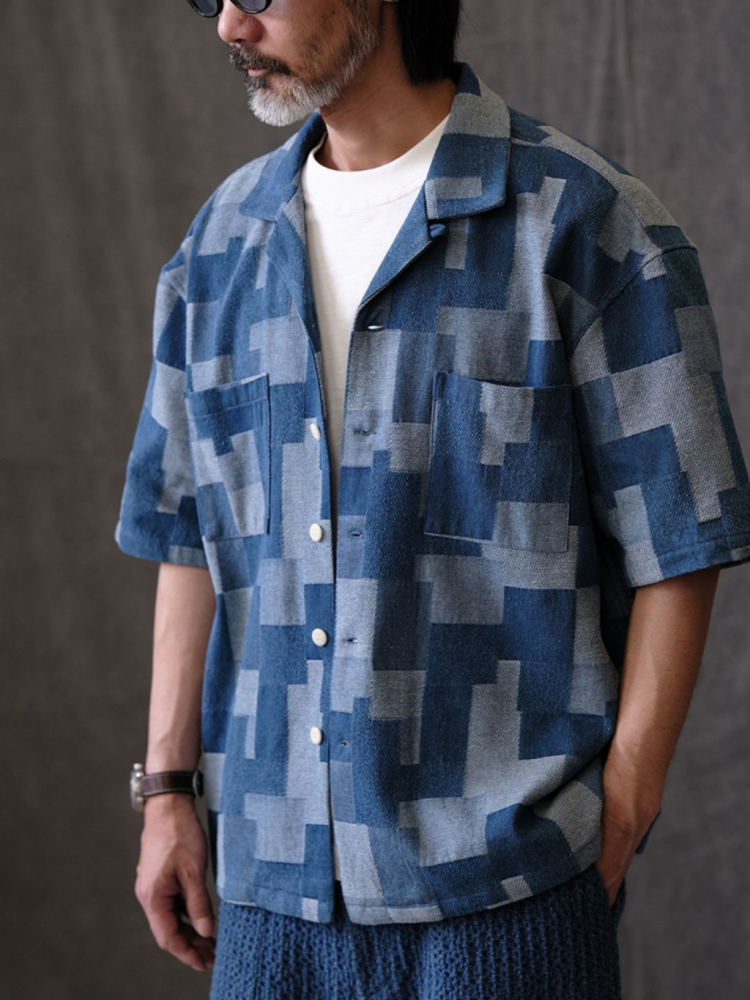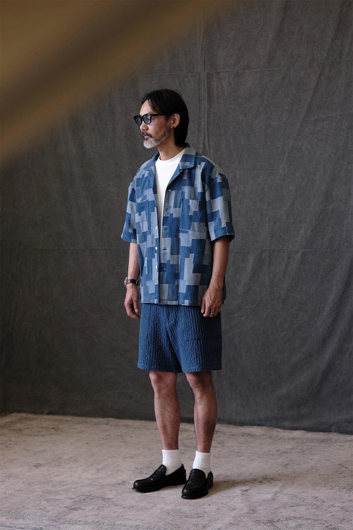 서로 다른 톤의 워싱 데님 조각들을 하나의 텍스타일처럼 엮어낸 독창적인 패치워크 디자인의 셔츠입니다. 일본 전통 데님 워싱 공정을 적용해 클래식 워크웨어의 견고함을 유지하면서도 현대적인 캐주얼 무드로 재해석하였습니다.