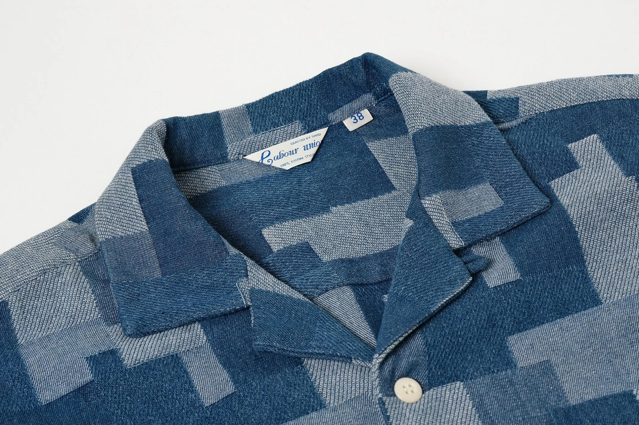 [레이버유니온] LU947 패치워크 데님 워싱 반팔 셔츠