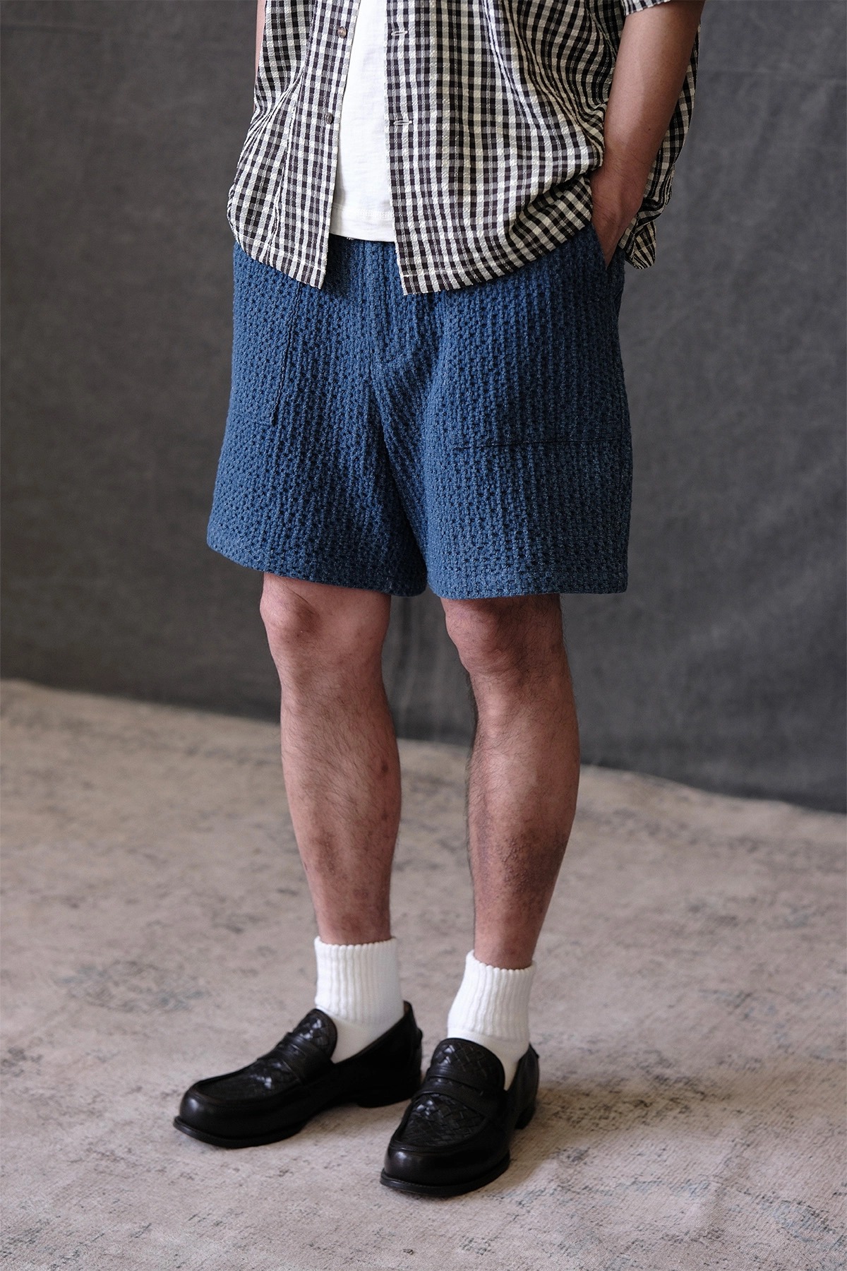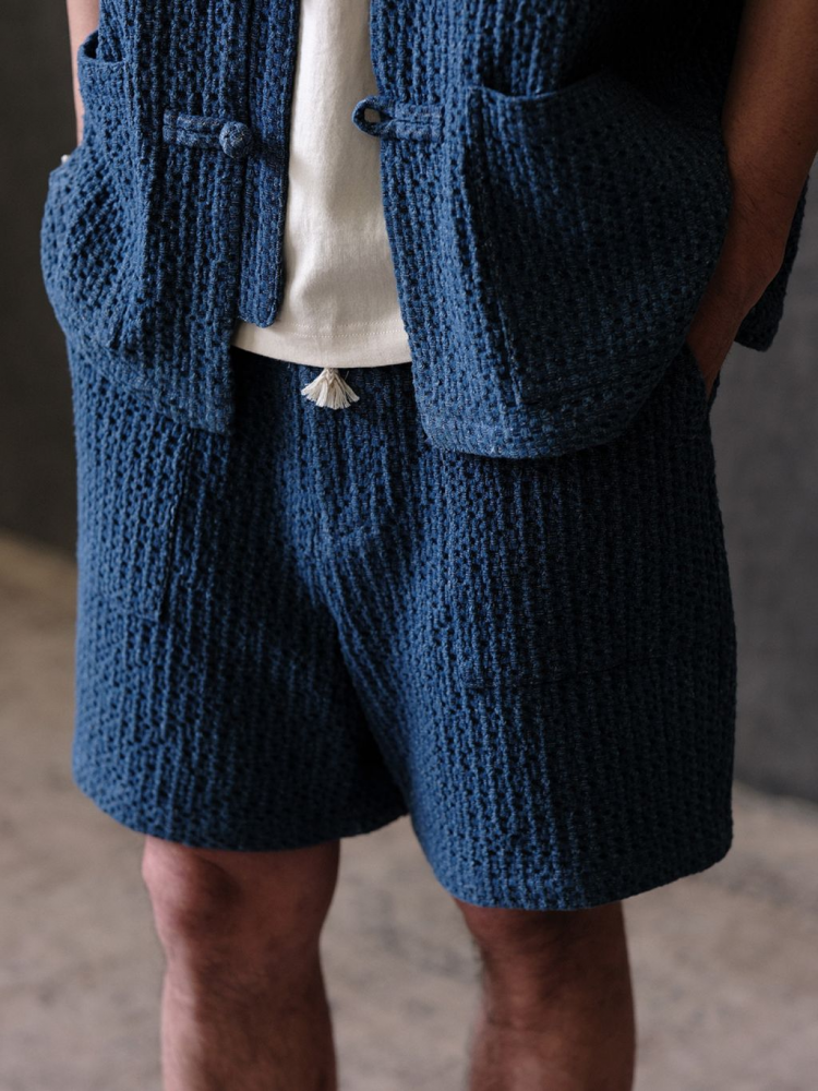 전통 사시코 직조에서 영감을 받은 입체적인 텍스처와 깊이 있는 워싱이 돋보이는 데님 쇼츠입니다. 허리 밴딩과 코튼 코어 스트링으로 편안한 착용감을 제공하며, 여유로운 핏으로 여름철 데일리웨어로 적합합니다. 같은 소재의 셔츠와 셋업으로 연출하면 전통과 현대가 조화된 독창적인 스타일을 완성할 수 있습니다.