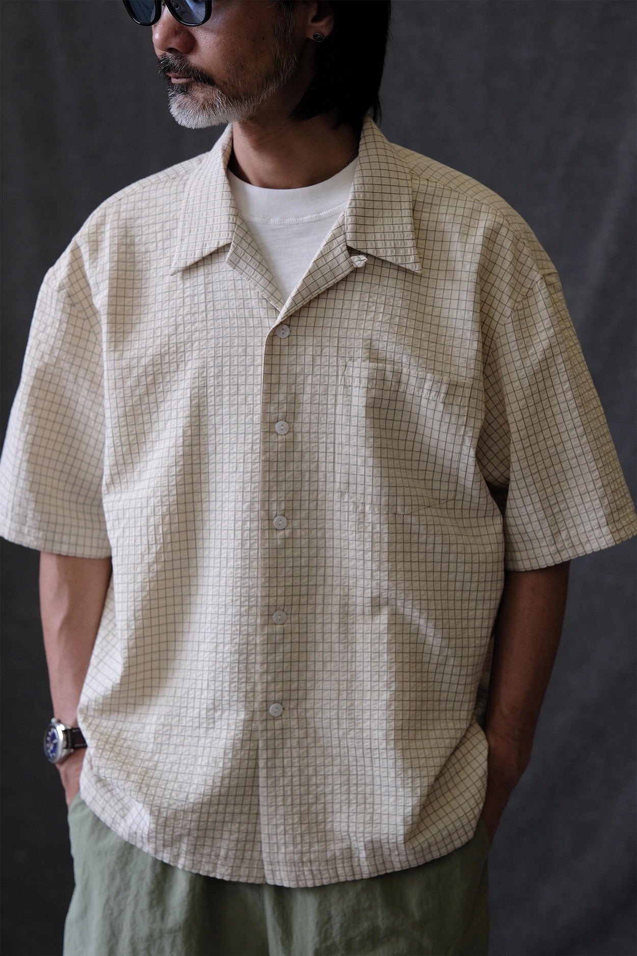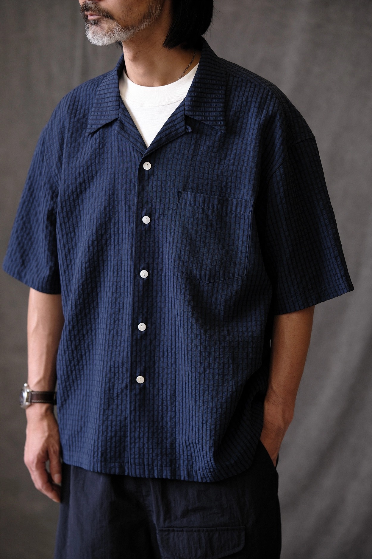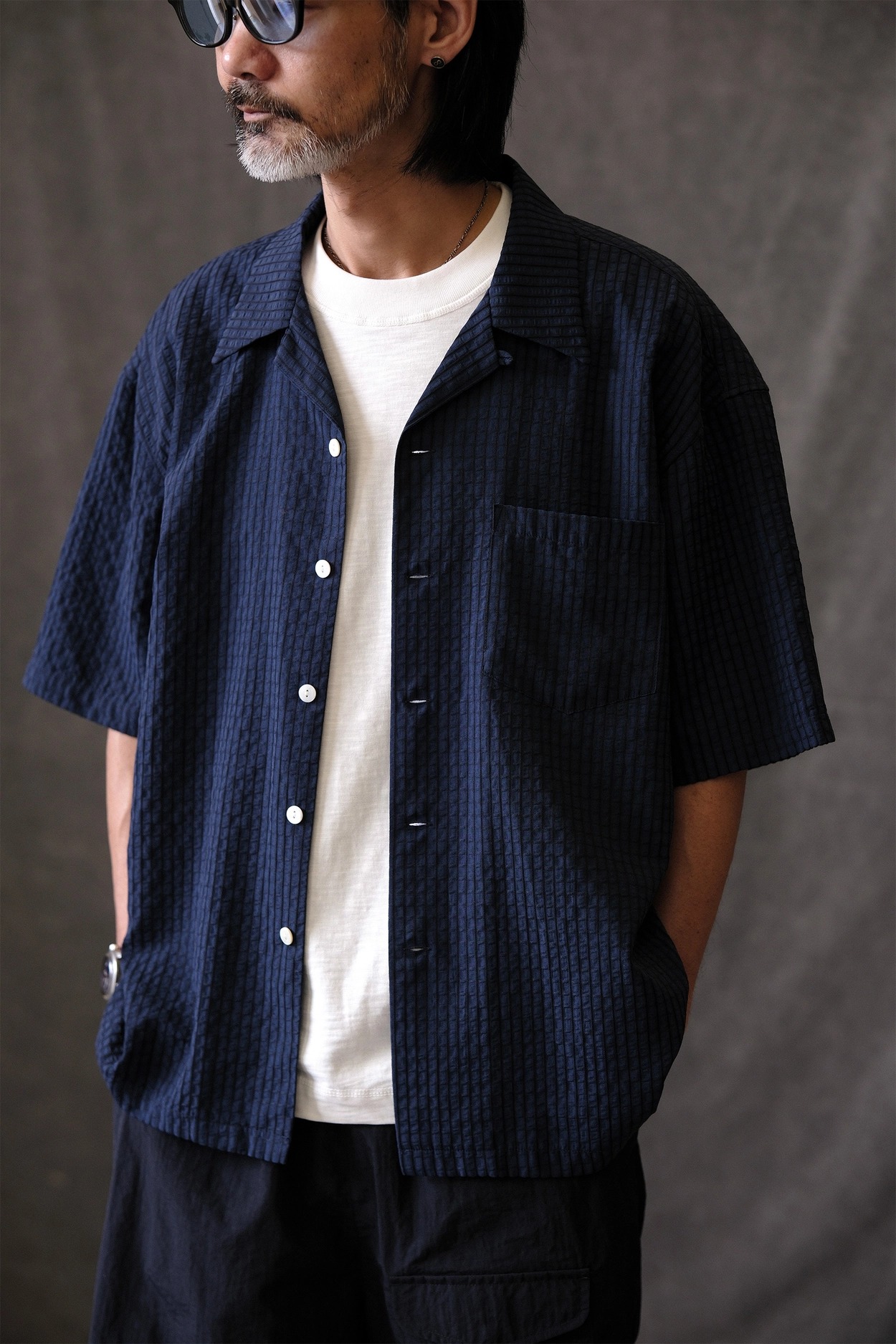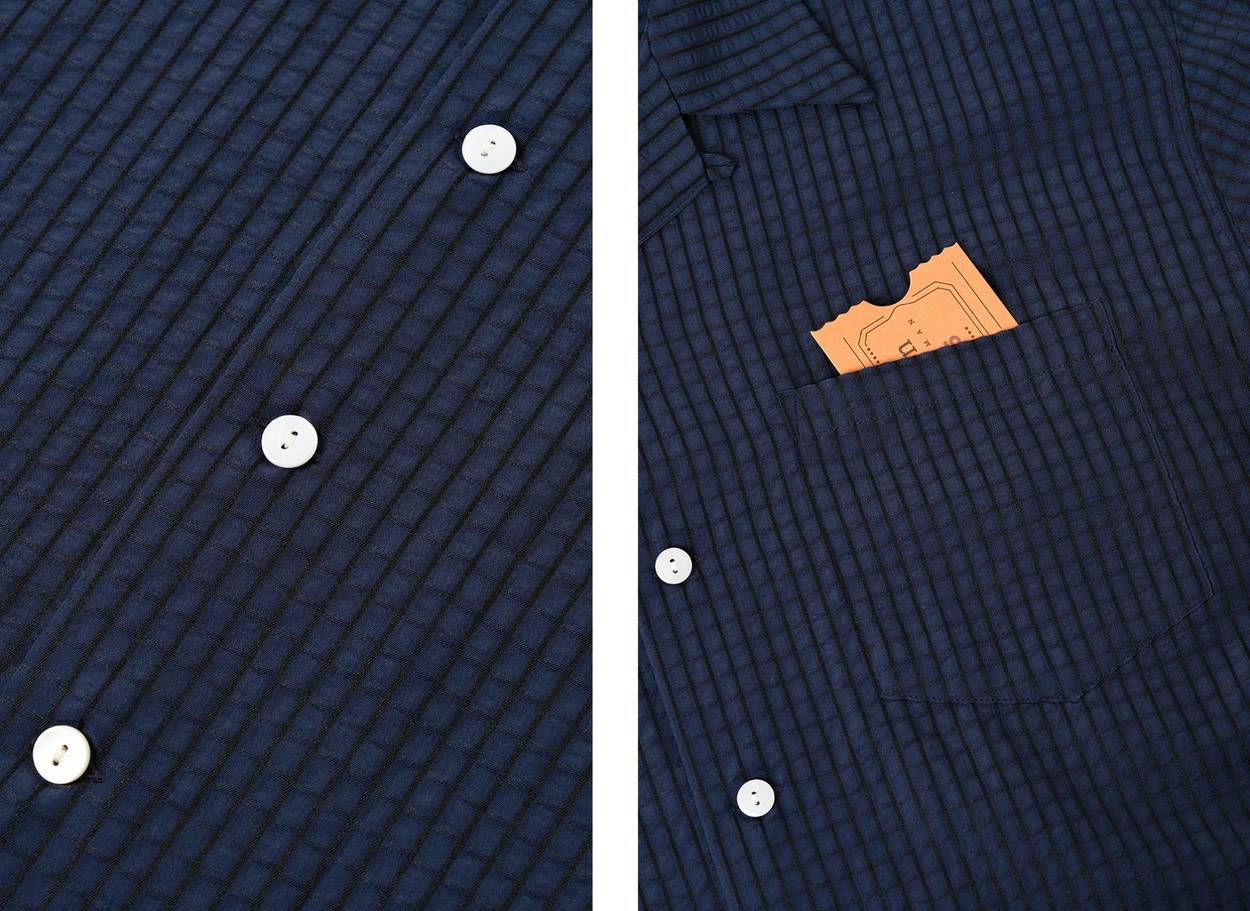 • 클래식한 하와이안 셔츠 실루엣에 시어서커 특유의 청량함을 더한 셔츠입니다. 가볍고 뛰어난 통기성을 자랑해 여름철 데일리 아이템으로 제격이며, 은은한 격자 텍스처가 세련된 무드를 완성합니다.
