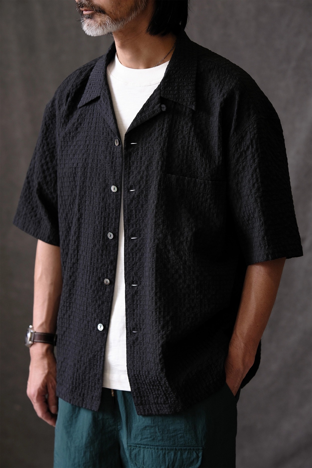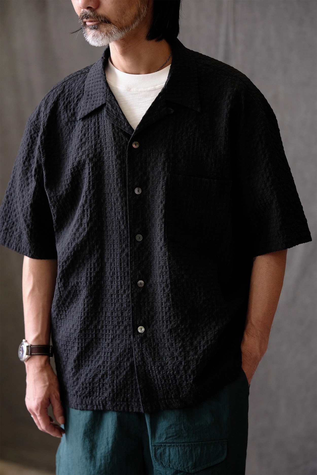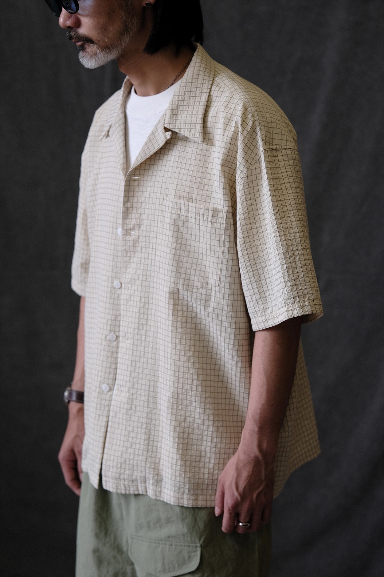 • 클래식한 하와이안 셔츠 실루엣에 시어서커 특유의 청량함을 더한 셔츠입니다. 가볍고 뛰어난 통기성을 자랑해 여름철 데일리 아이템으로 제격이며, 은은한 격자 텍스처가 세련된 무드를 완성합니다.