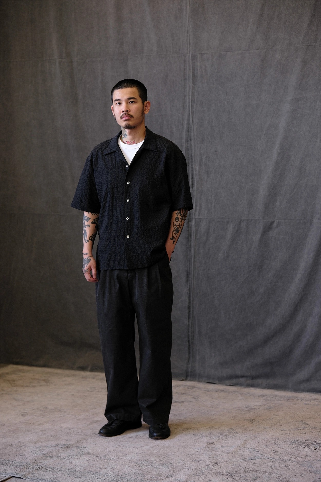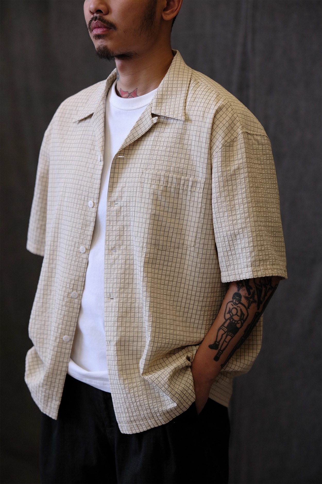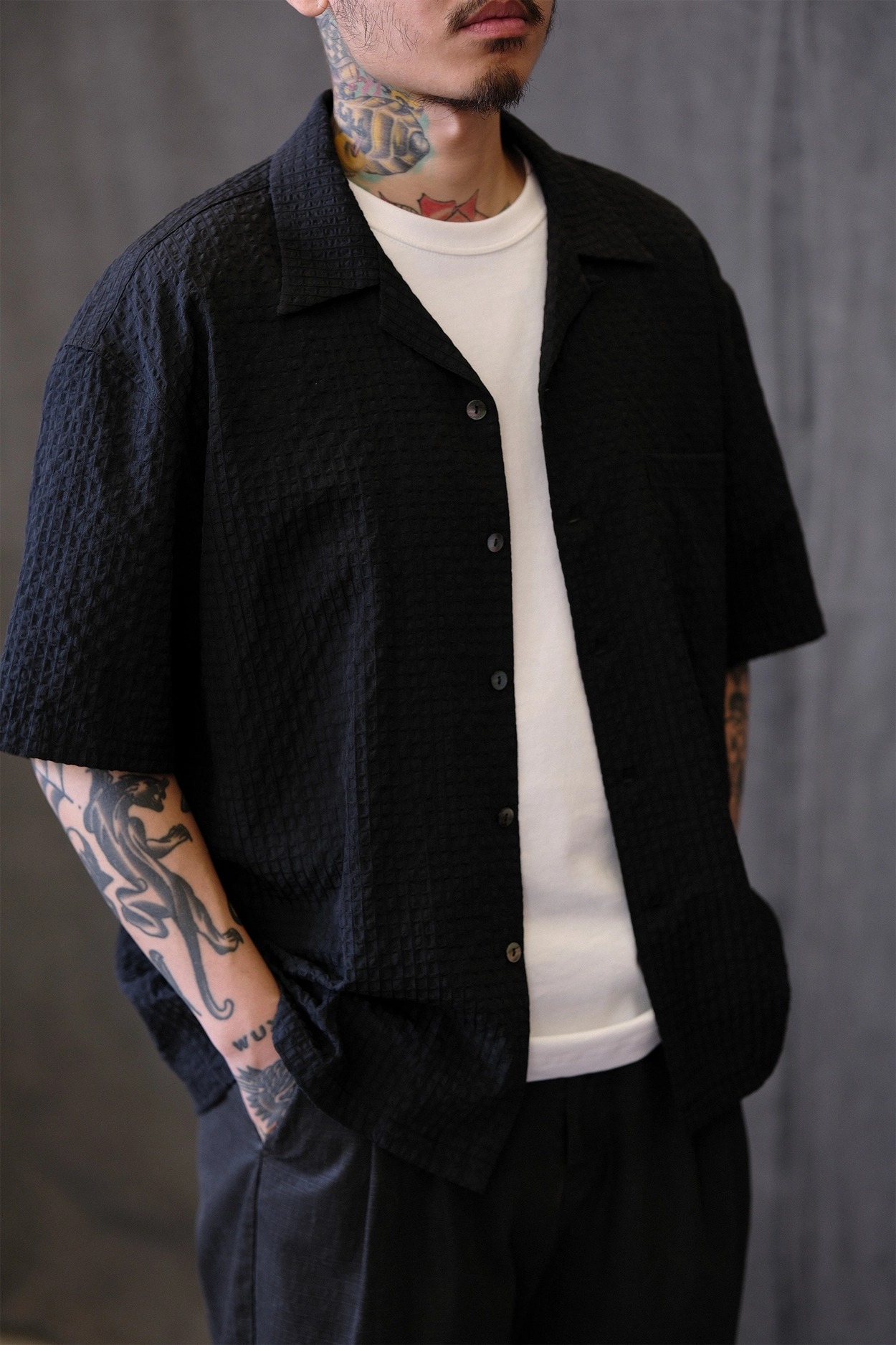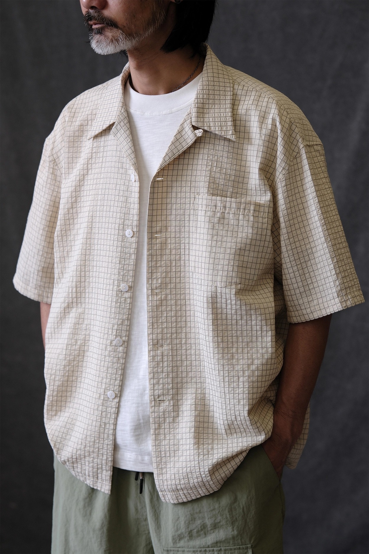 • 클래식한 하와이안 셔츠 실루엣에 시어서커 특유의 청량함을 더한 셔츠입니다. 가볍고 뛰어난 통기성을 자랑해 여름철 데일리 아이템으로 제격이며, 은은한 격자 텍스처가 세련된 무드를 완성합니다.