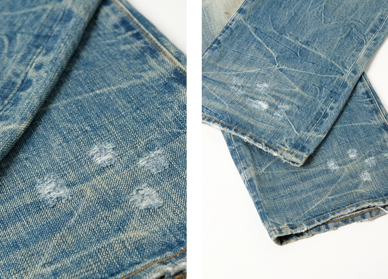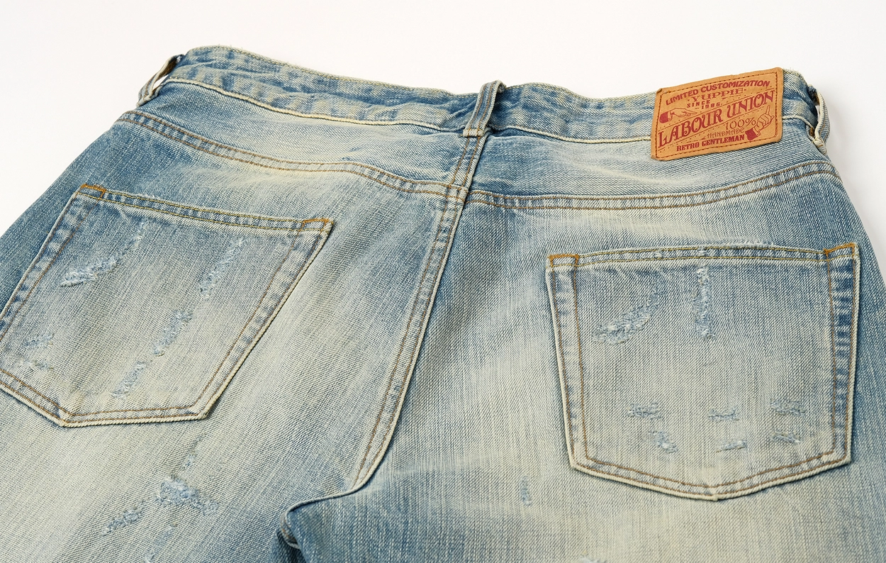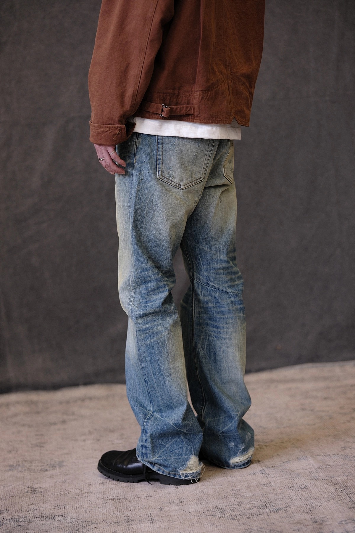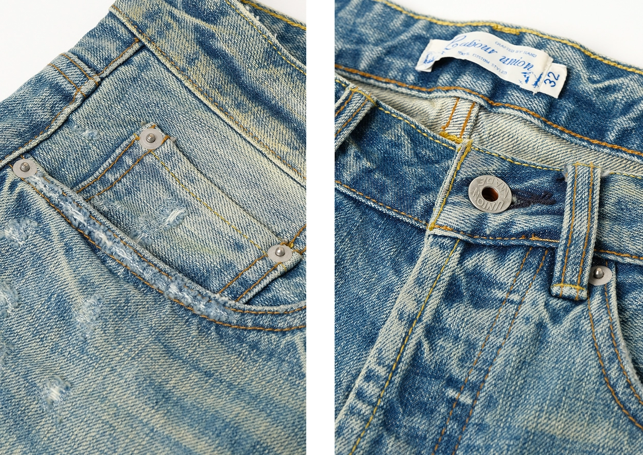• 핸드 디스트레스, 브러쉬 워싱, 밑단 헤짐 디테일