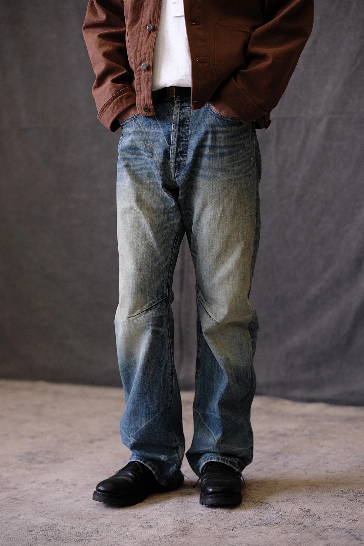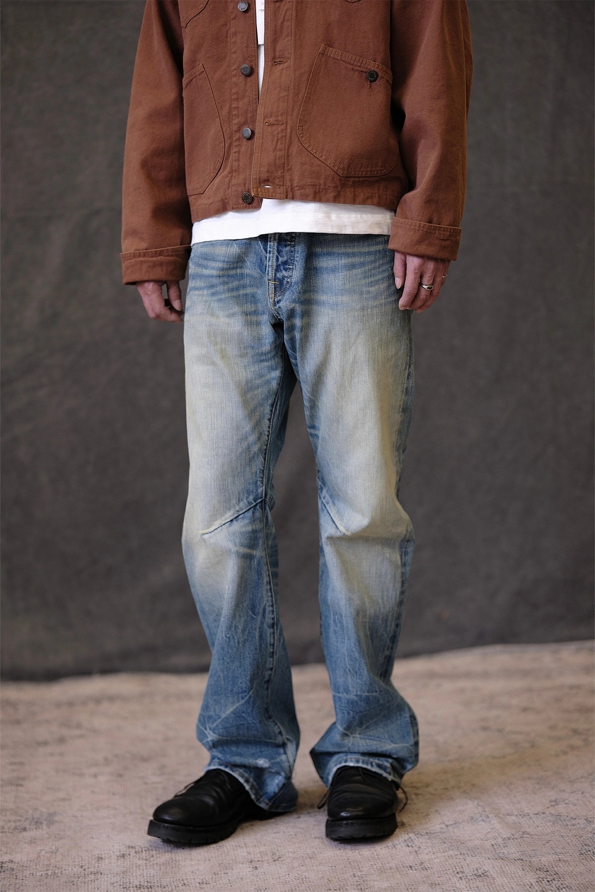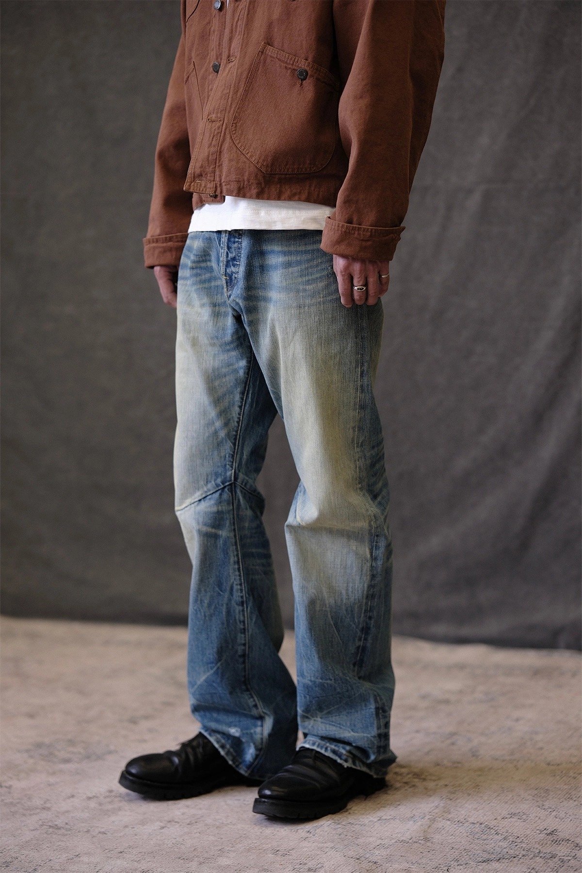 • 핸드 디스트레스, 브러쉬 워싱, 밑단 헤짐 디테일