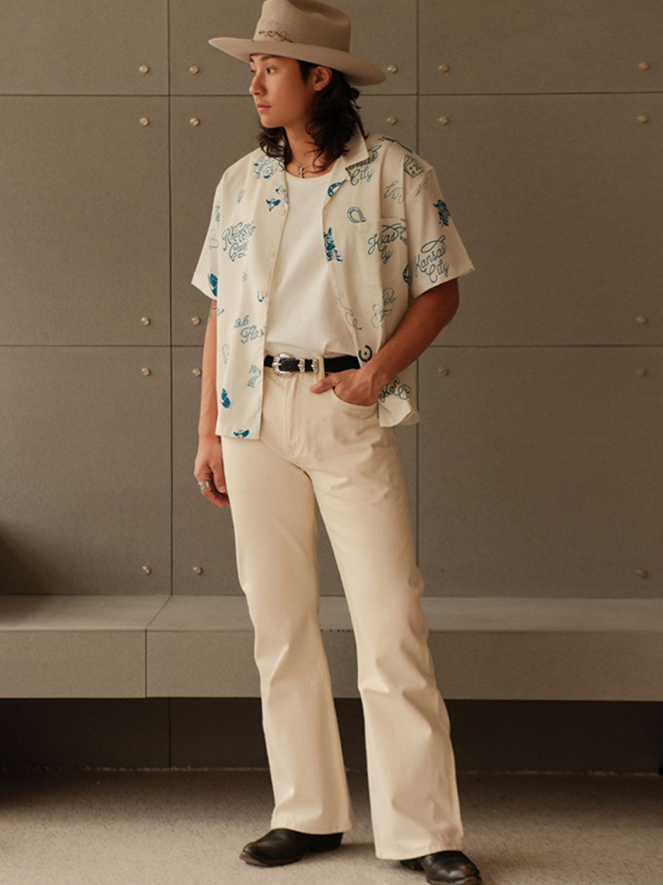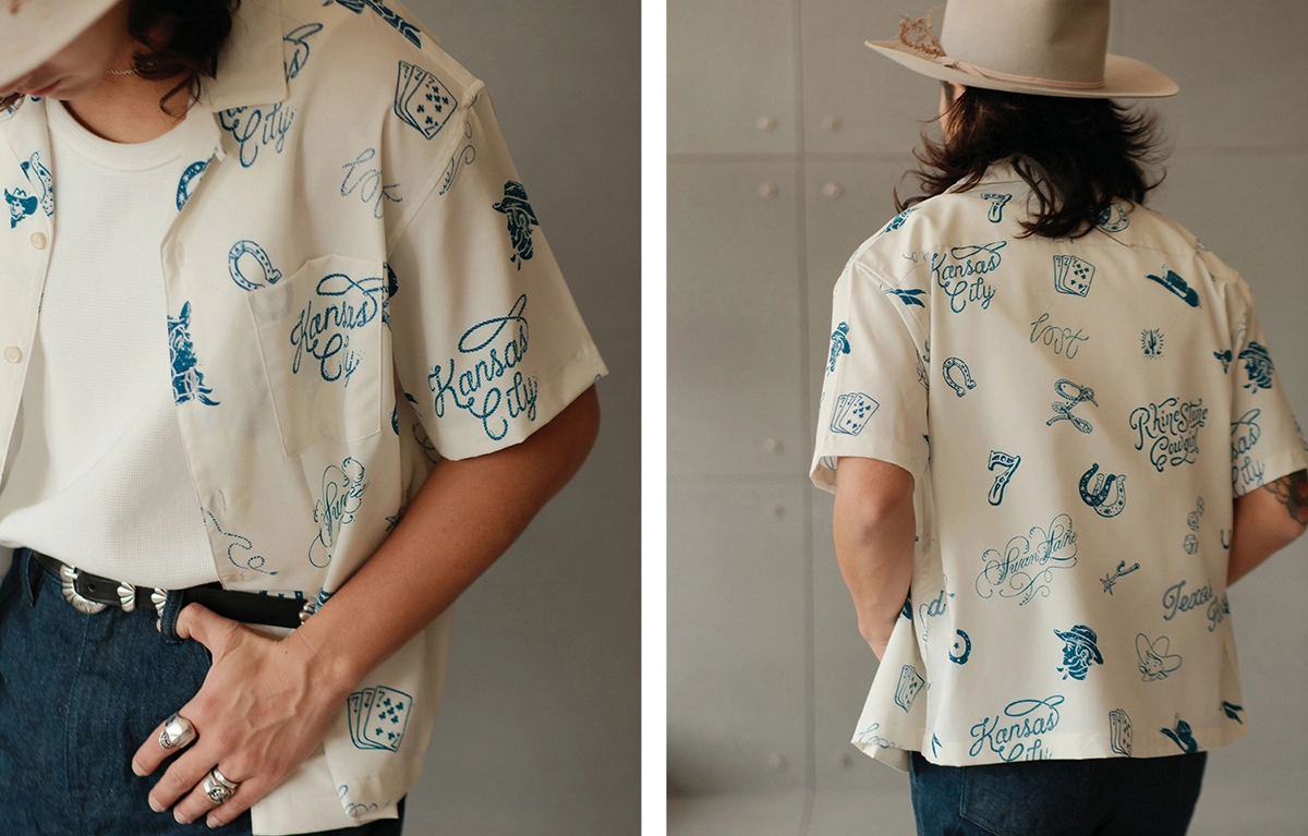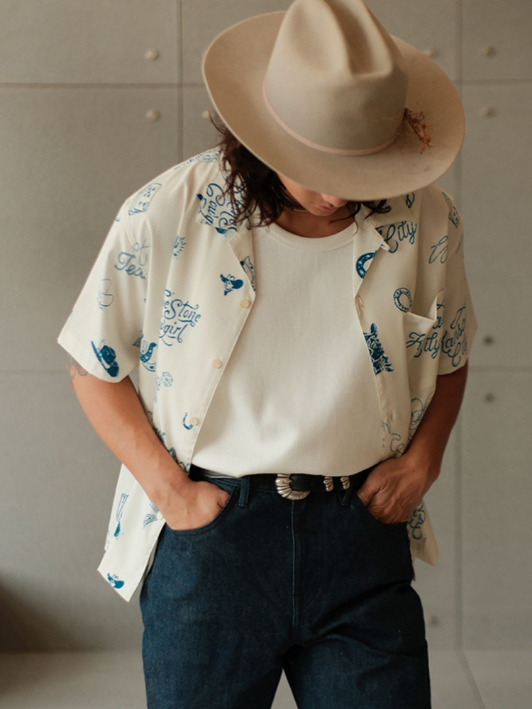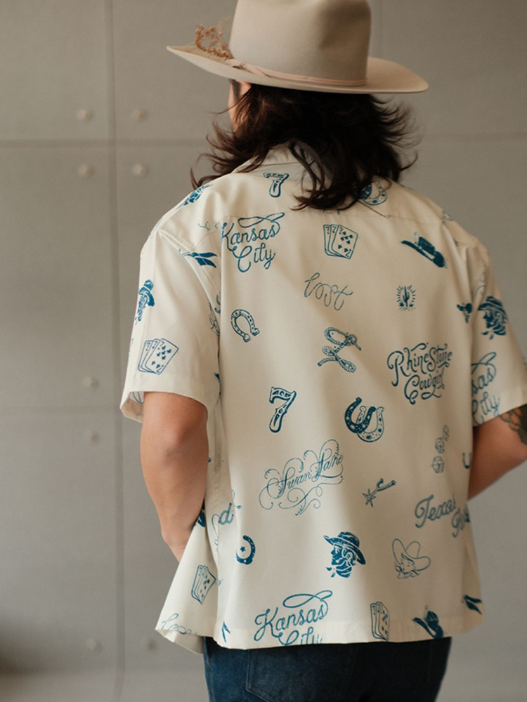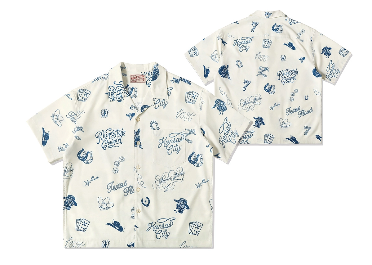 무더운 날씨에도 쾌적한 착용감을 제공하는 120g 경량 폴리 원단을 사용한 여름 셔츠입니다. 클래식한 웨스턴 무드를 기반으로, 위트 있는 레터링과 손그림 느낌의 일러스트 프린트가 감각적으로 배치되어 캐주얼하면서도 독특한 분위기를 연출합니다.