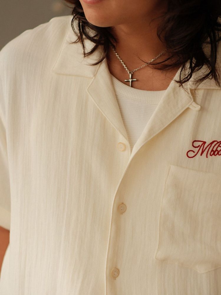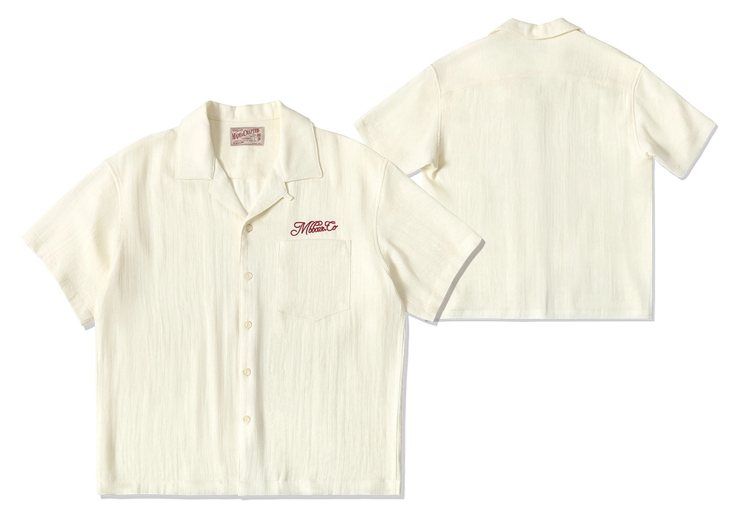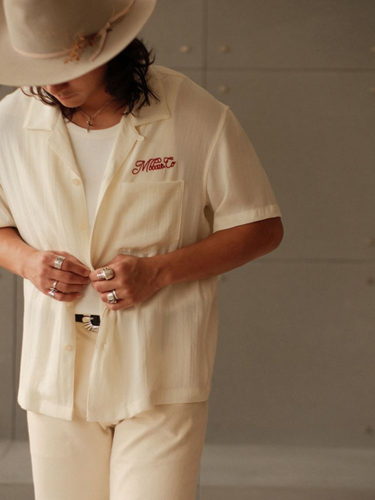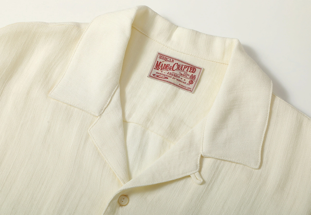[엠비비카] 160g 린넨 쿠바넥 베이지 반팔 셔츠