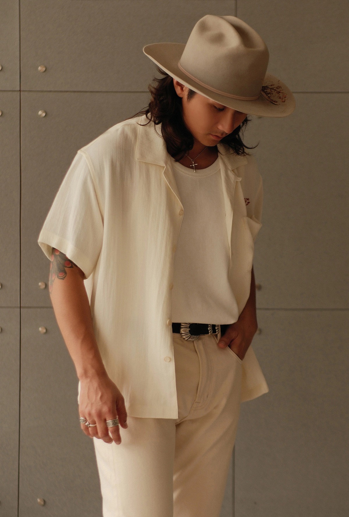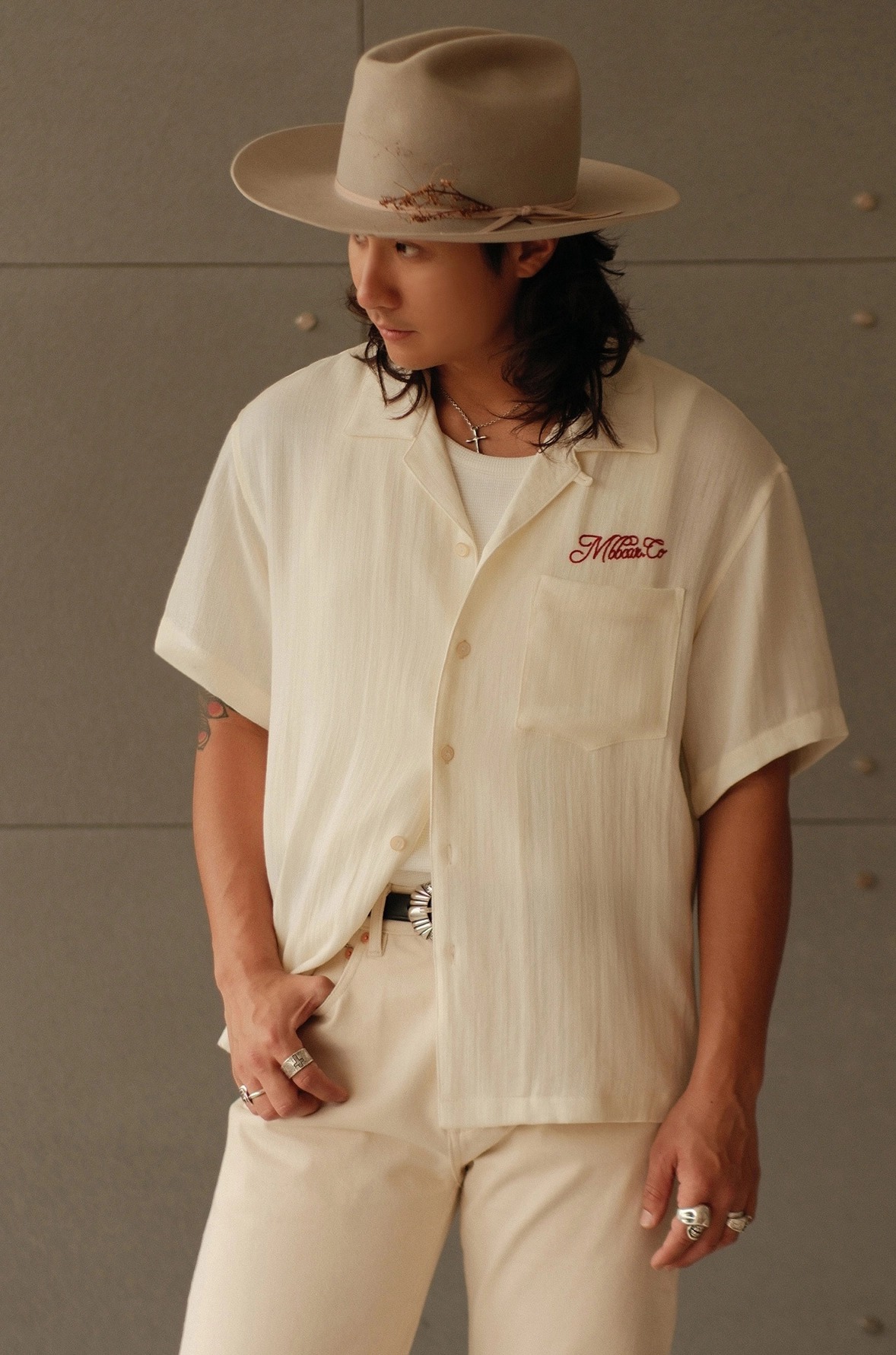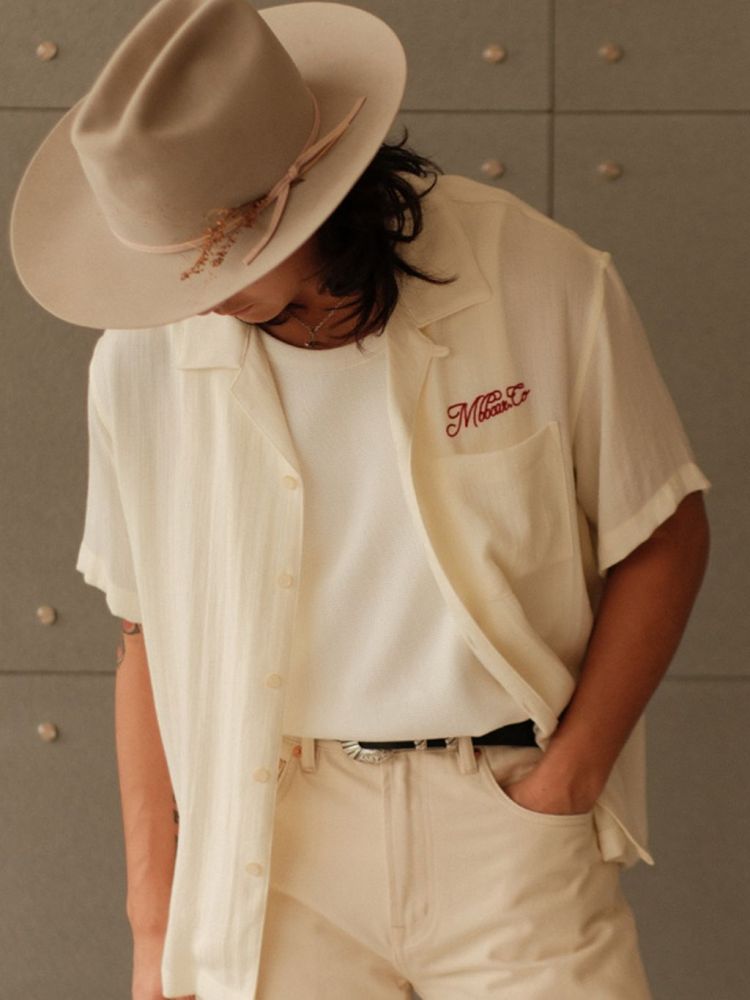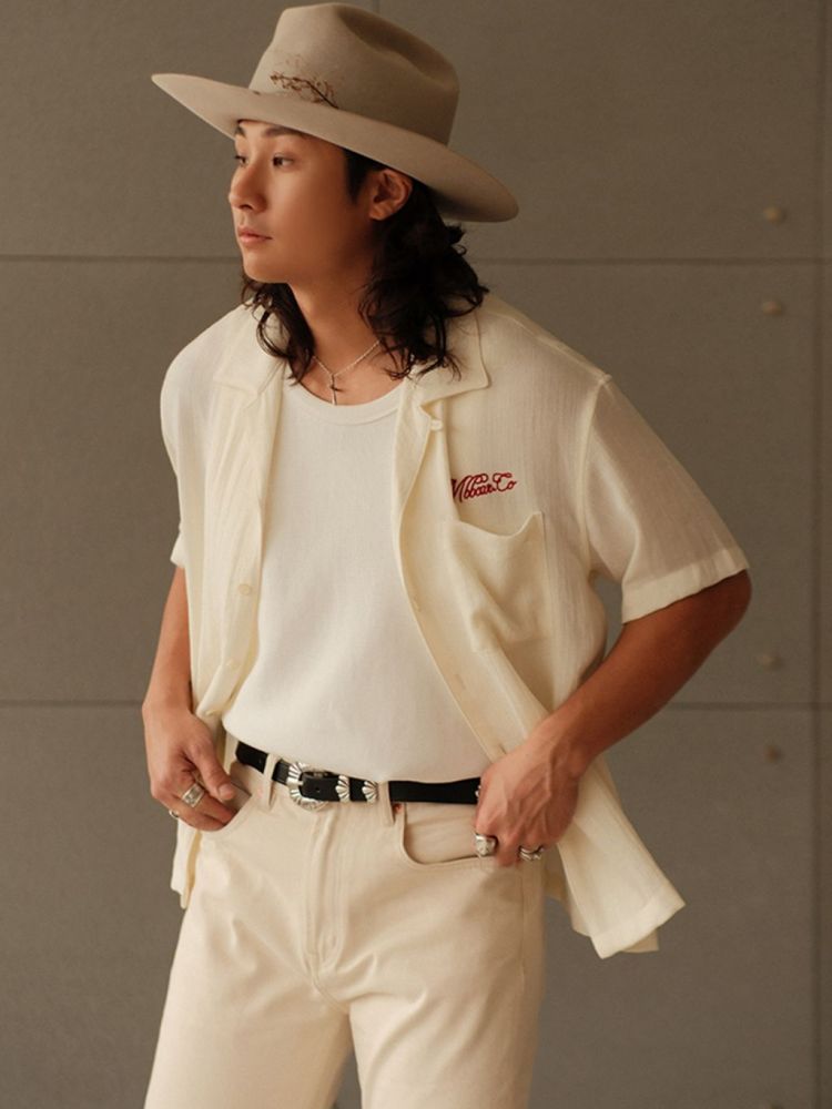 [엠비비카] 160g 린넨 쿠바넥 베이지 반팔 셔츠