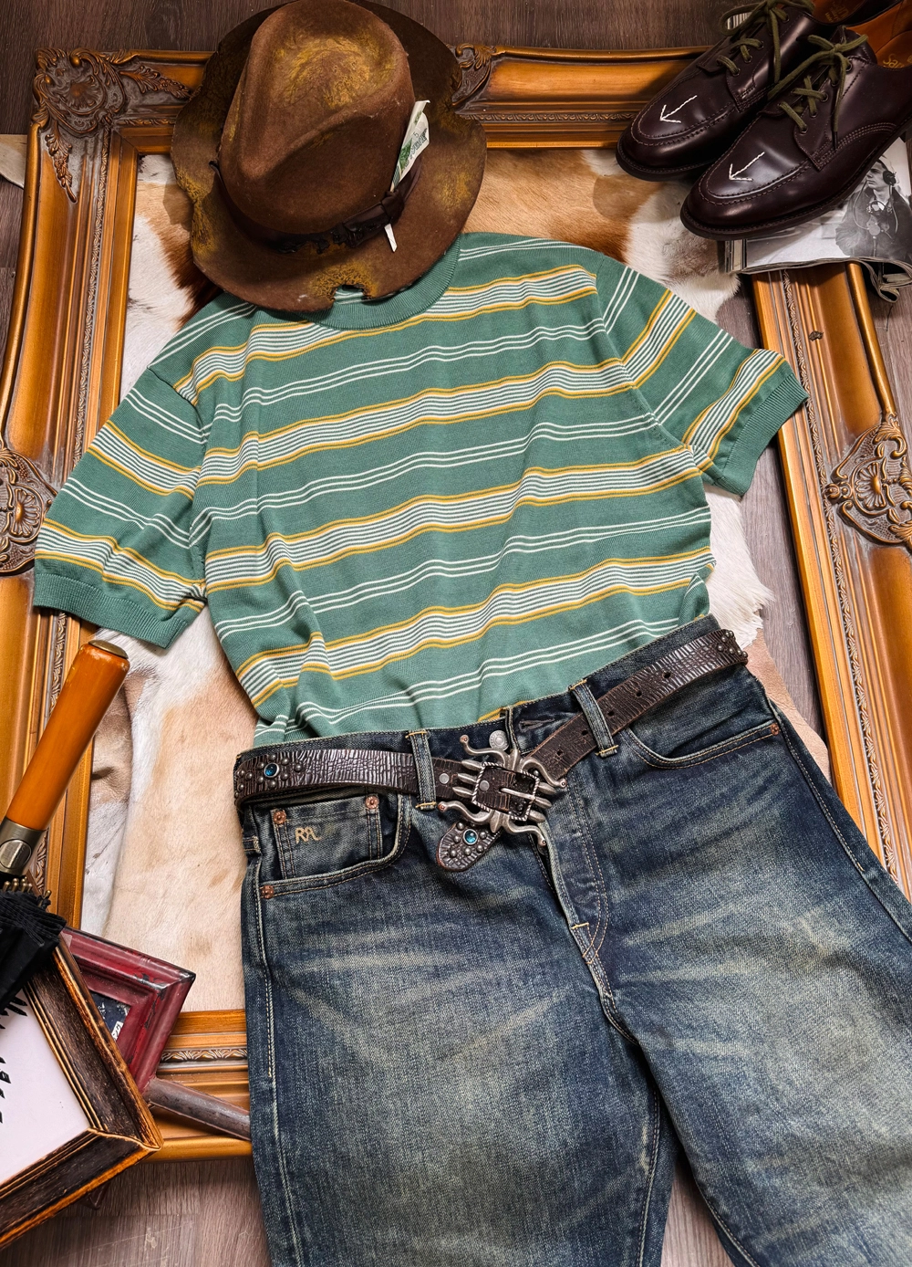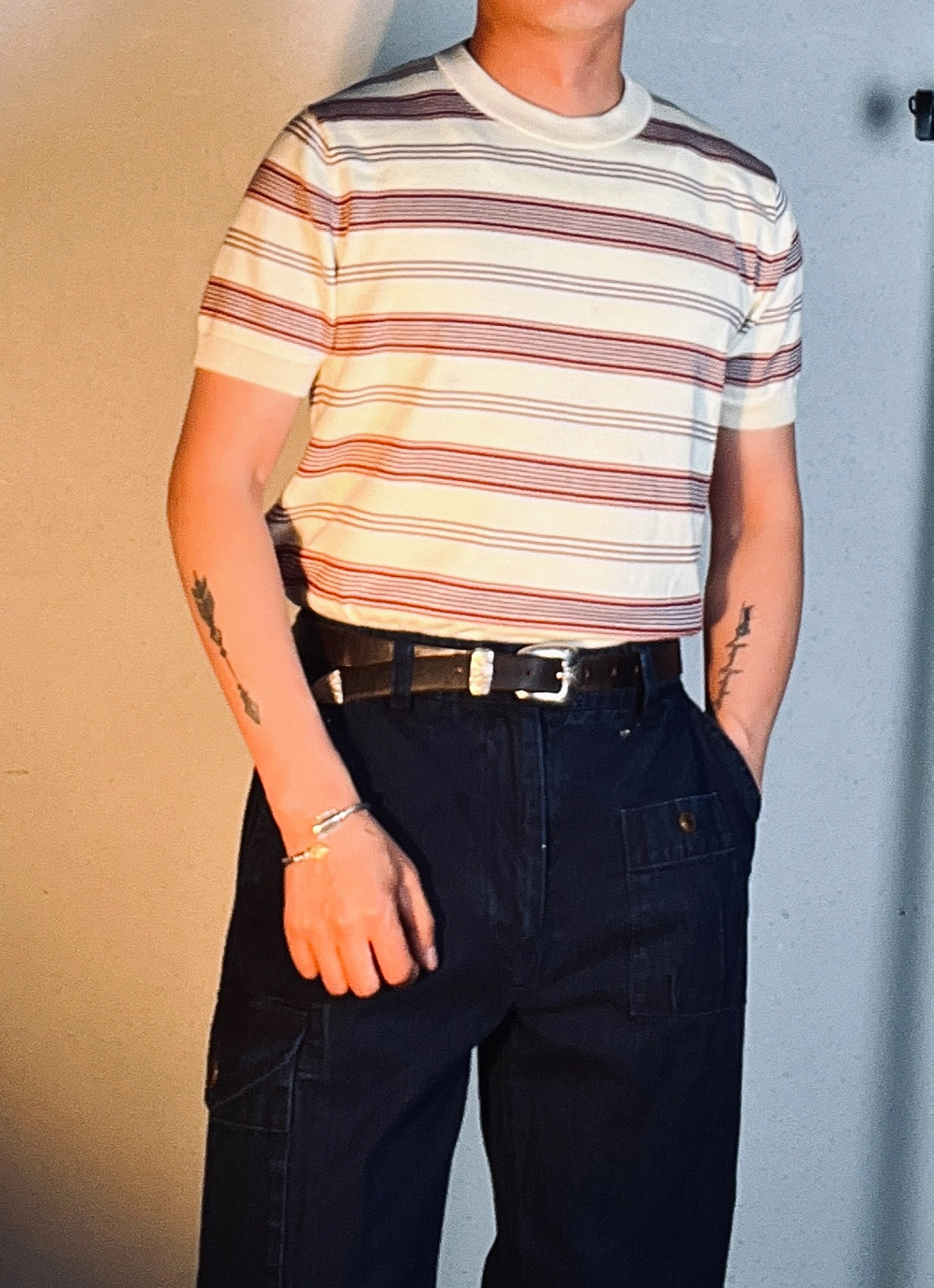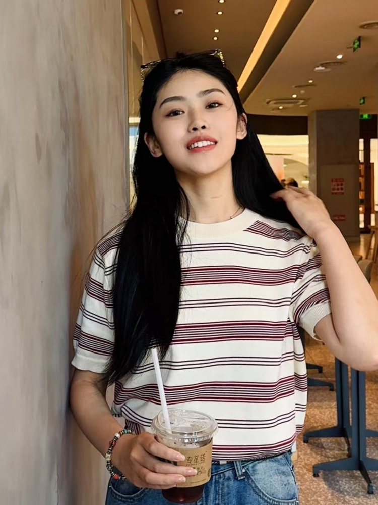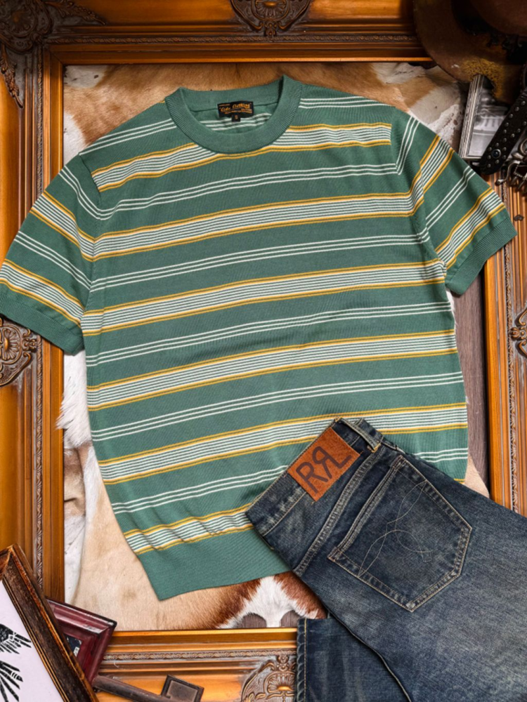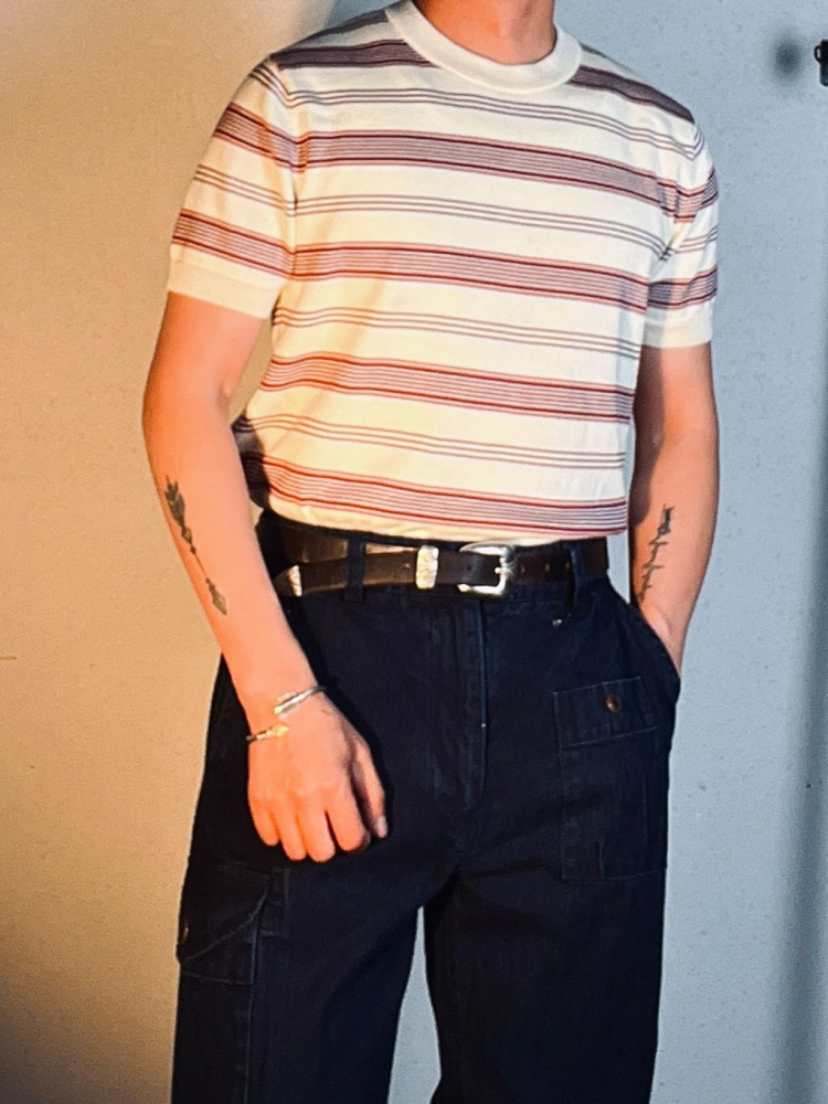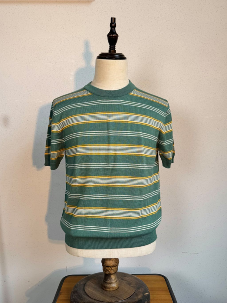 [제도] 50's Mood 텐셀 스트라이프 라운드 니트